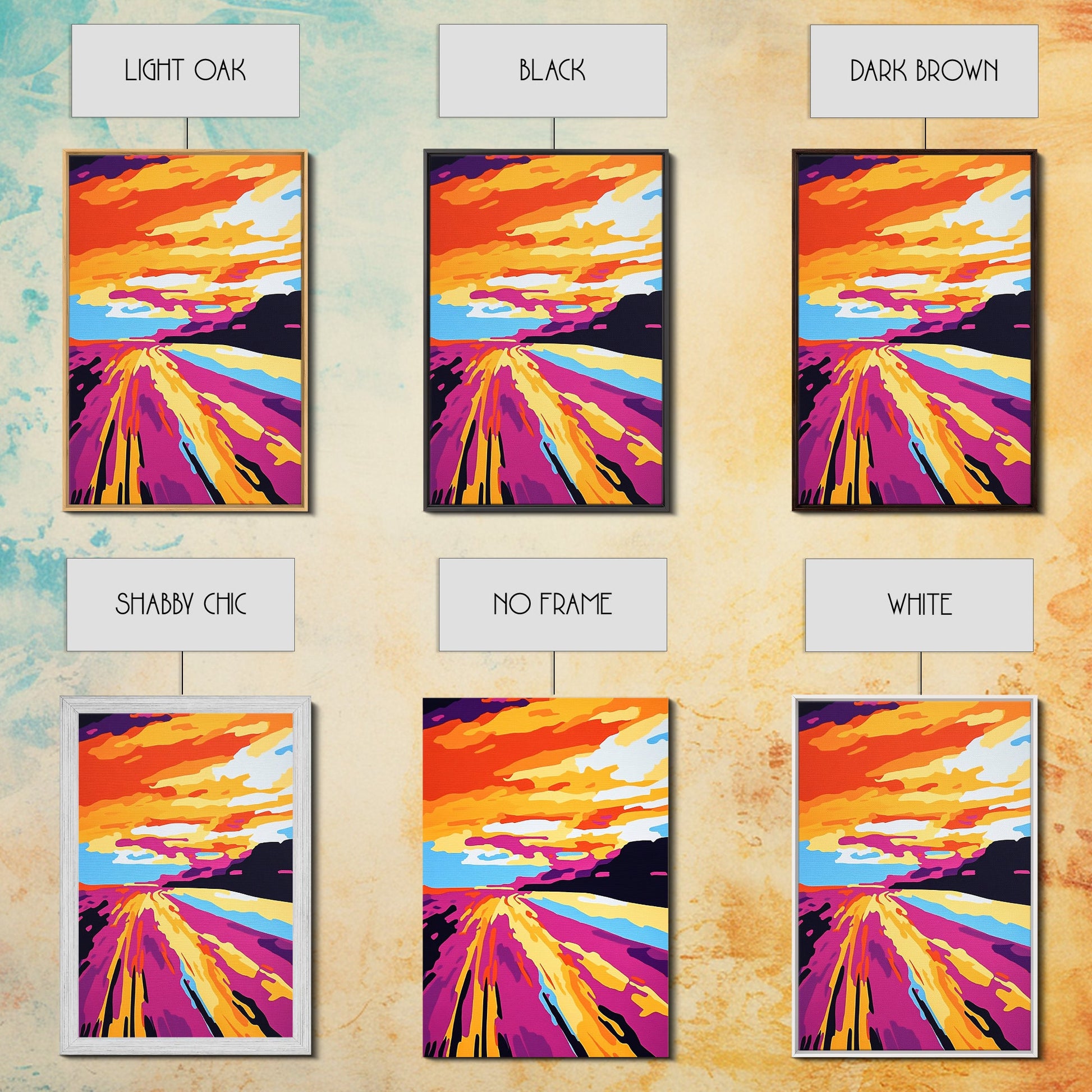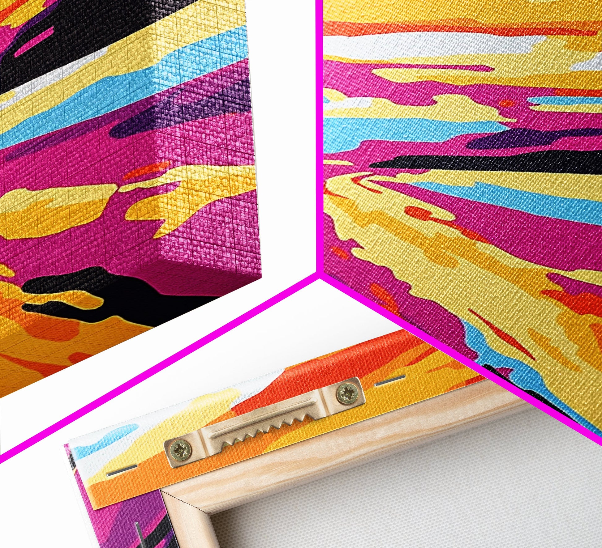 Hello and thank you for taking the time to view our modern high quality giclée artwork! We offer both posters and stretched canvas prints. Our posters are printed on Ultra Matte 60 lb / 230 GSM high quality photo paper, with a thickness of 10 mil. Our canvases are printed on museum grade 350 GSM canvas material with ECO friendly archival grade ink, then hand stretched and stapled over premium, FSC certified and shrink resistant frames. Designed and built to last a lifetime.