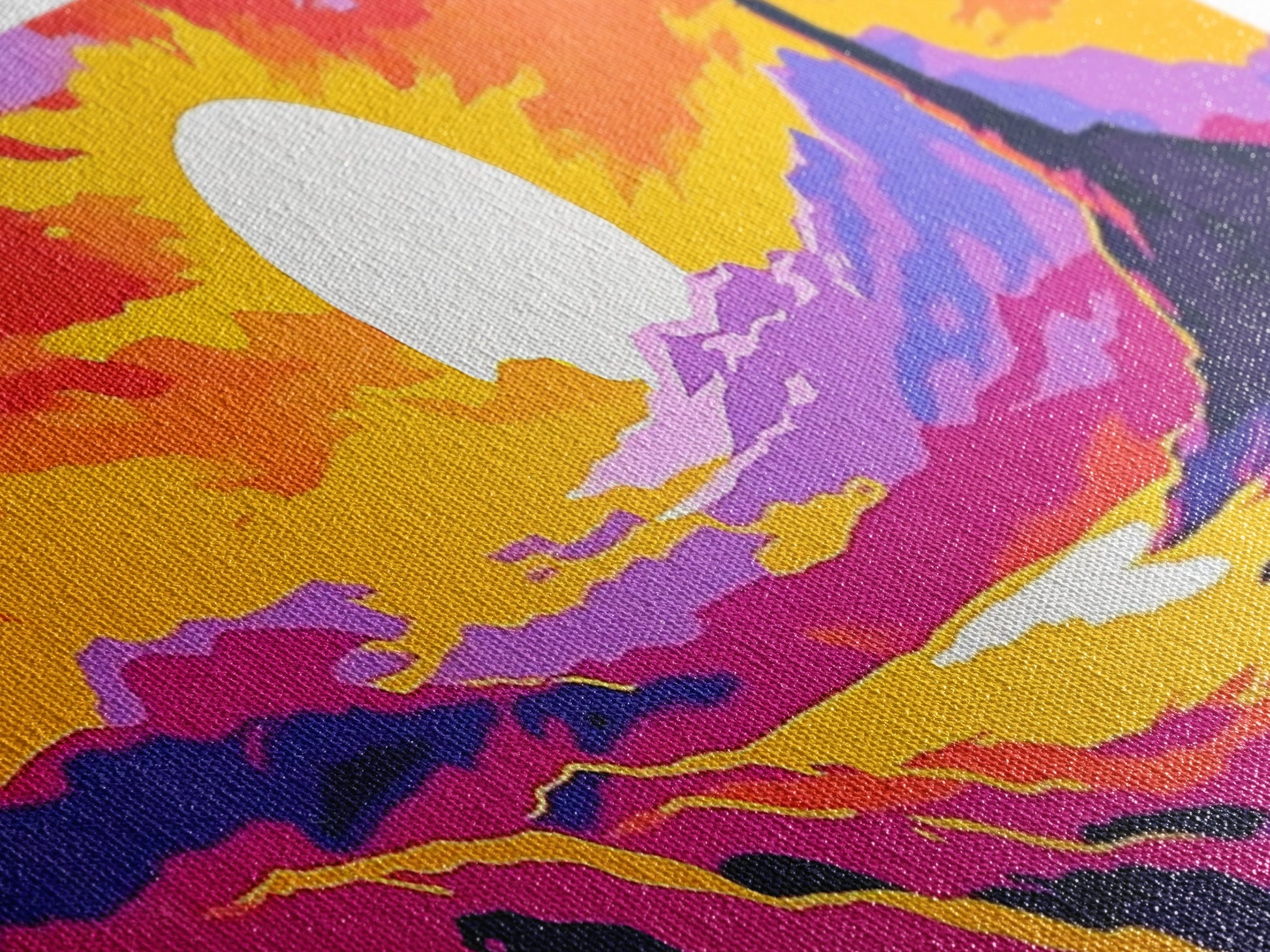 Hello and thank you for taking the time to view our modern high quality giclée artwork! We offer both posters and stretched canvas prints. Our posters are printed on Ultra Matte 60 lb / 230 GSM high quality photo paper, with a thickness of 10 mil. Our canvases are printed on museum grade 350 GSM canvas material with ECO friendly archival grade ink, then hand stretched and stapled over premium, FSC certified and shrink resistant frames. Designed and built to last a lifetime.