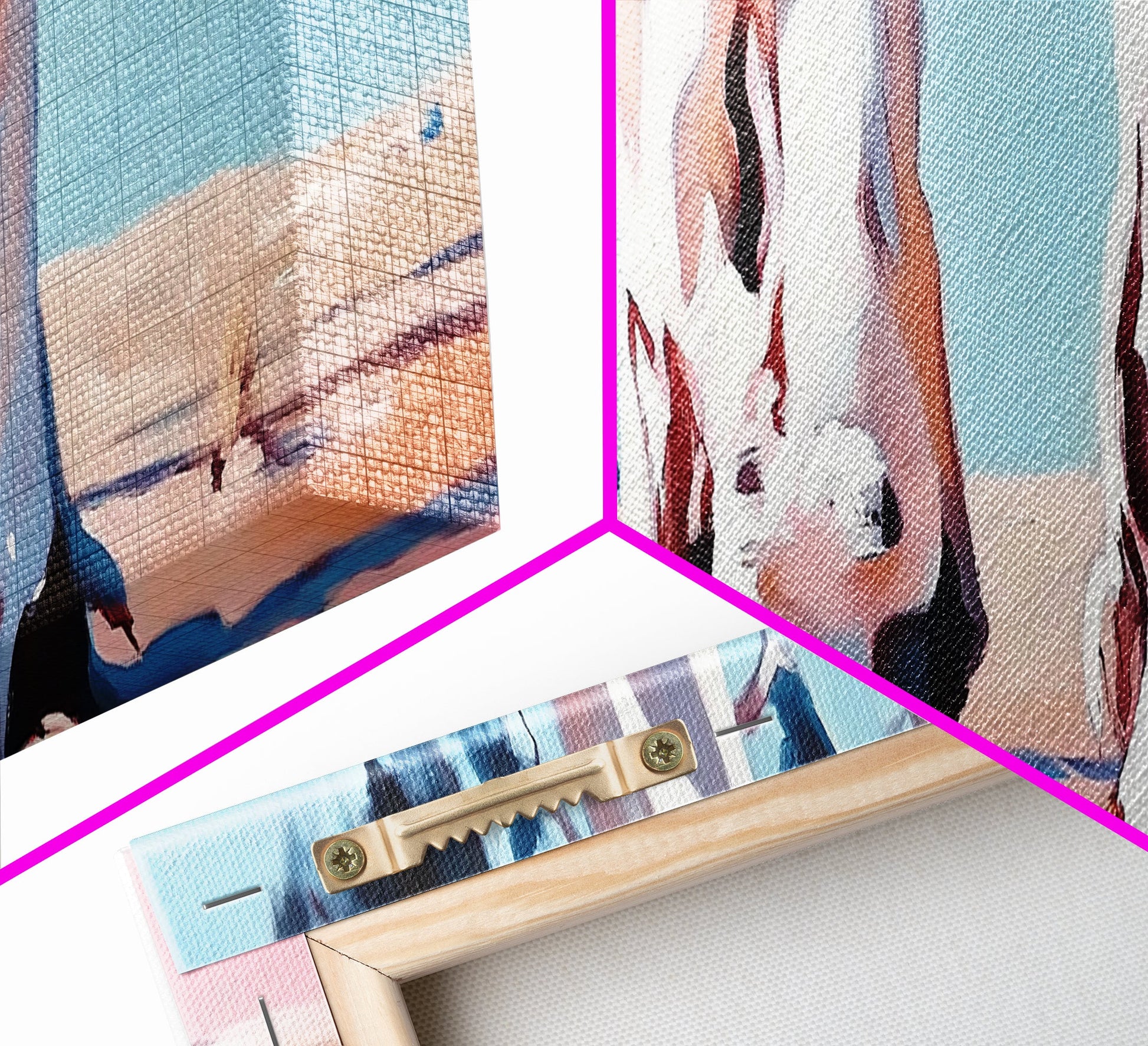 Hello and thank you for taking the time to view our modern high quality giclée artwork! We offer both posters and stretched canvas prints. Our posters are printed on Ultra Matte 60 lb / 230 GSM high quality photo paper, with a thickness of 10 mil. Our canvases are printed on museum grade 350 GSM canvas material with ECO friendly archival grade ink, then hand stretched and stapled over premium, FSC certified and shrink resistant frames. Designed and built to last a lifetime.