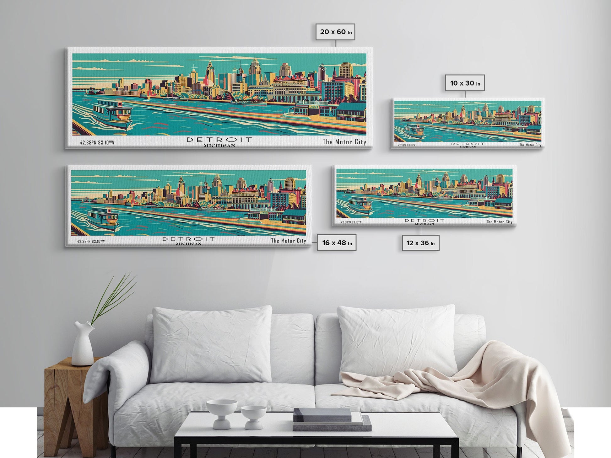 Detroit Michigan Panoramic Travel Poster Canvas Print
