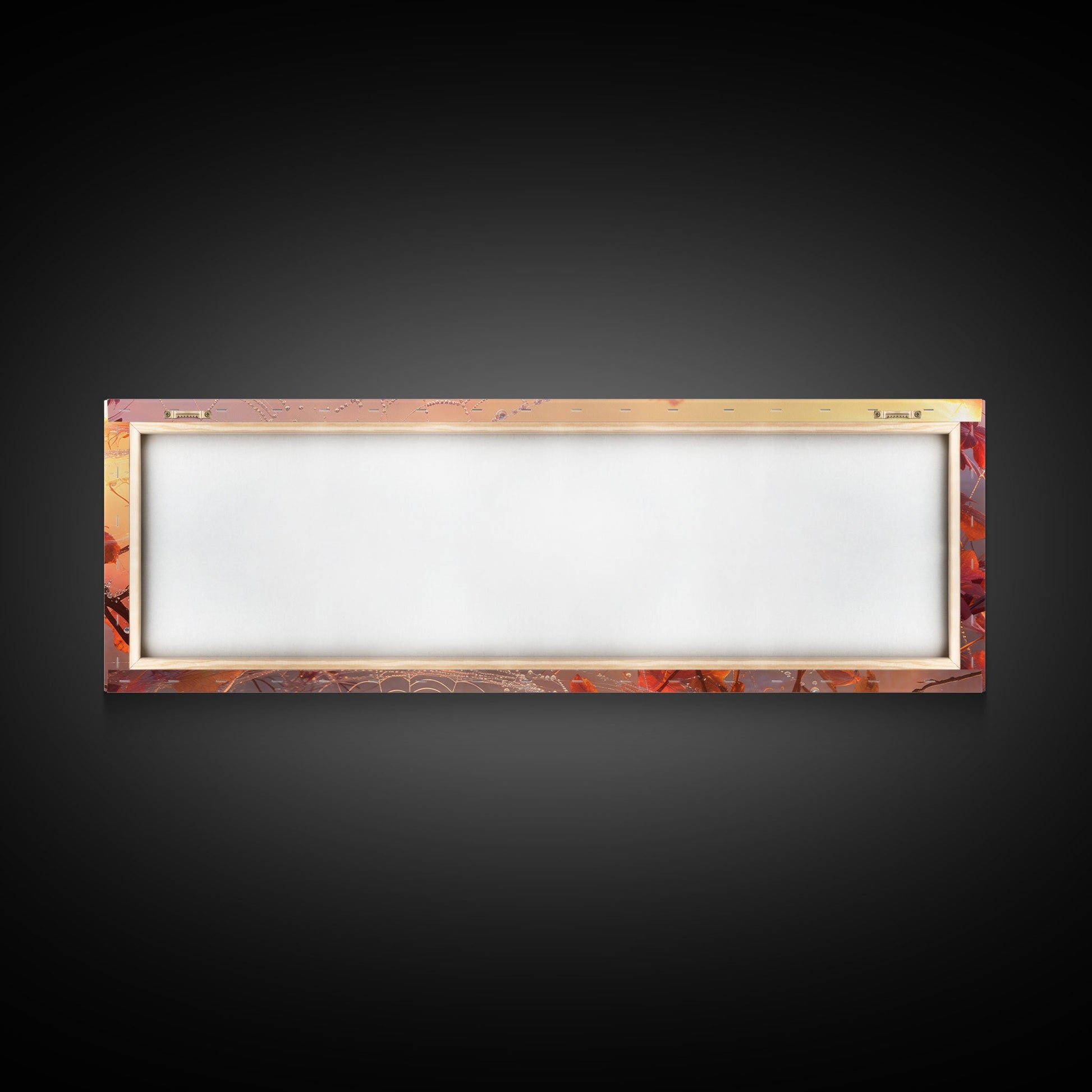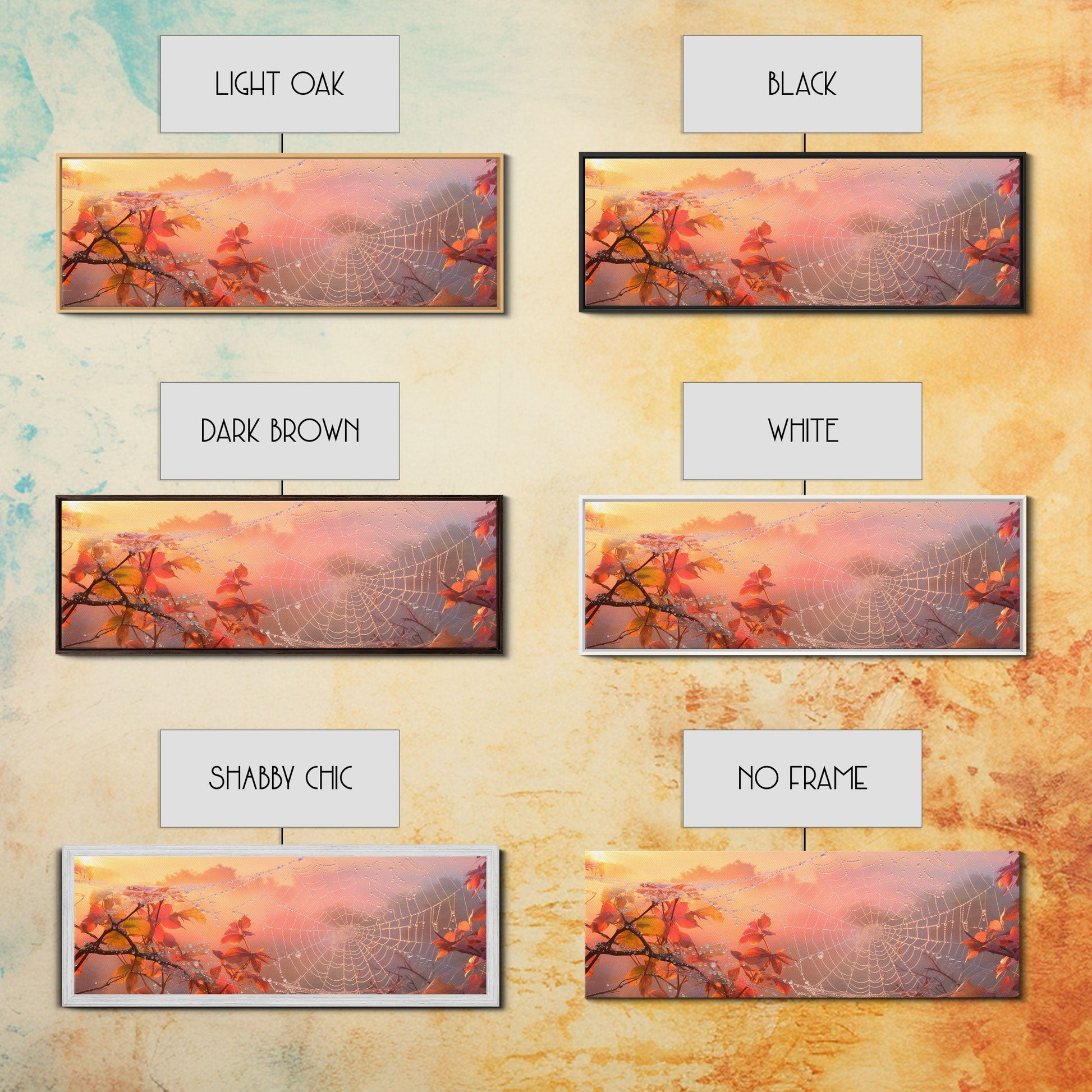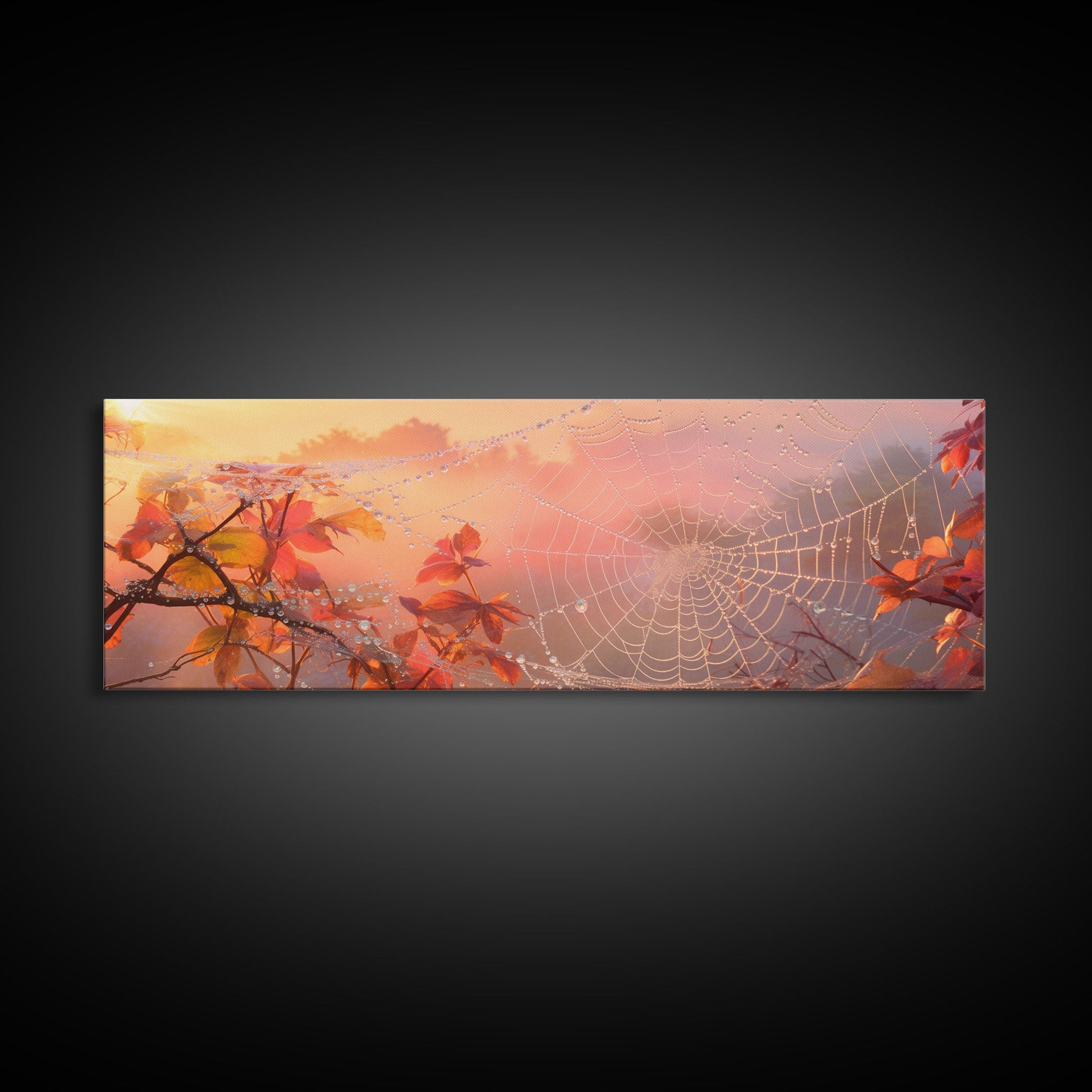 Dew Covered Spiderweb In The Fall, Framed Canvas Print, Autumn Centerpiece, Fall Leaves In The Autumn