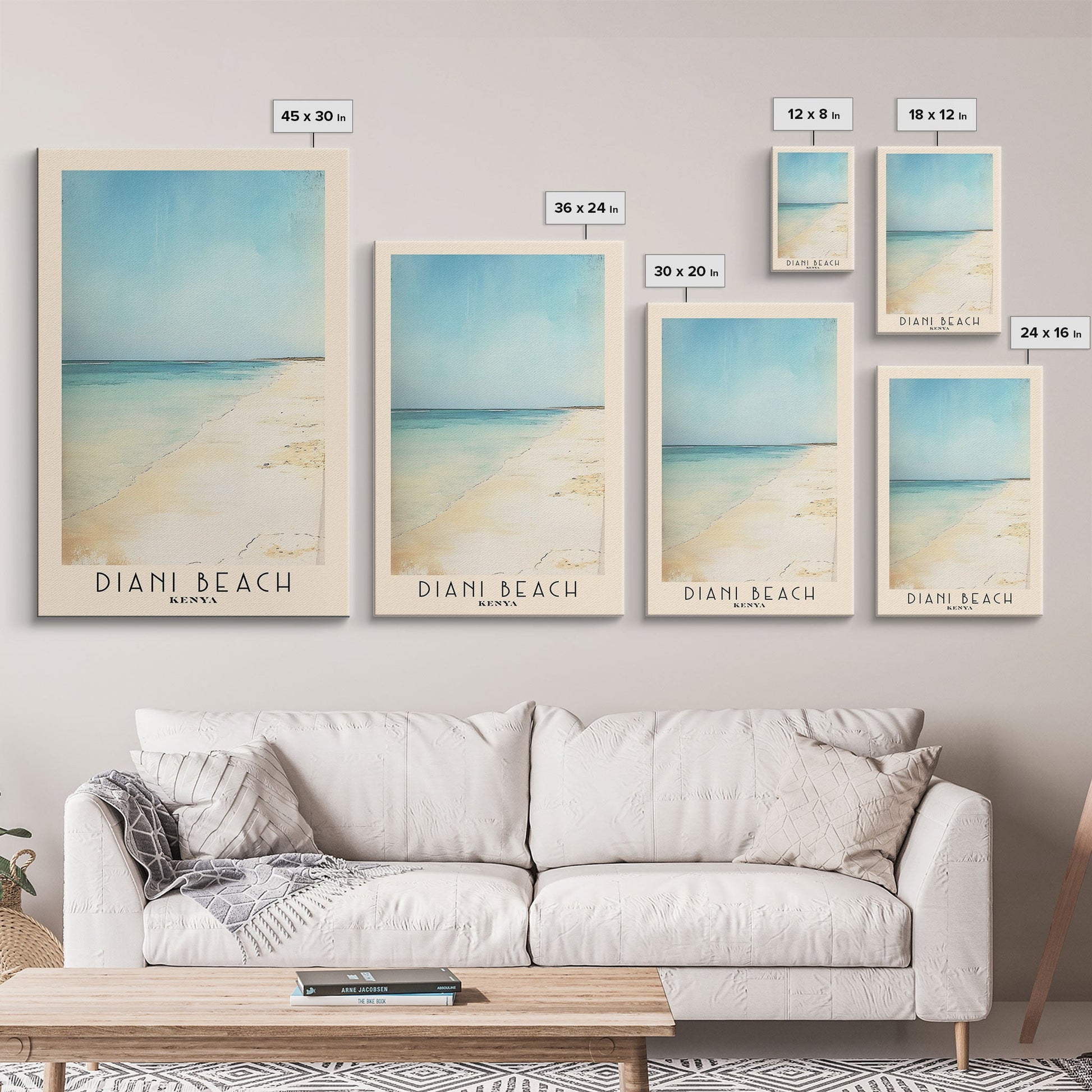 Diani Beach, Kenya Watercolor Beach Print, Vacation Gift, Kenya Wall Art, Framed Canvas Print, Framed Beach Painting