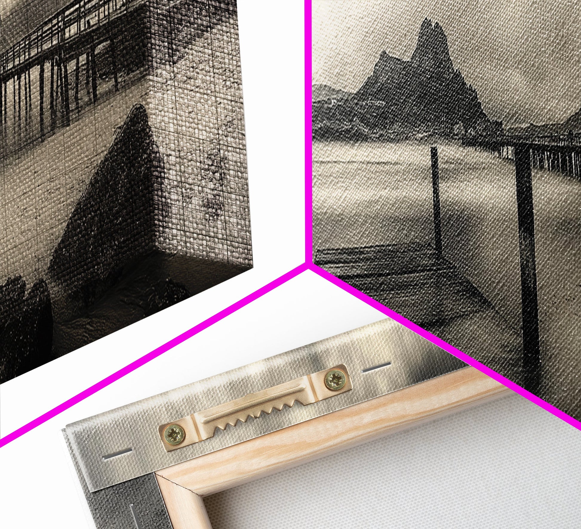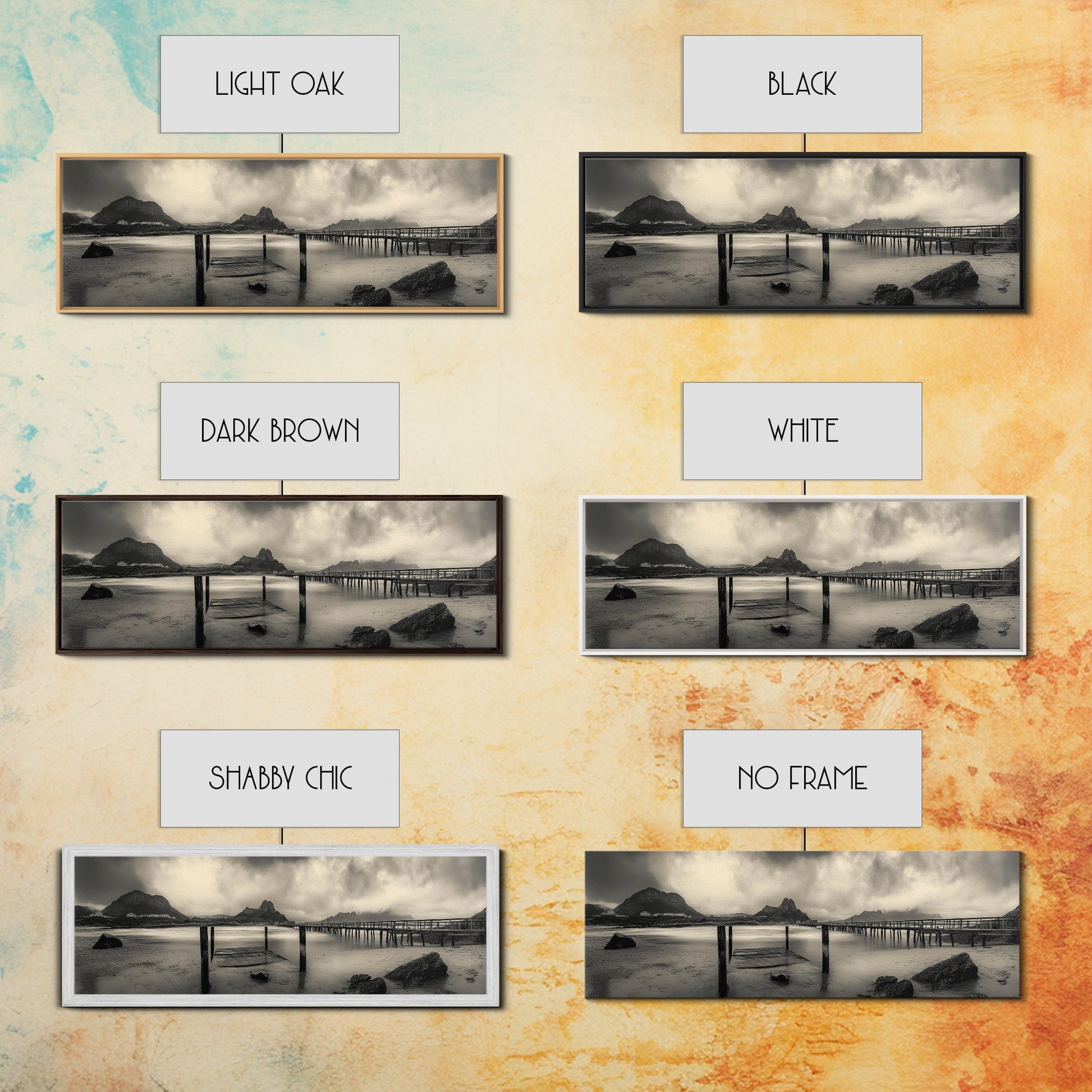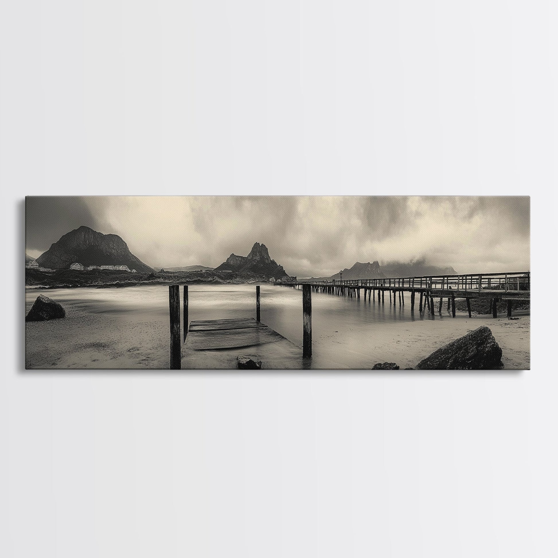 Dockside Calm, Stormy Shore, Ocean Jetty, Framed Canvas Print, Moody Coastal Wall Art, Living Room Art, Rustic Lakehouse Decor