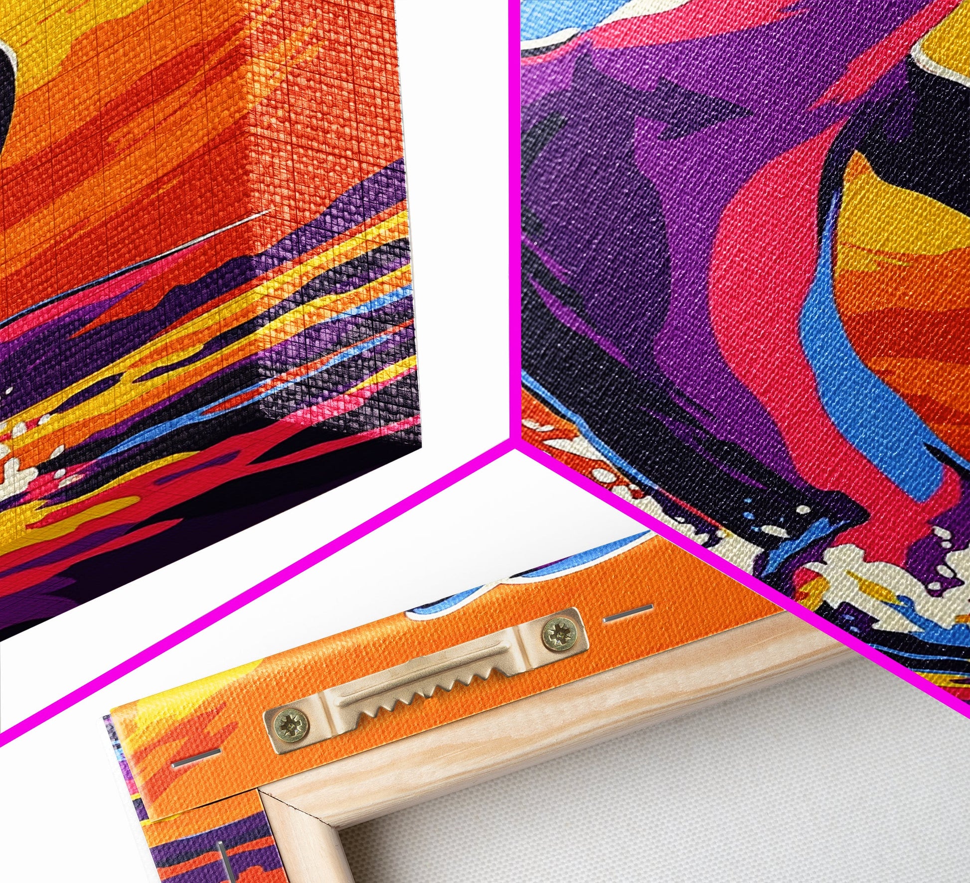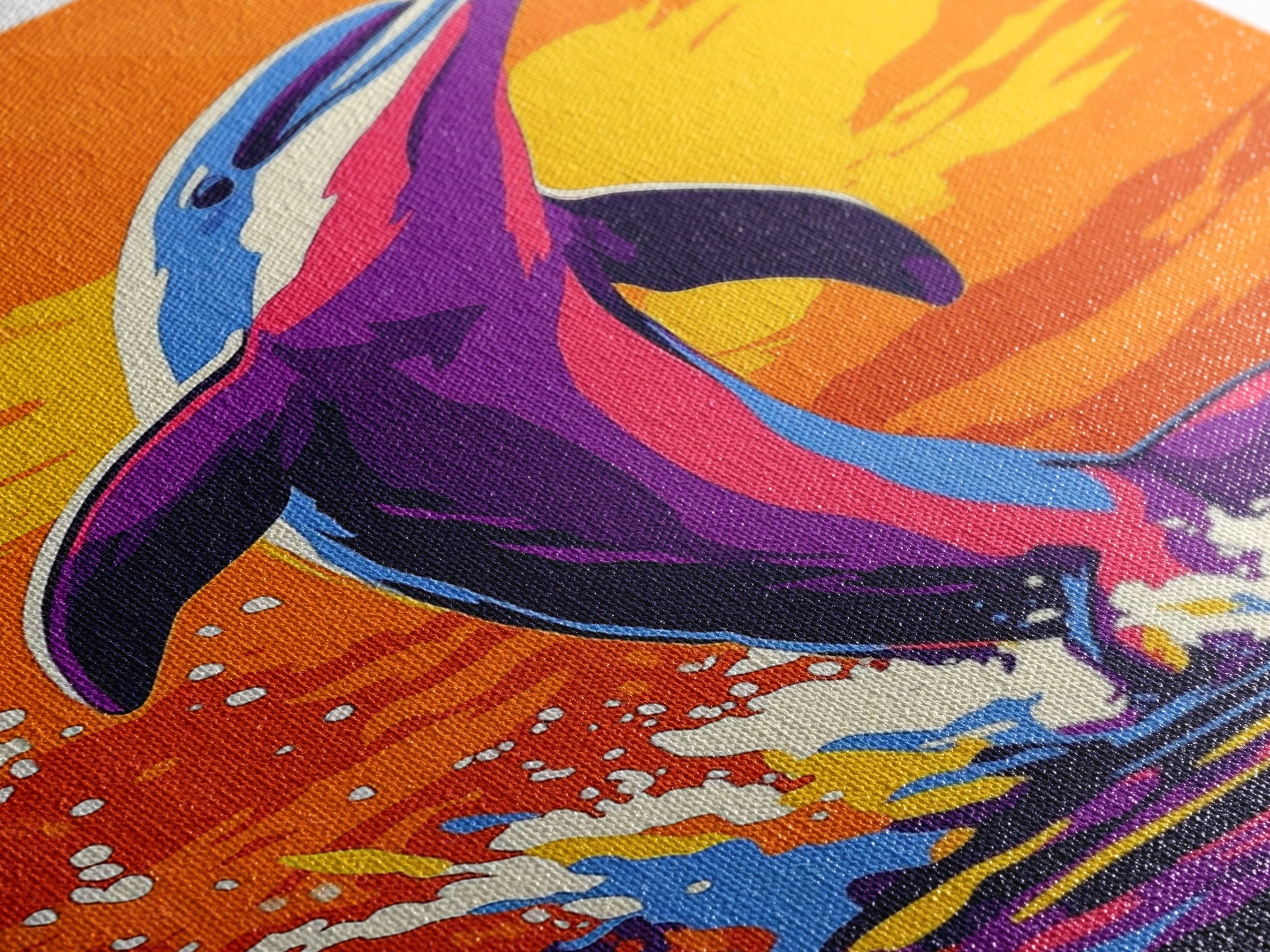 Dolphin Ocean, Sunset, Framed Canvas Print, Vibrant Sea Life Art, Beach House Decor, Coastal Living Art, Sunset Painting, Nautical Theme