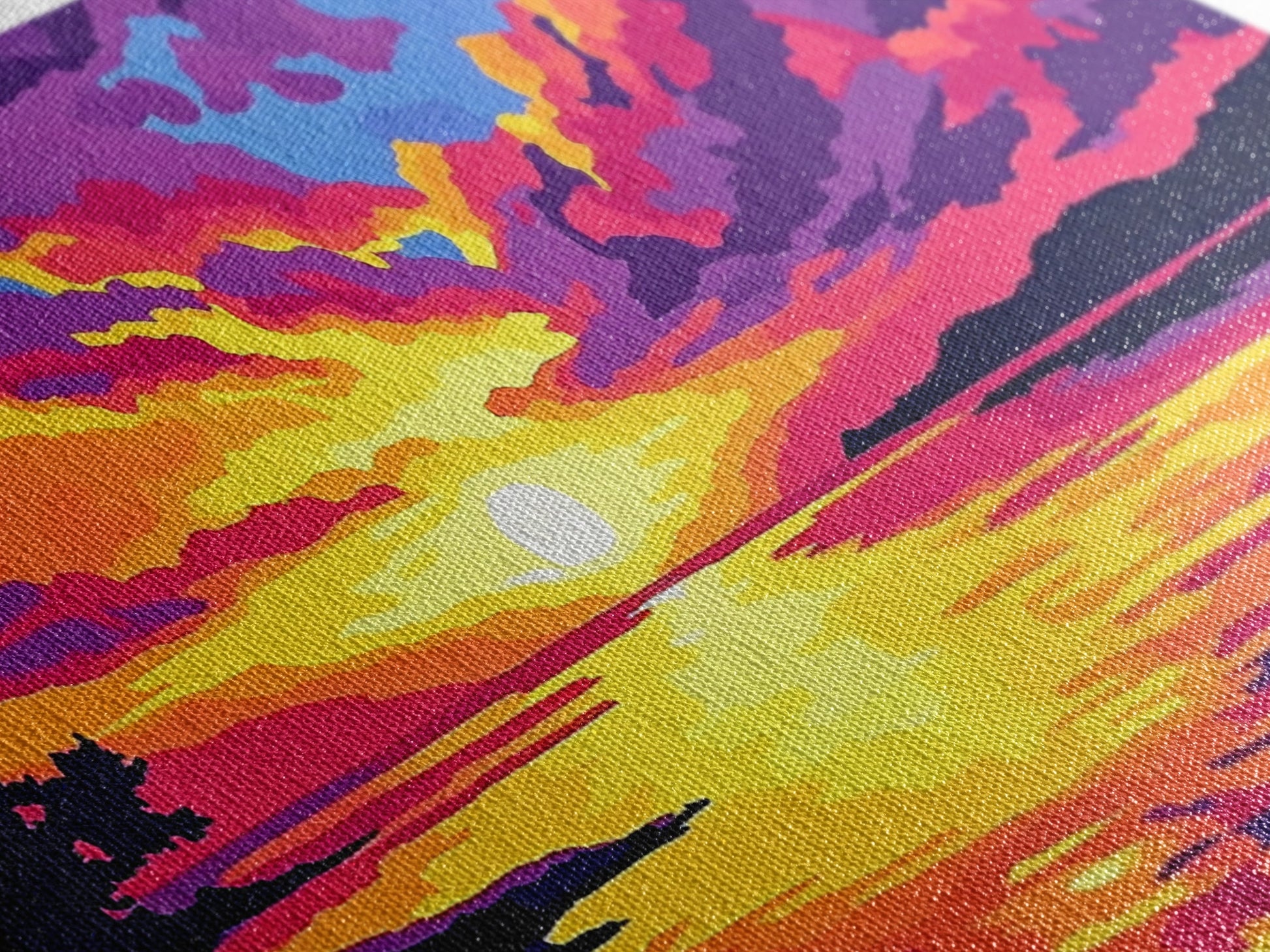 Hello and thank you for taking the time to view our modern high quality giclée artwork! We offer both posters and stretched canvas prints. Our posters are printed on Ultra Matte 60 lb / 230 GSM high quality photo paper, with a thickness of 10 mil. Our canvases are printed on museum grade 350 GSM canvas material with ECO friendly archival grade ink, then hand stretched and stapled over premium, FSC certified and shrink resistant frames. Designed and built to last a lifetime.