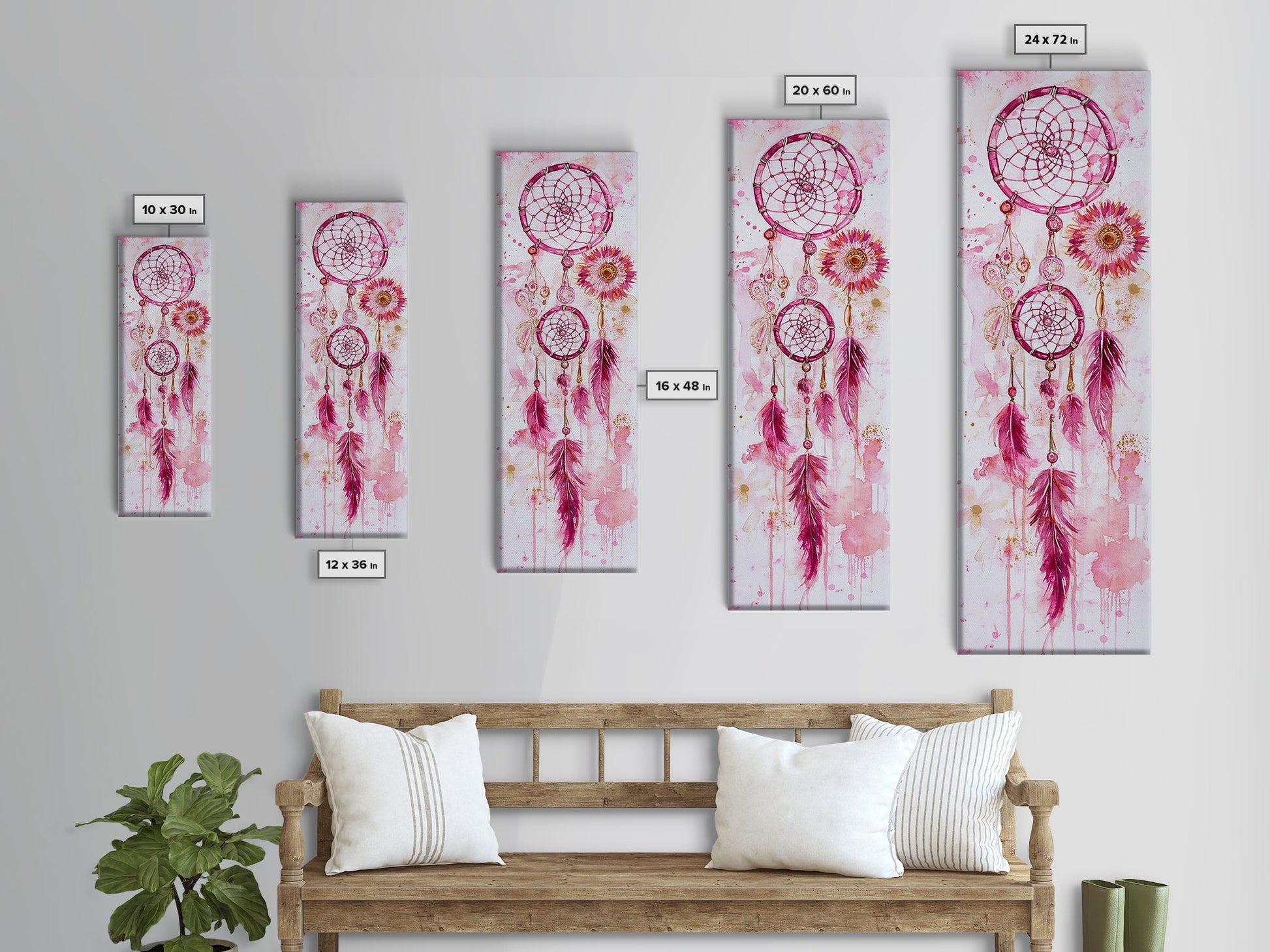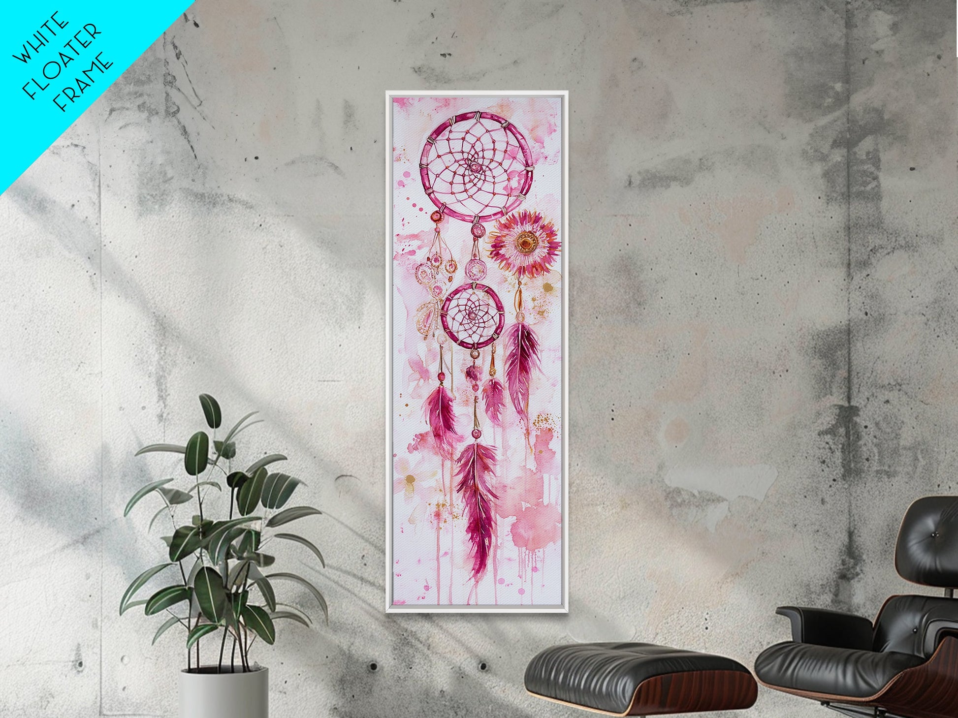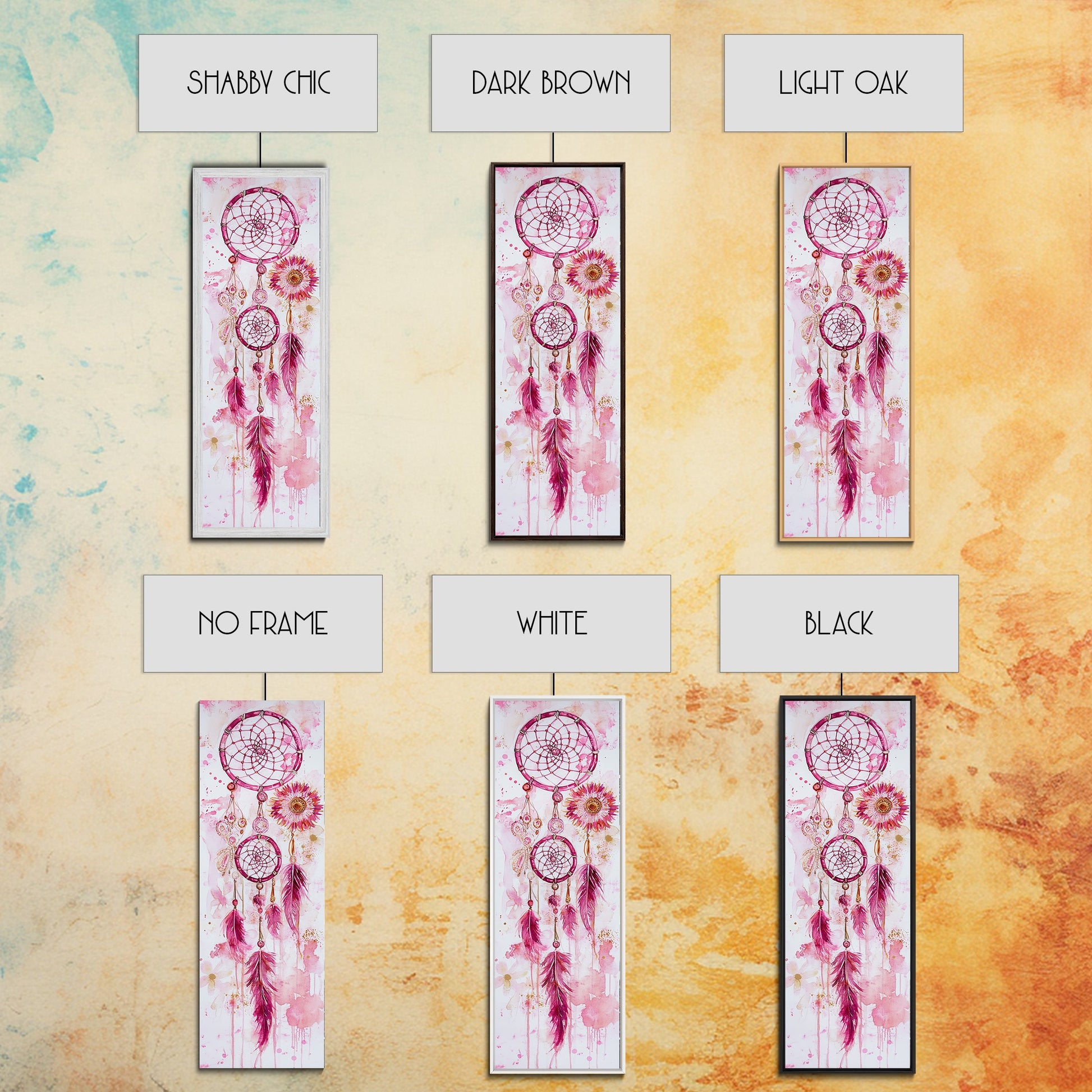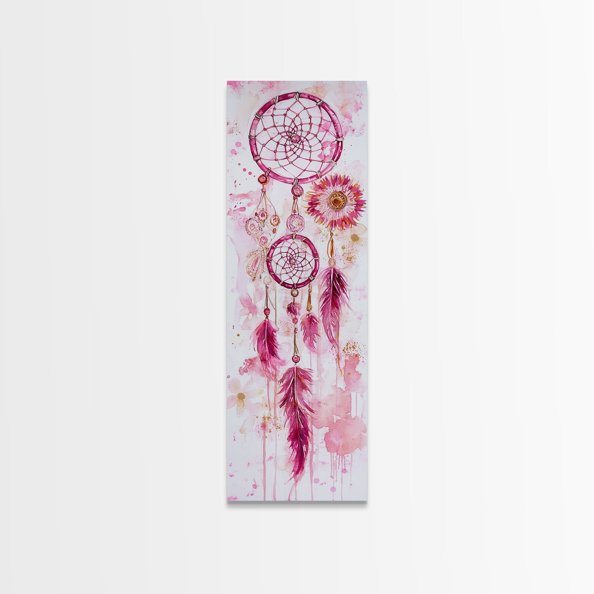 Dreamcatcher Boho Art Framed Canvas Print | Rustic Bedroom Decor | Tall Narrow Wall Art | Southwest Zen Painting | Gift Idea
