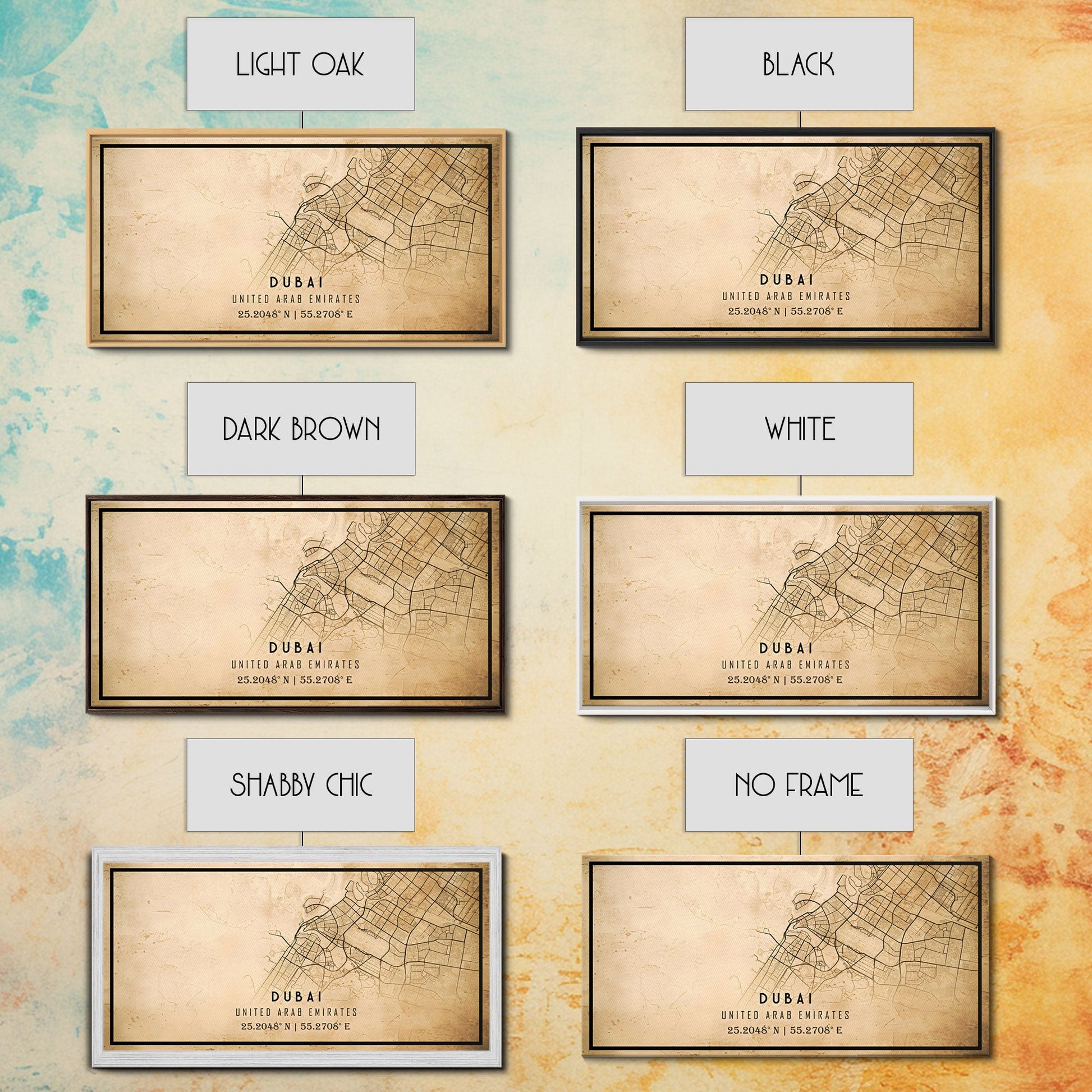 Dubai UAE map print poster or framed canvas, Dubai map print poster canvas, Dubai city map print poster canvas, Vintage Travel Art