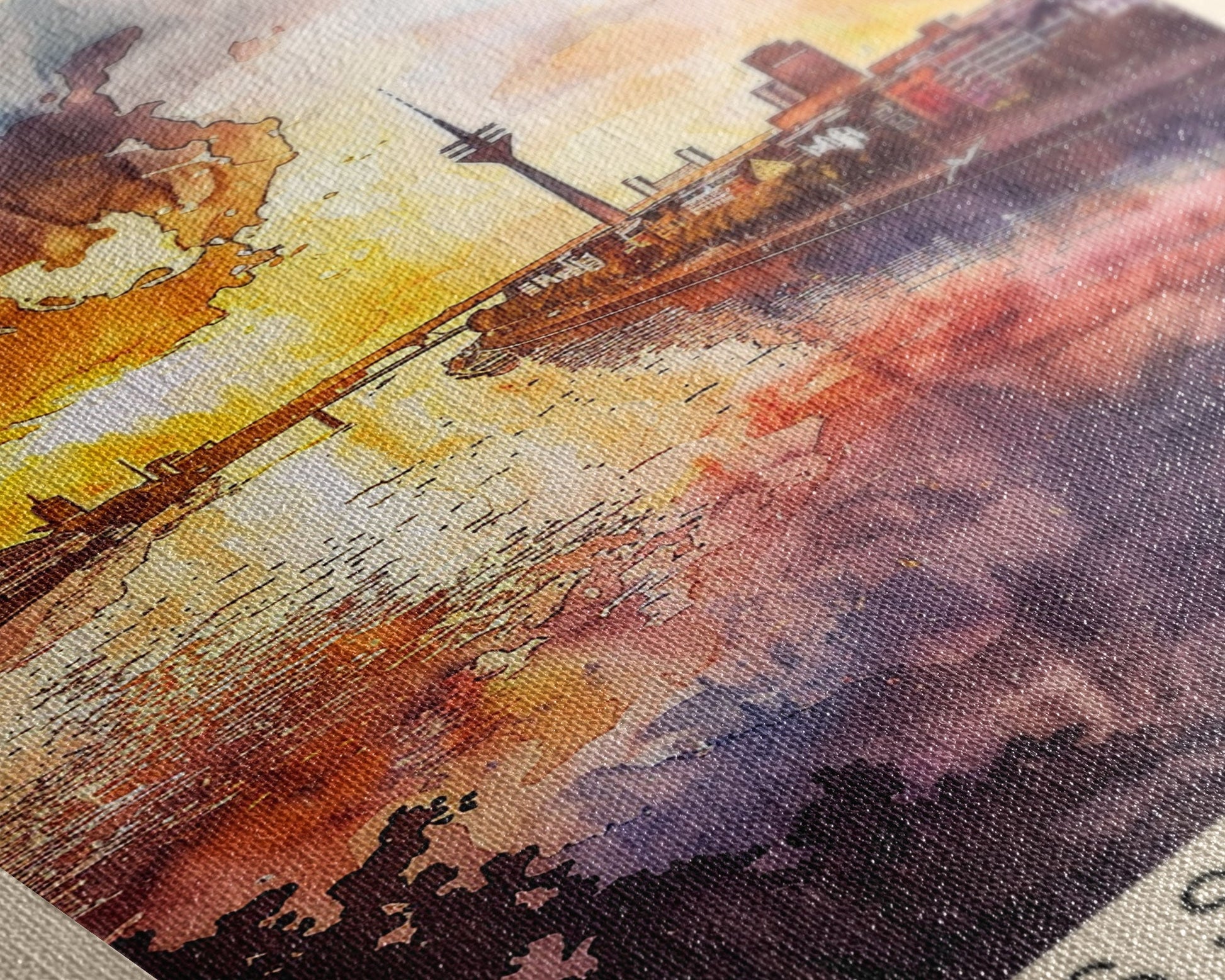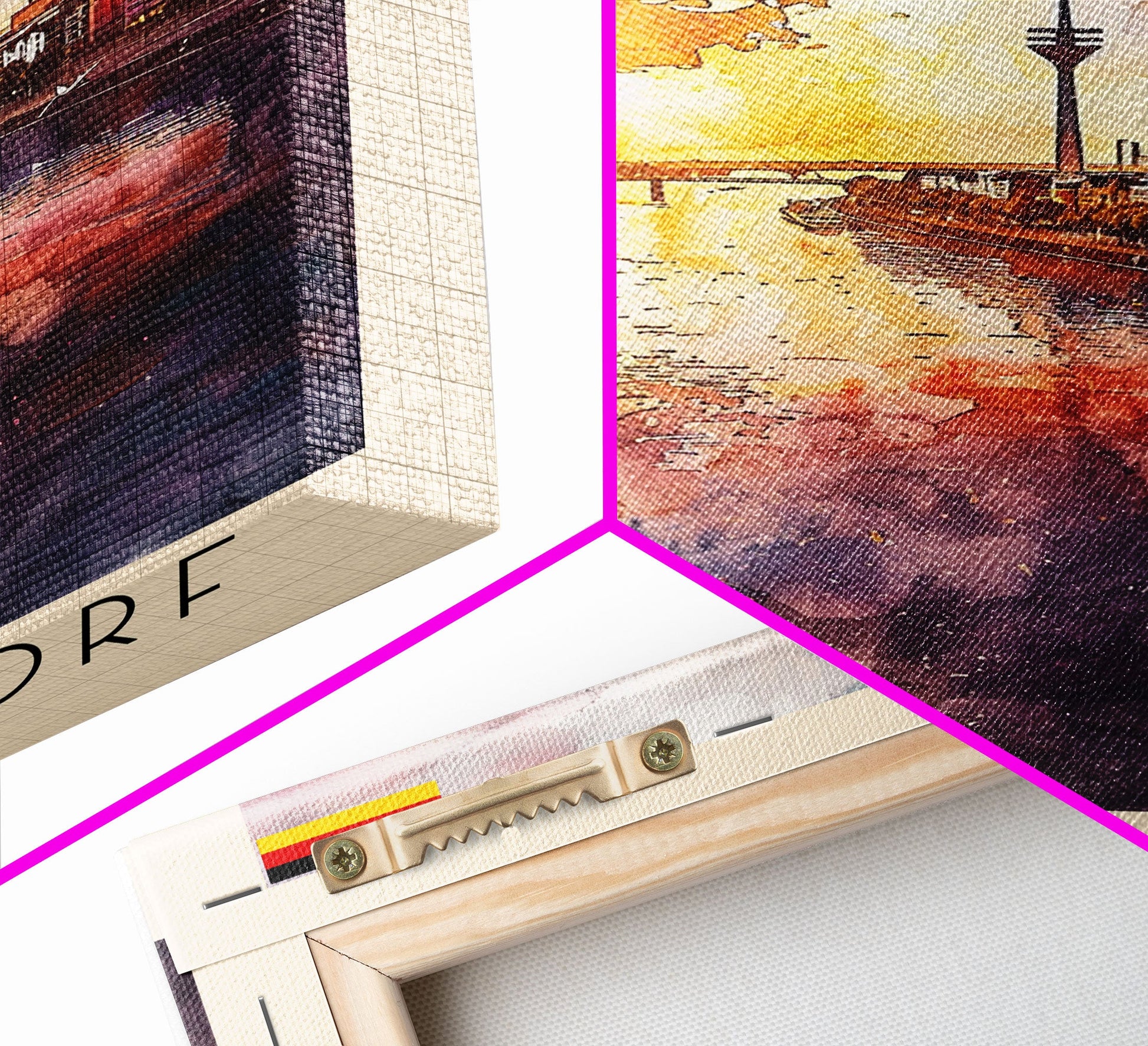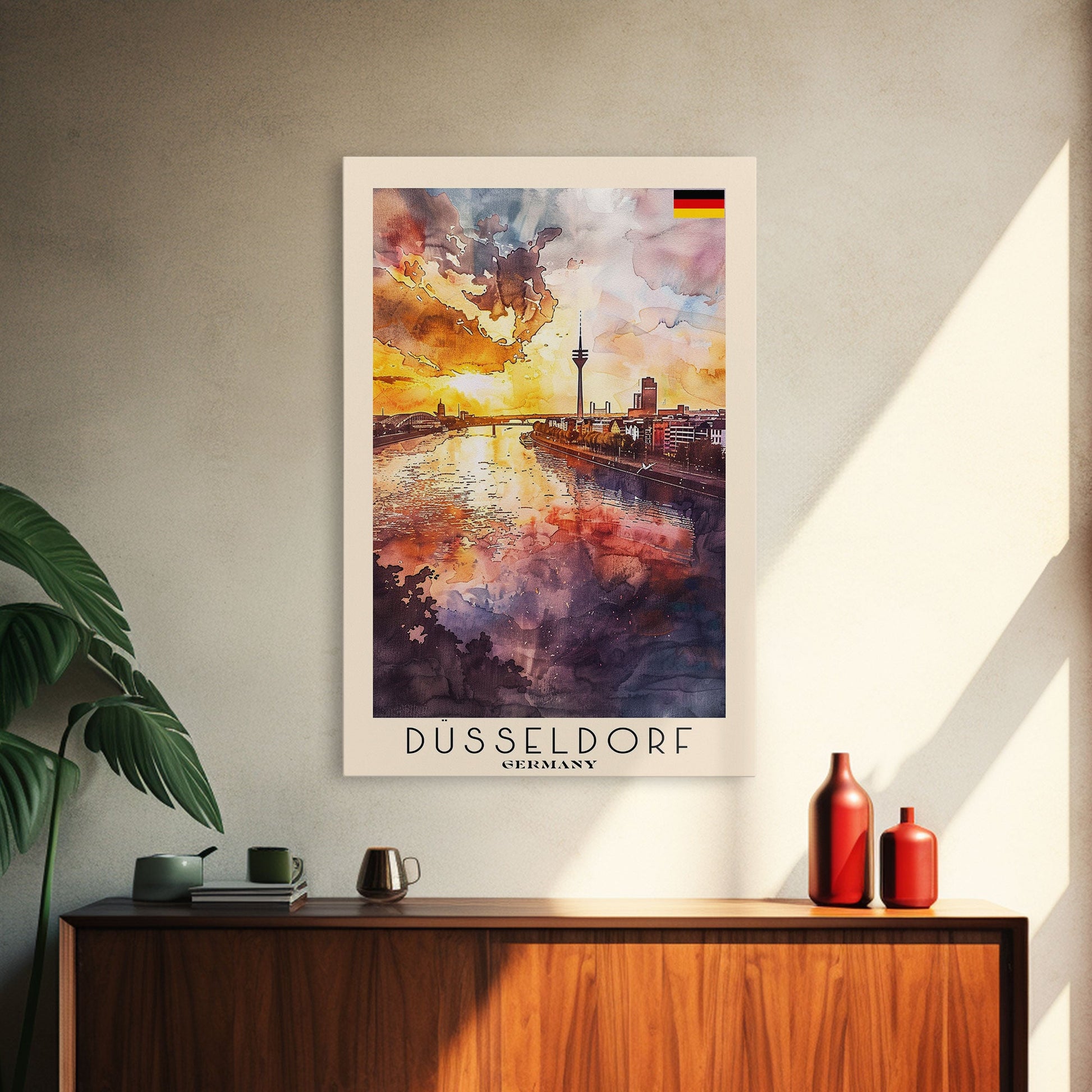 Dusseldorf, Germany Sunset Framed Canvas Print. Striking Wall Art for Living Room or Bedroom, Urban Travel Poster Decor.