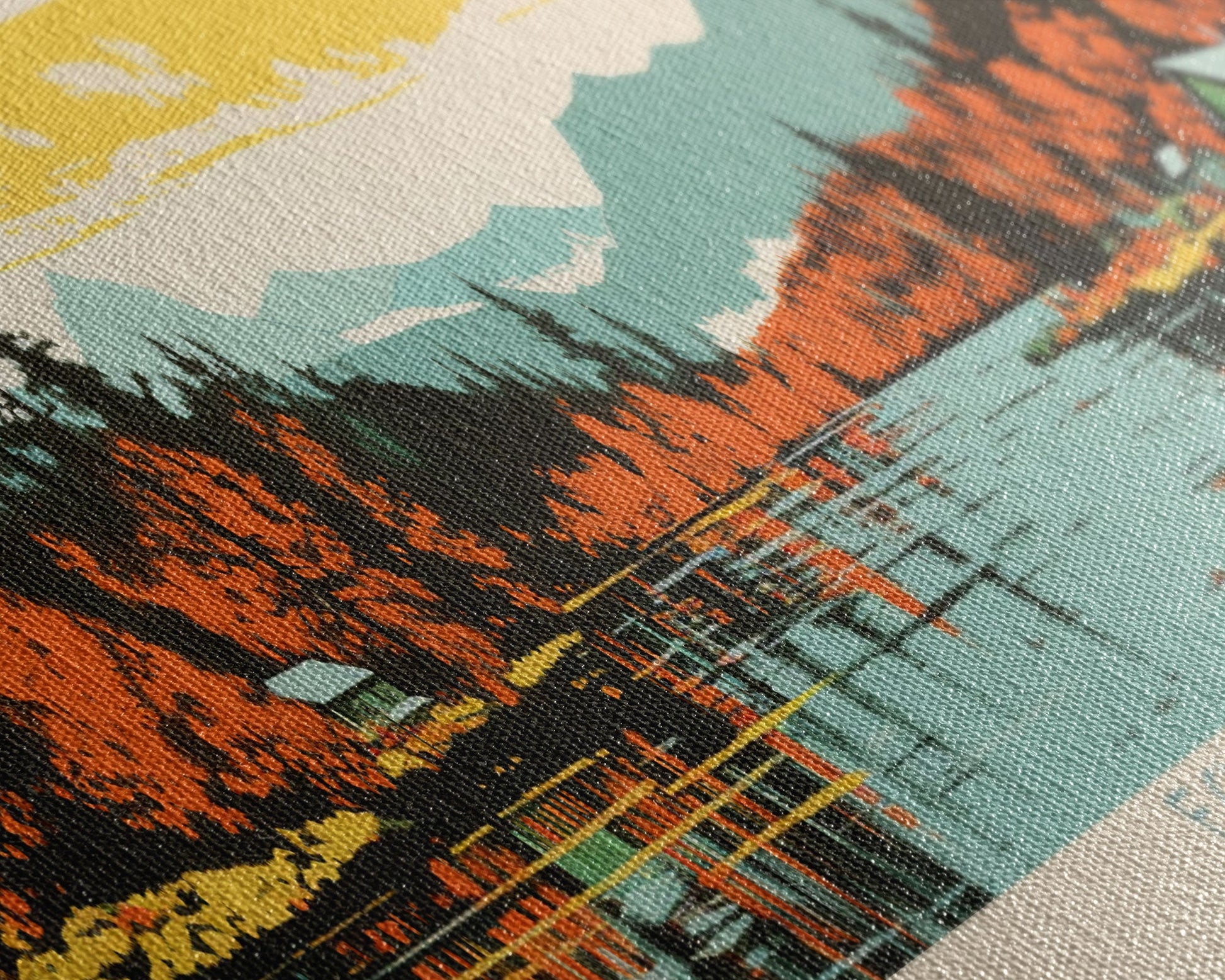 Echo Lake Montana Framed Canvas Print, Panoramic Wall Art, Midcentury Modern, Pop Art, Living Room Decor, Travel Poster, Nature Art