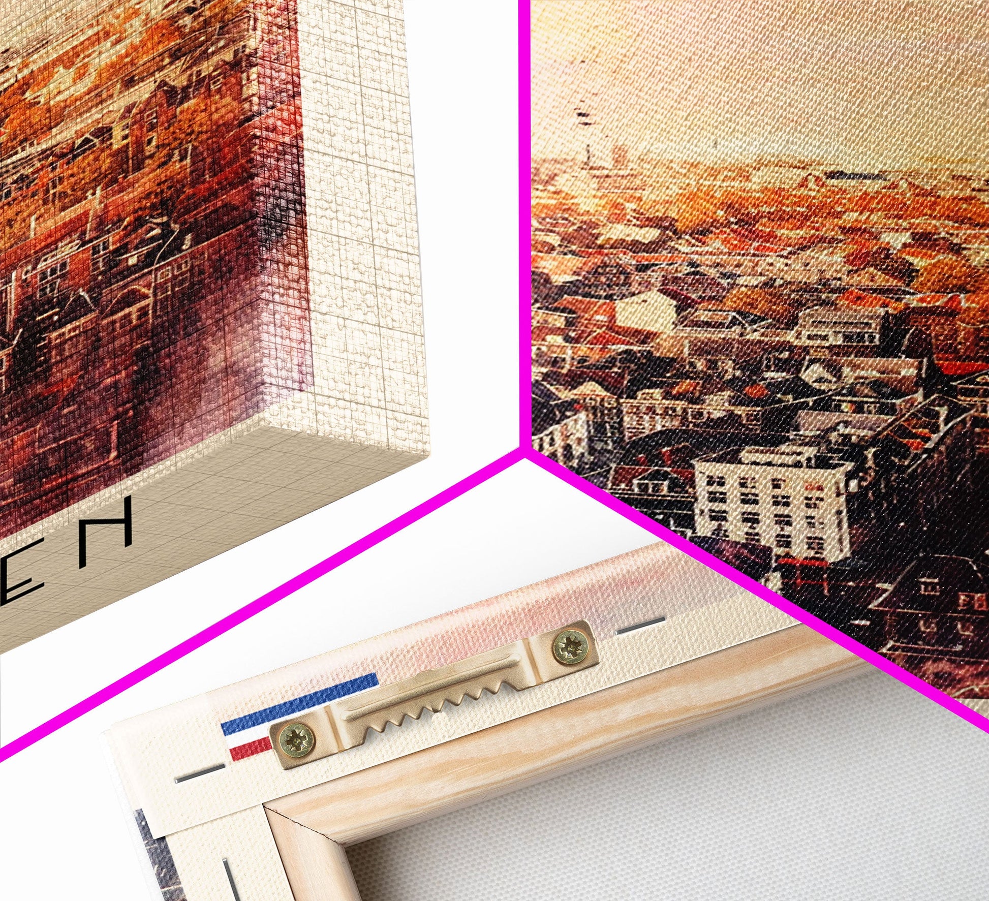 Eindhoven, Netherlands Framed Canvas Print. Modern Wall Art for Living Room or Bedroom, Cityscape Travel Poster Art.