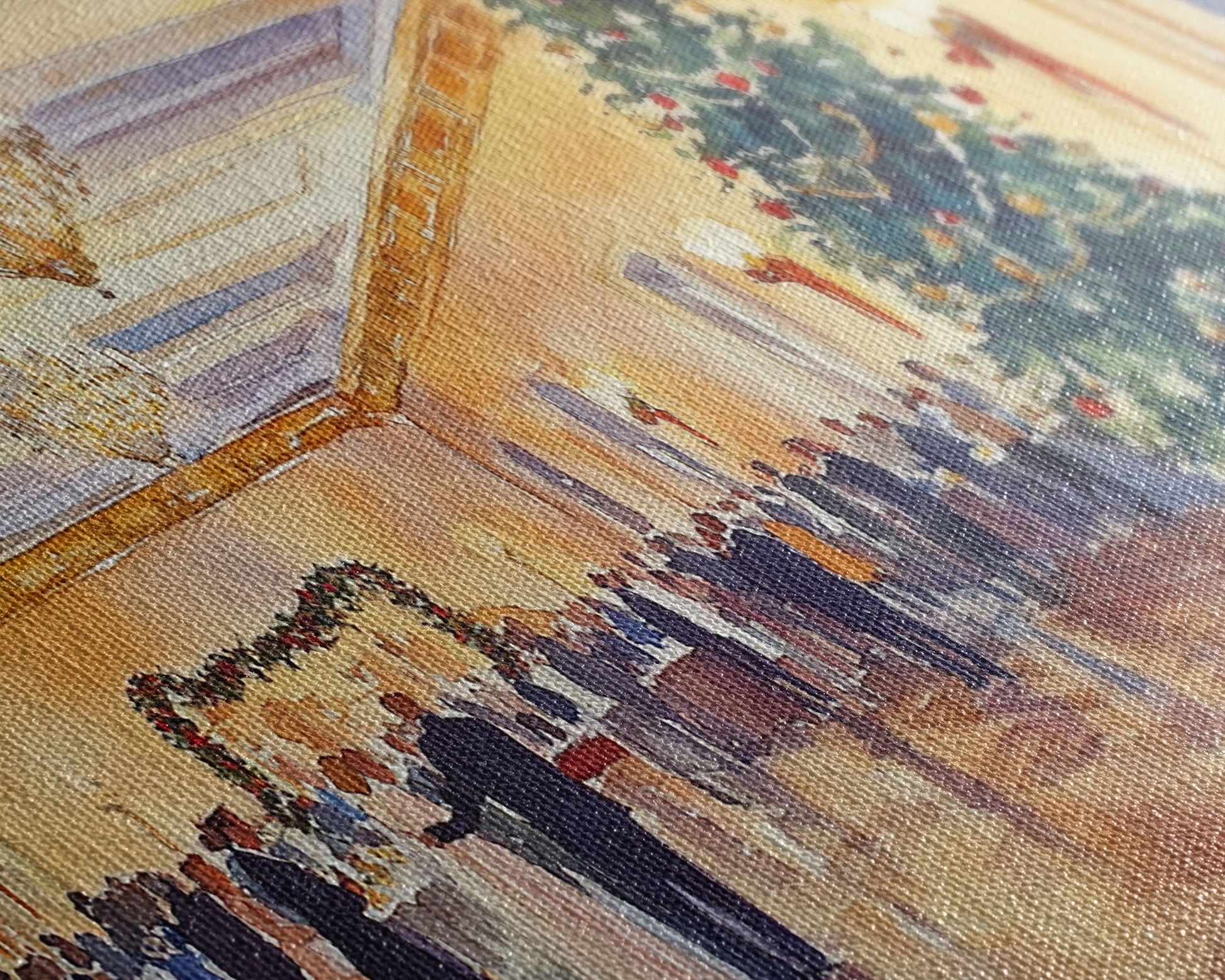 Most of our canvases are made in the USA, with the exception of canvases ordered with the light oak unstained frames, and any large canvases (24x48, 30x60, 16x48 and 20x60) ordered WITH a frame. These are temporarily made in and shipped from Europe, while we try to find a more consistent supplier in the USA.