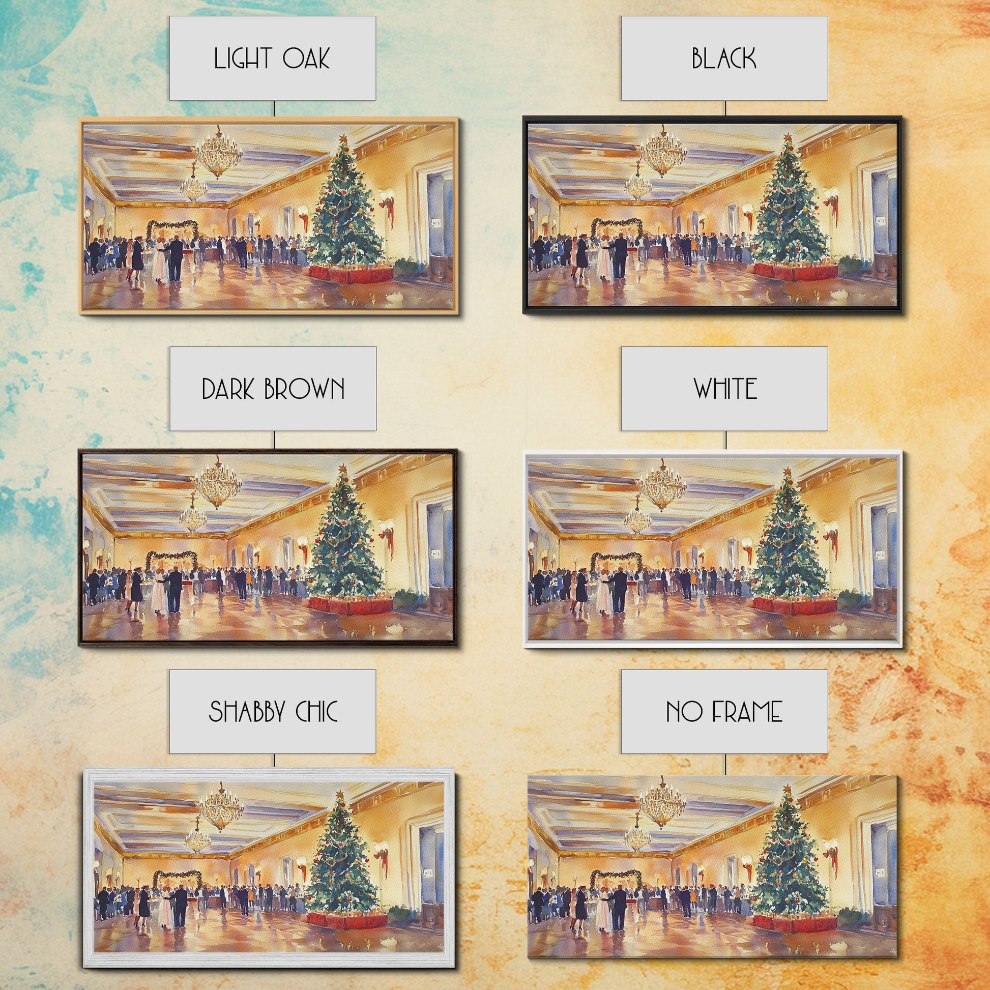 Elegant Ballroom Christmas Party Scene, Framed Canvas Print, Holiday Wall Art, Christmas Decor, Wall Art, Seasonal Decor, Best Gift Idea