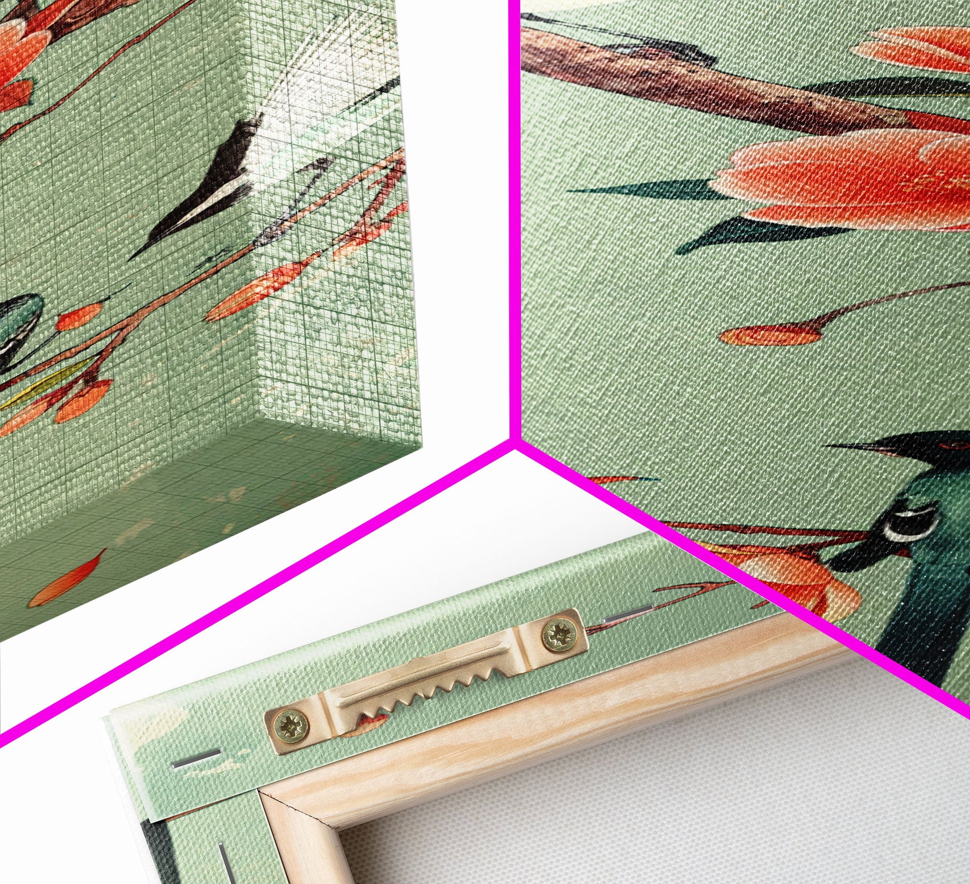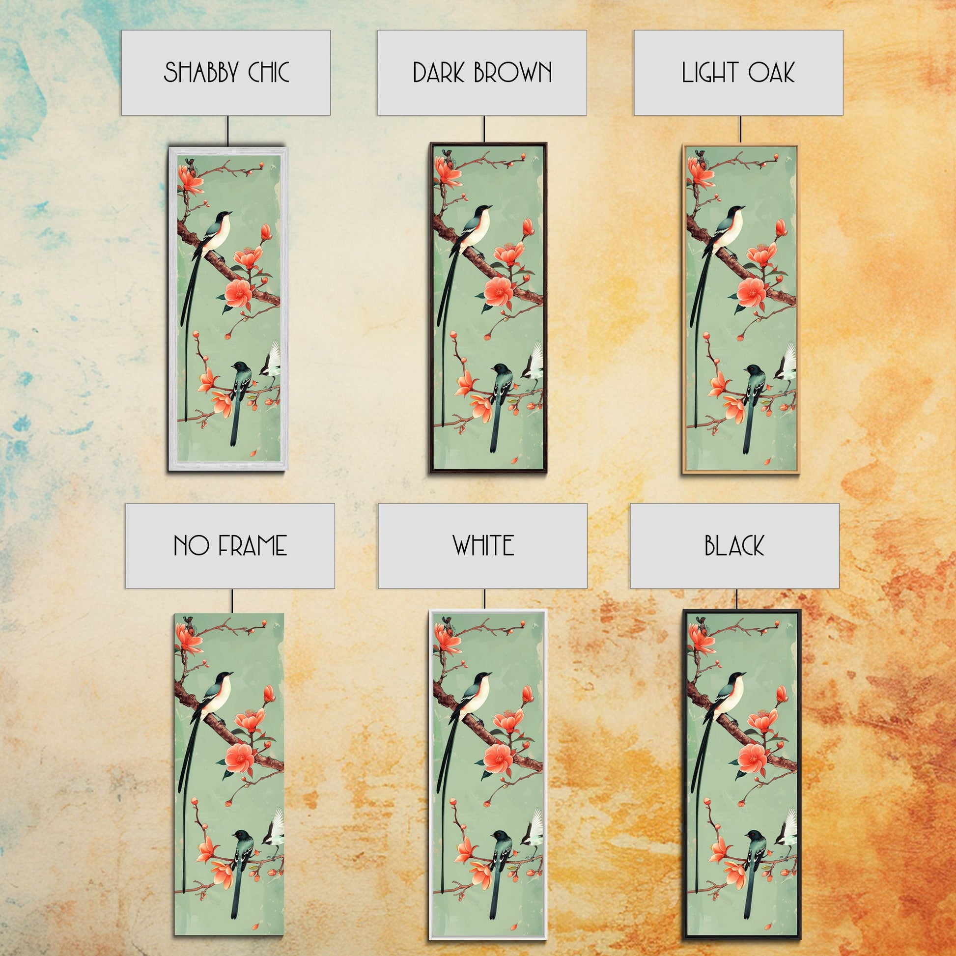 Elegant Birds on Branches Skinny Art Tall Art Japanese Ukiyo-e Inspired Bird and Nature Framed Canvas Print