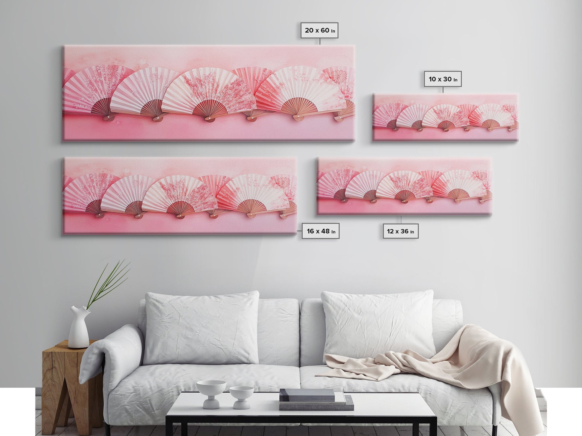 Elegant Fans Canvas Print with Cherry Blossom Art, Pink Wall Art, Whimsical Art for Living Room or Bedroom, Light Pink Decor Idea