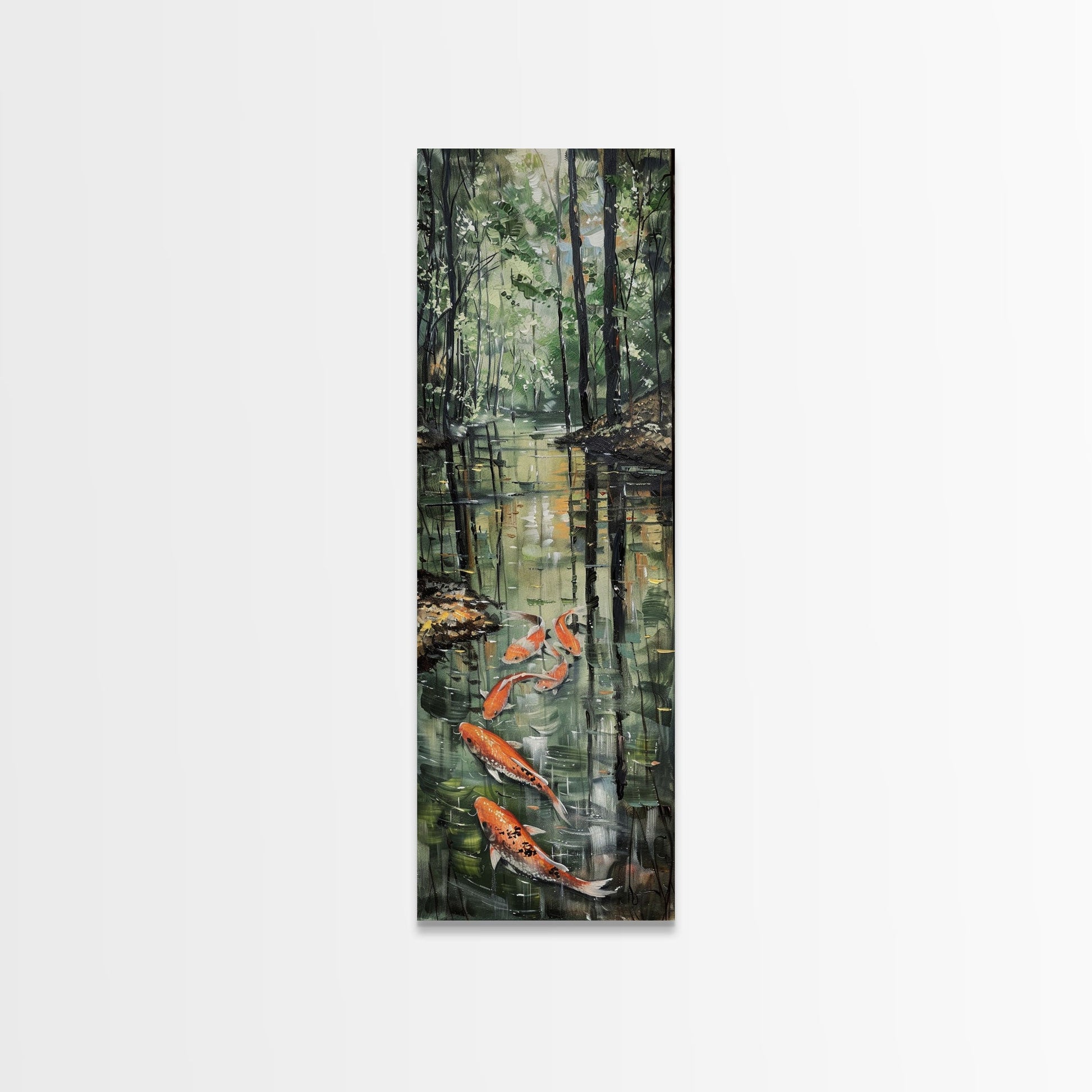 Elegant Koi Fish Swimming Serene Water Garden Nature Art Framed Canvas Print Tall Art Japanese Style Art
