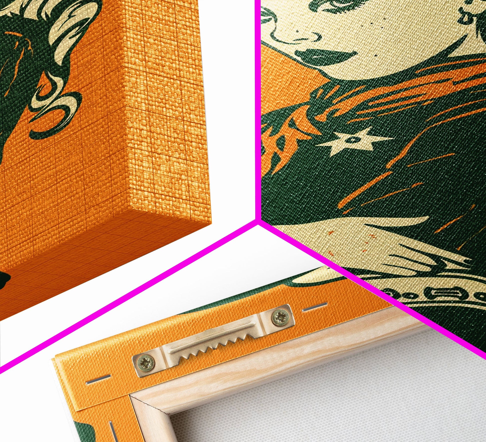 Elegant Retro Cowgirl with Hat Illustration | Framed Canvas Print | Vintage Western Art | Stylish Cowgirl Wall Art for Living Room
