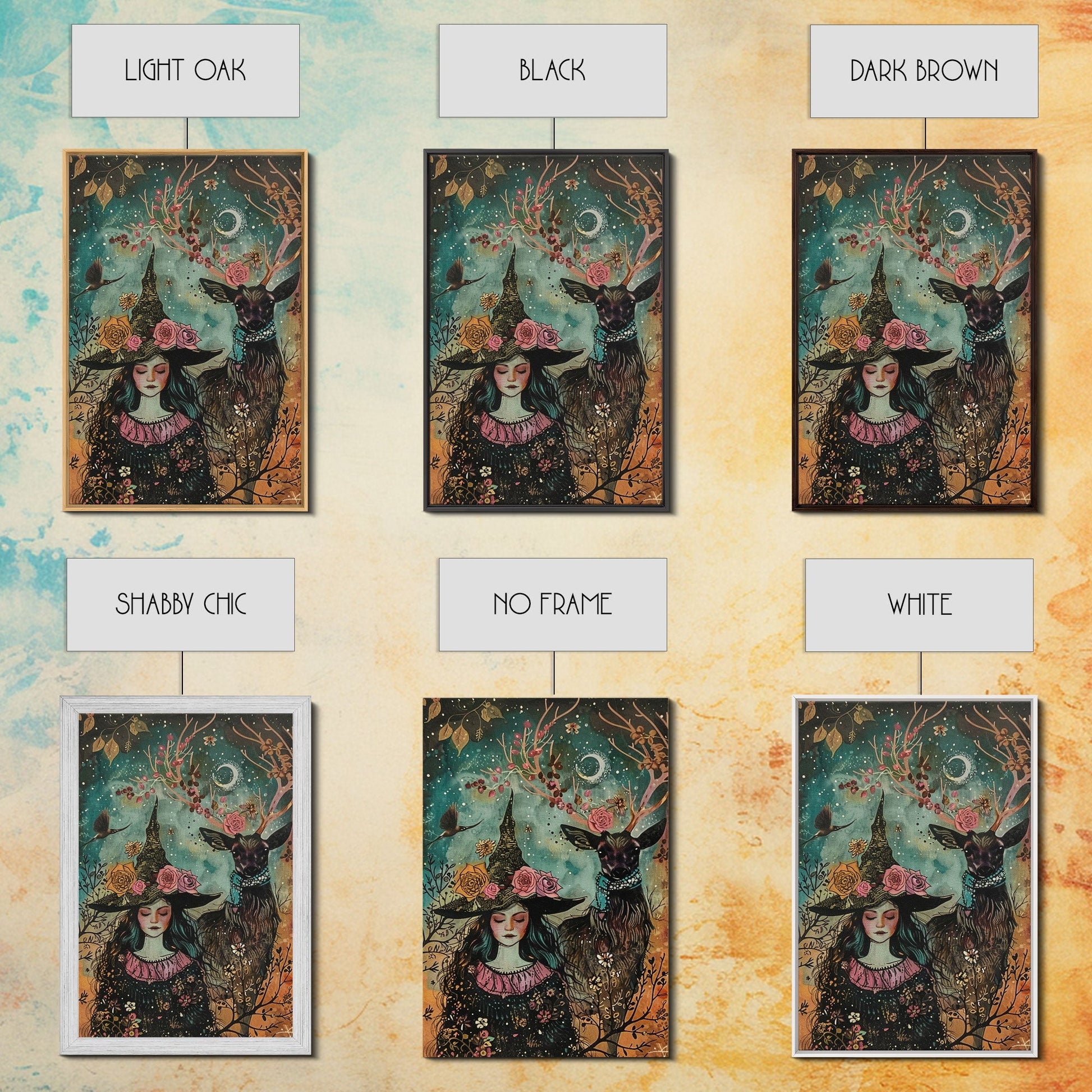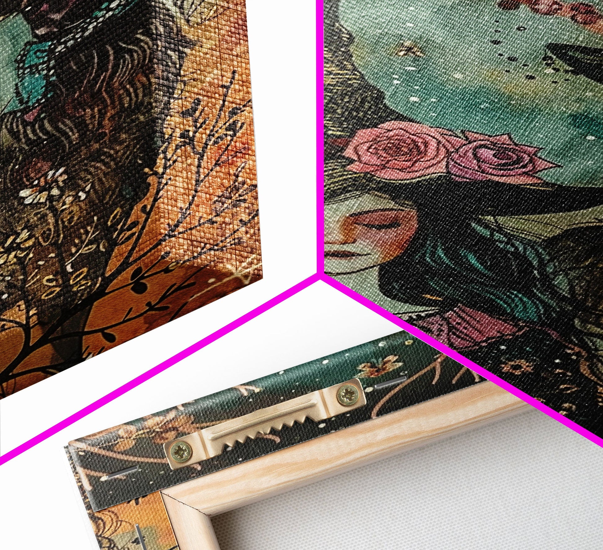 Elegant Witch with Tortoise - Halloween Art, Gothic Art, Spooky Decor, Dark Nature Art, Haunting Portrait, Framed Canvas Print