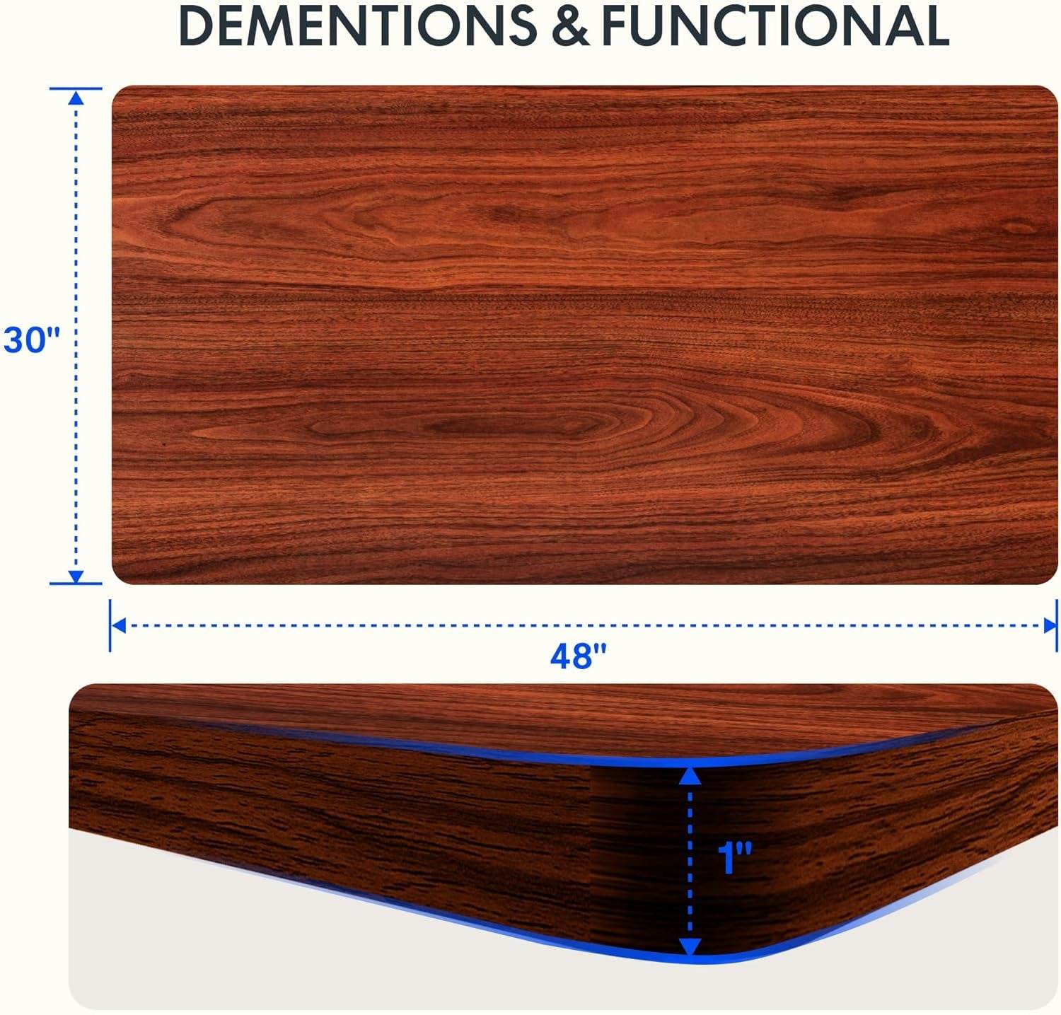 EN2 Height Adjustable Electric Standing Desk - 48"x30" with Clamp Power Strip & Cable Management (Gray Frame + Mahogany Top)