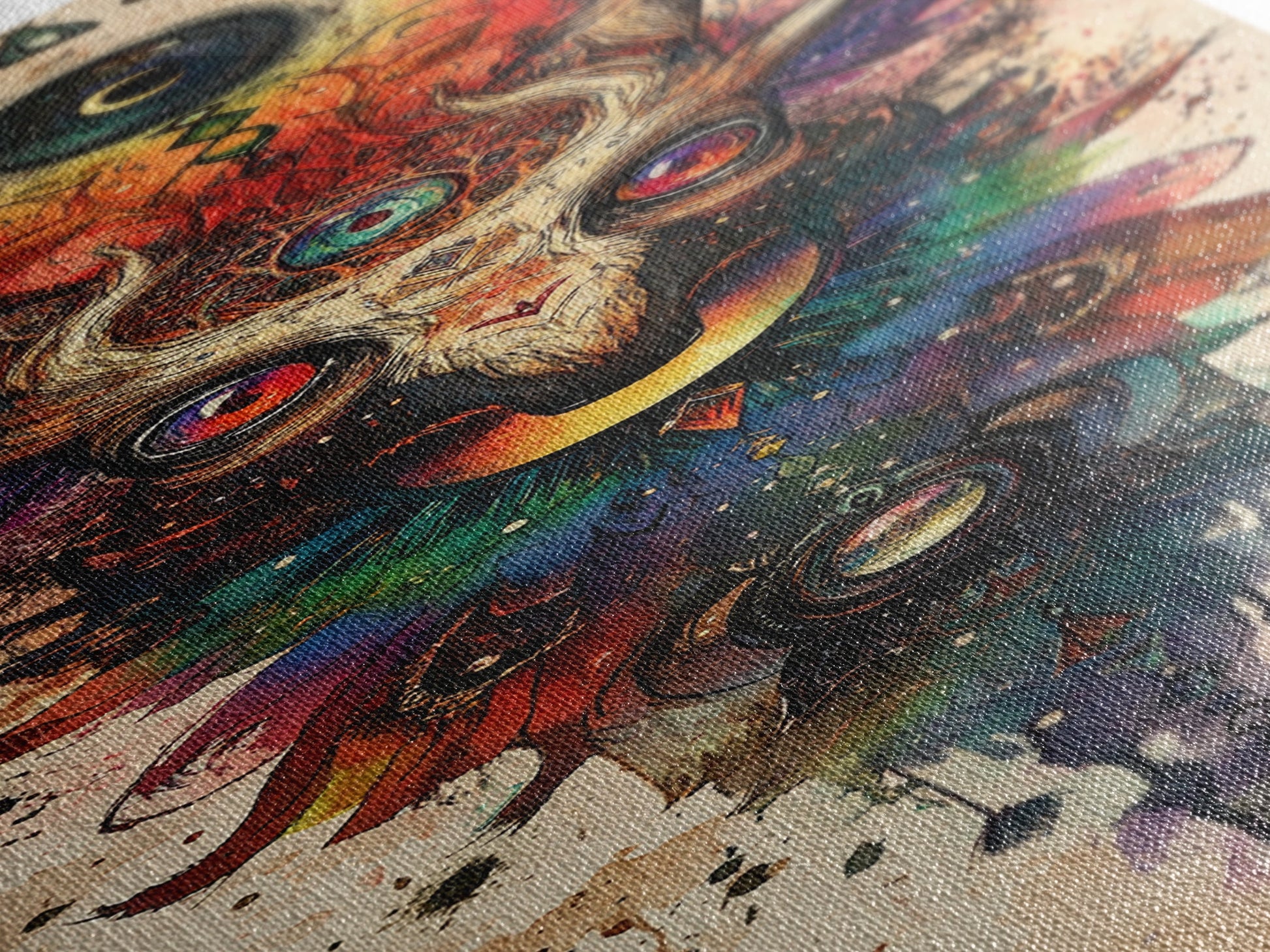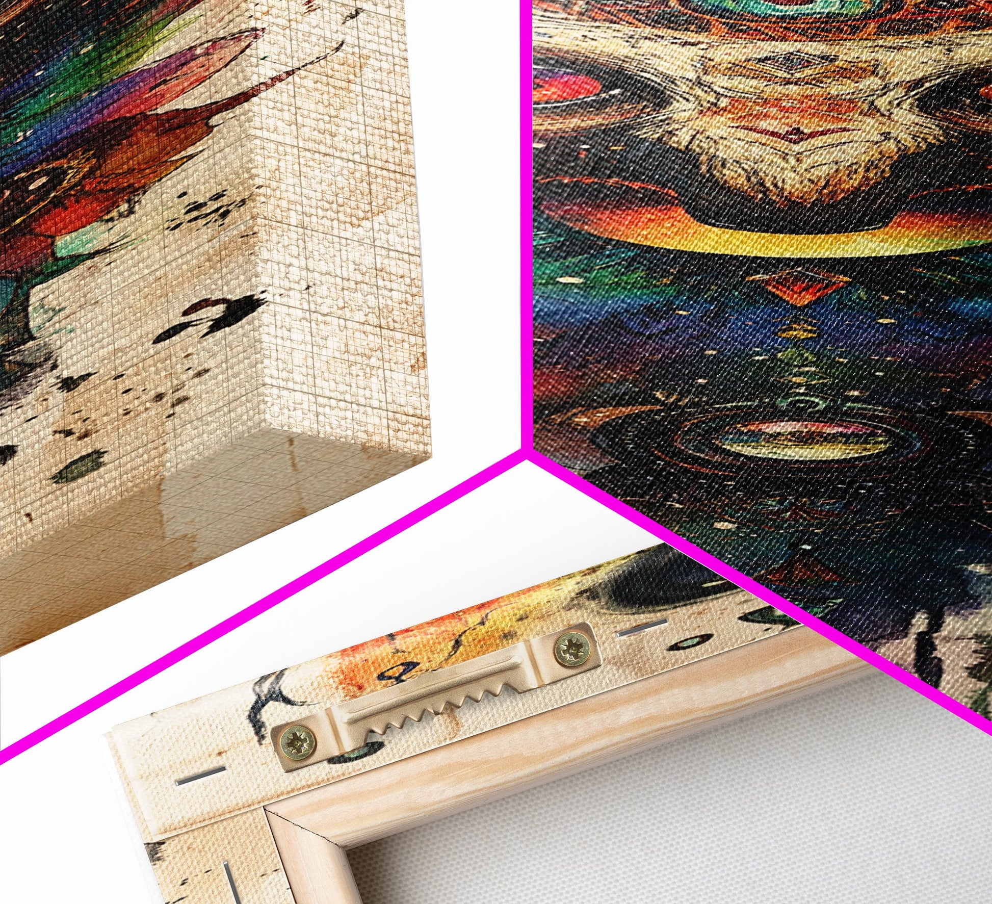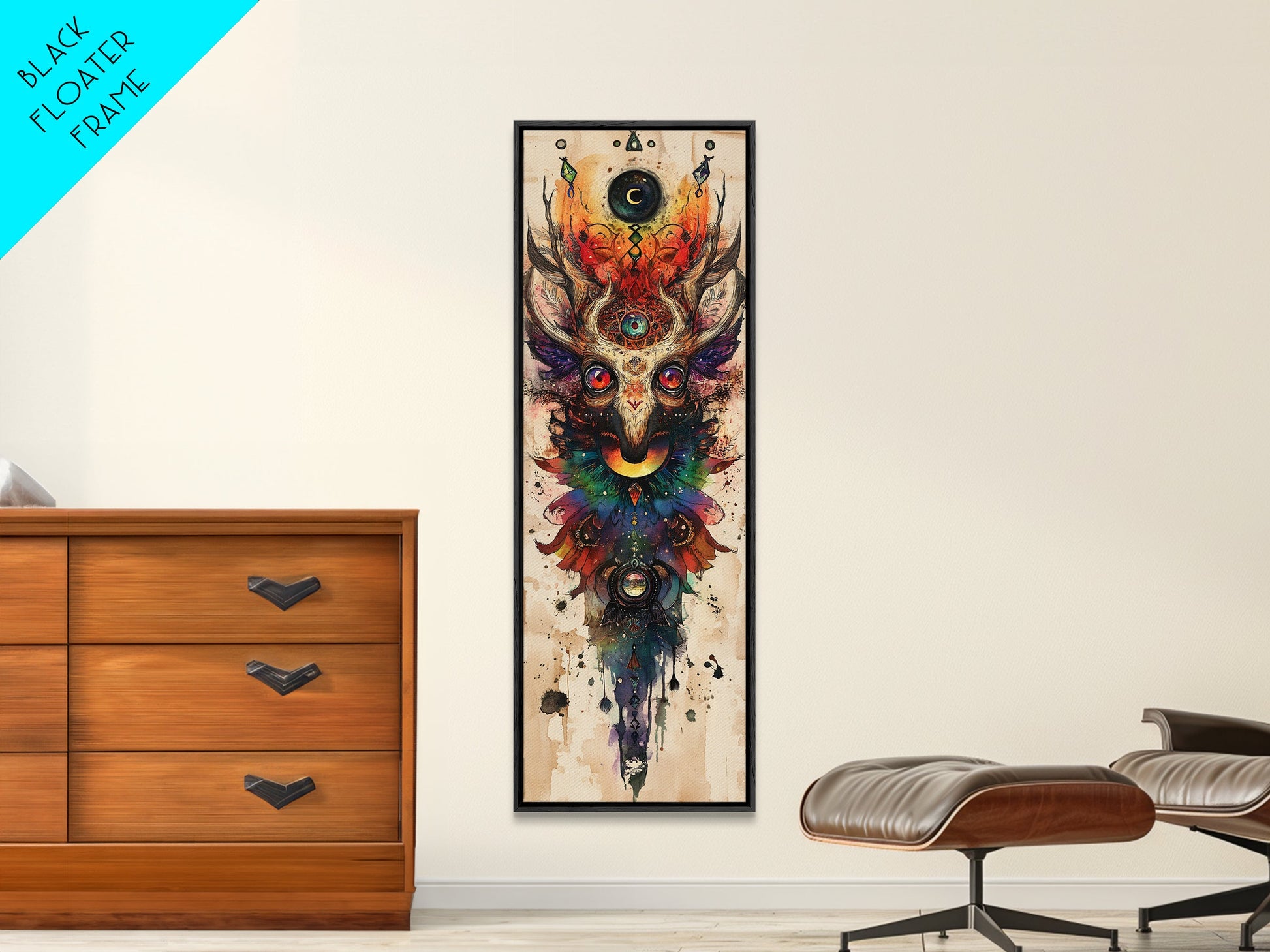Enchanted Deer Canvas Print Featuring Sacred Geometry, Vibrant Color Palette, Boho Art And Ideal Living Room Rustic Wall Decor