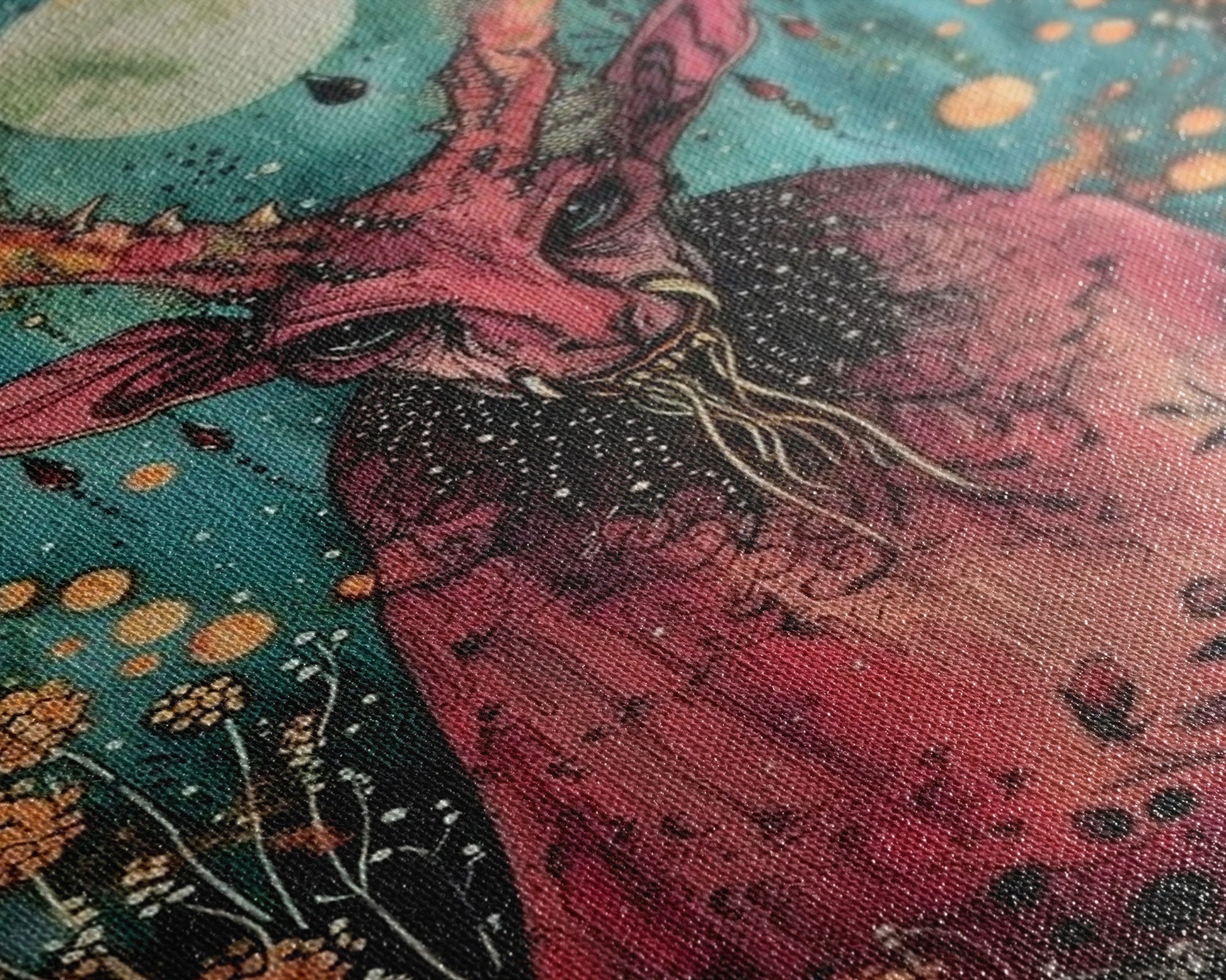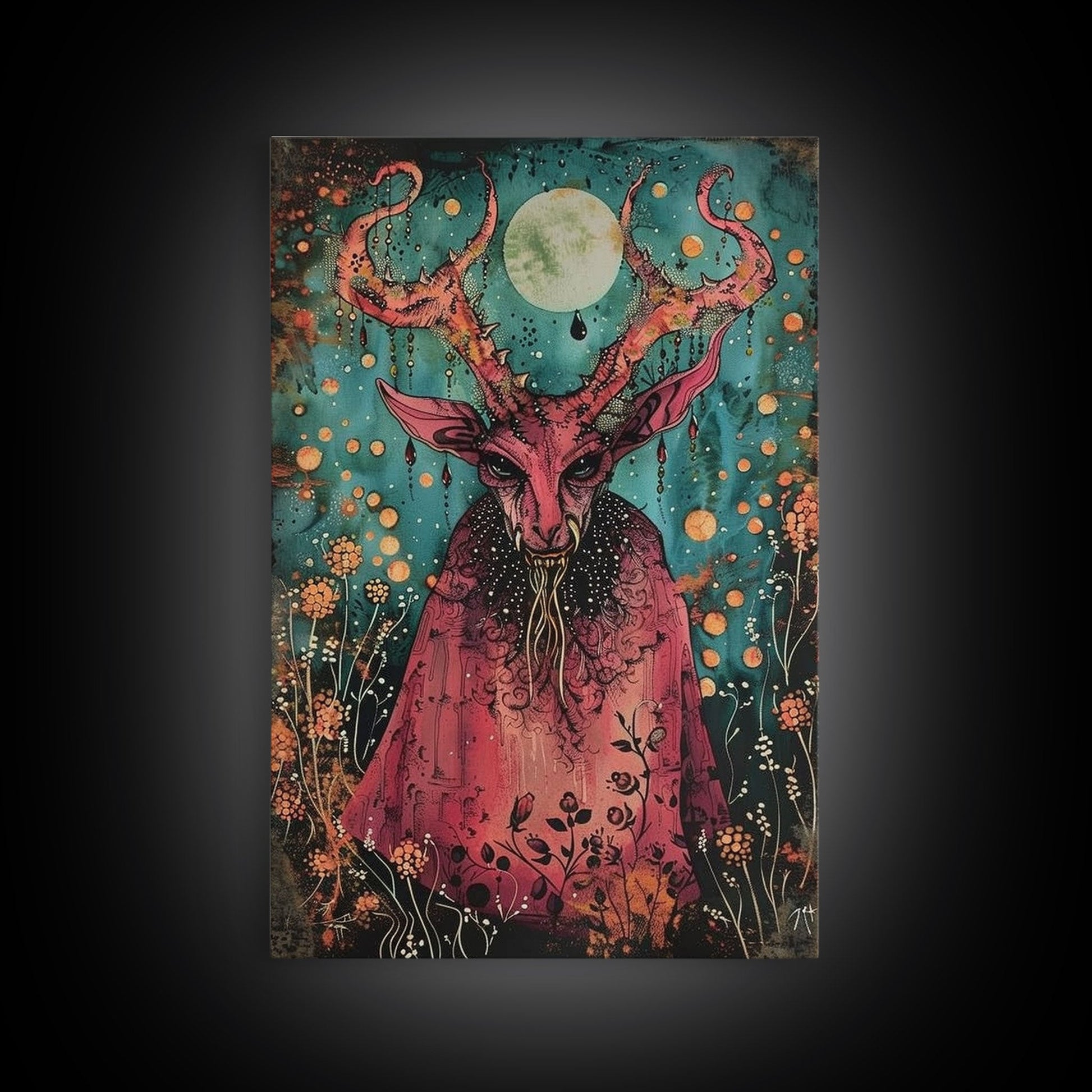 Enchanted Demon Under Full Moon Framed Canvas Print, Halloween Art, Creepy Wall Art, Spooky Home Decor, Art, Haunting Living Room Decor