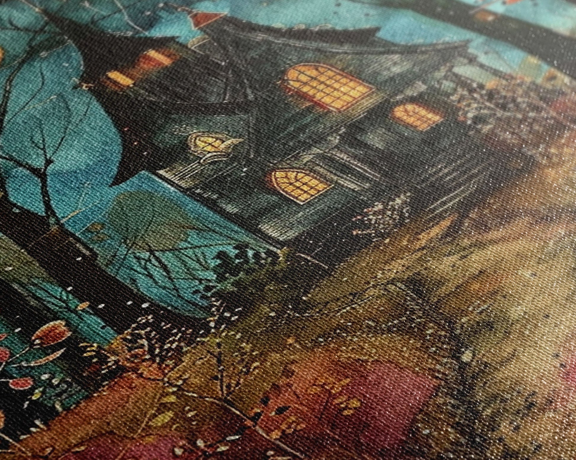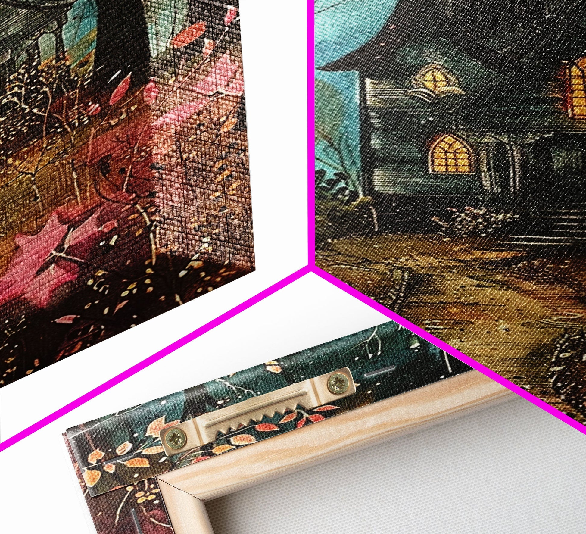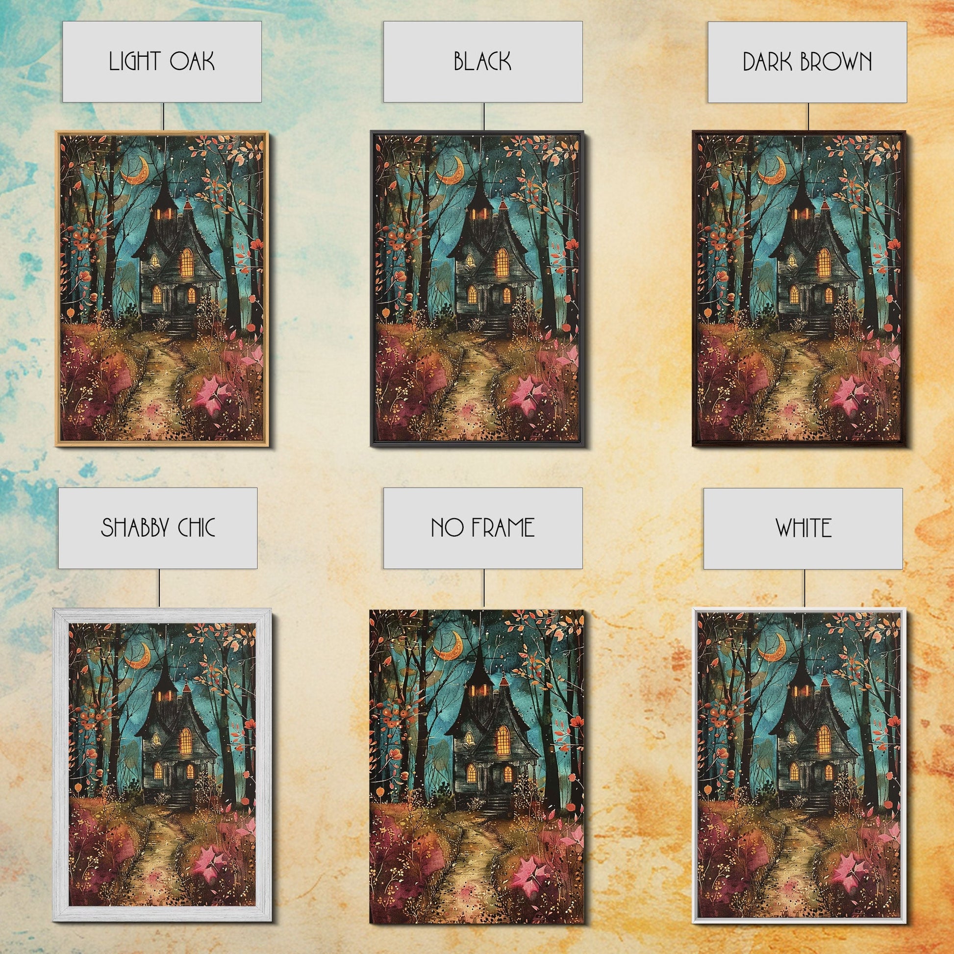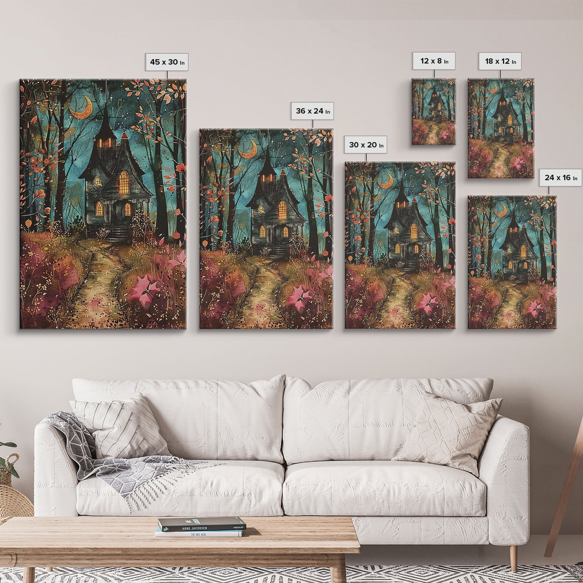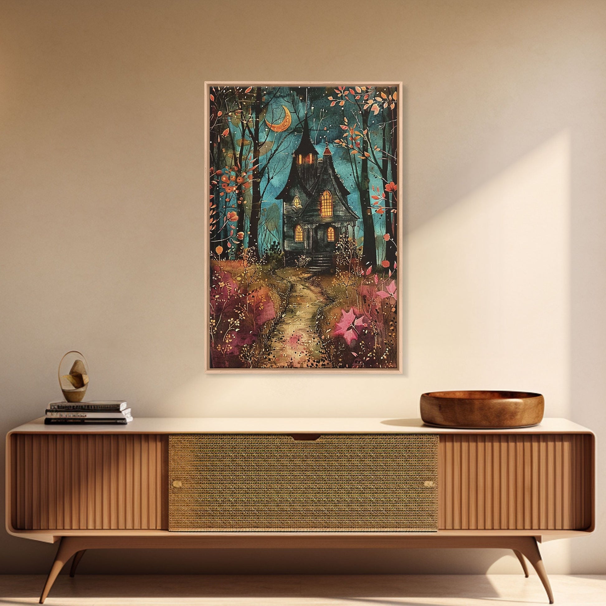 Enchanted Forest Pathway Framed Canvas Print, Haunted Woods Art, Halloween Night, Spooky Path Decor, Mysterious Artwork, Framed Canvas Print