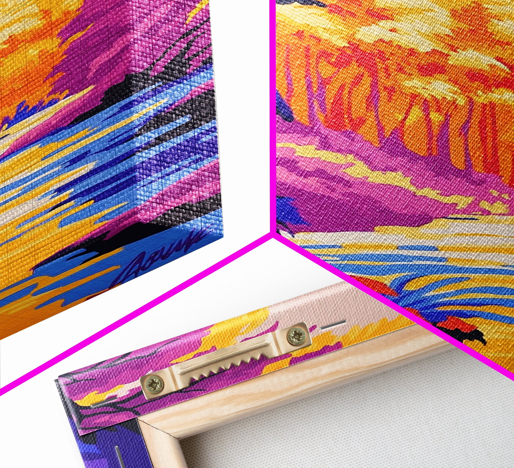 *Optional frames add a total of 1.5 inches to each dimension, for example a 10x20 canvas with a frame will be 11.5 by 21.5 inches total. All framed canvas are 1.5" total depth.
