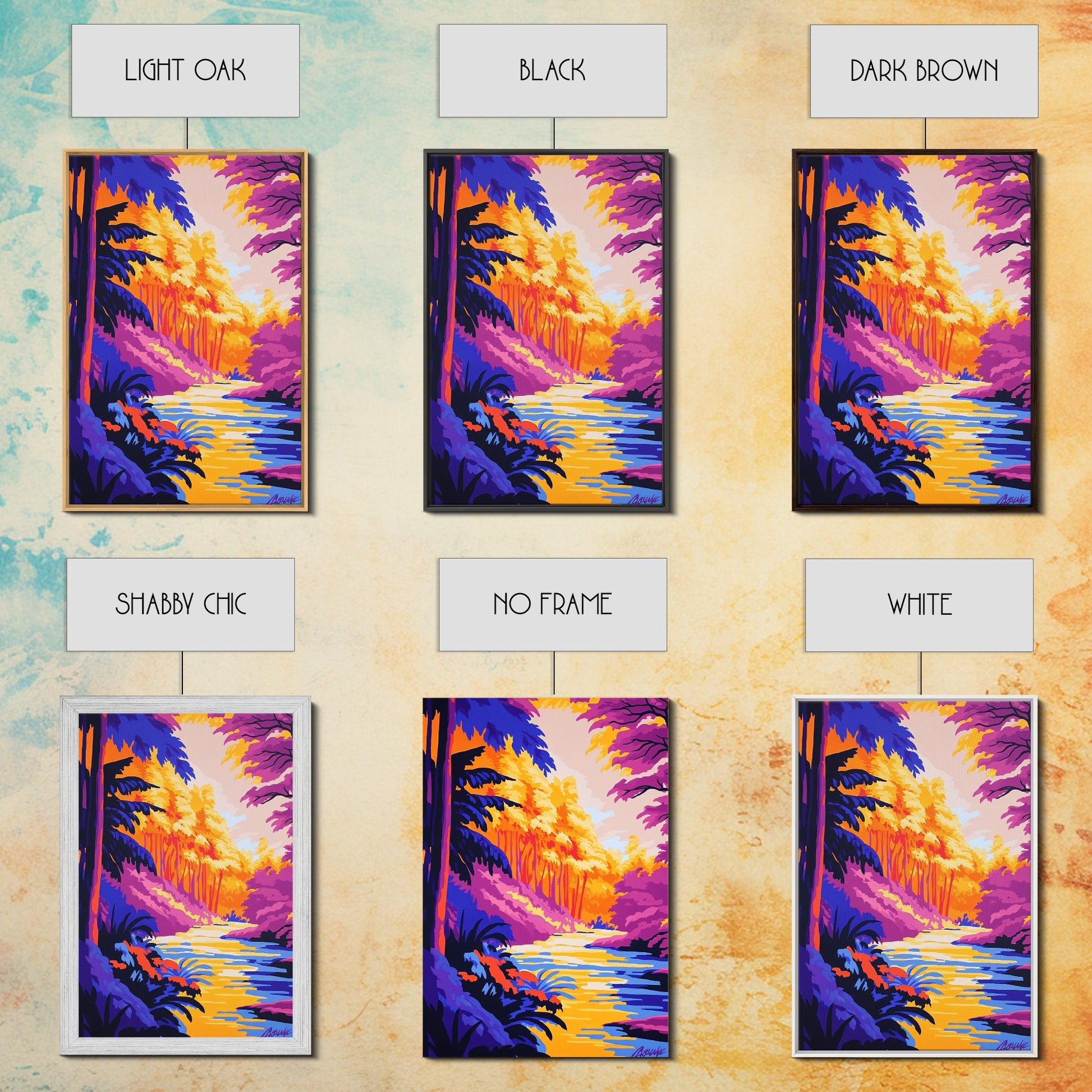 Enchanted River, Fantasy Landscape, Bright Colors, Nature Inspired, Canvas Print, Mystical Forest Art, Living Room Wall Art