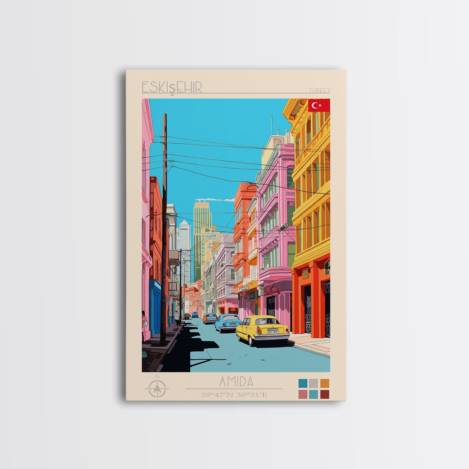 Eskişehir Turkey Travel Poster Framed Canvas Print, Midcentury Modern Art, Pop Art Wall Decor, Scenic Living Room Art, Bedroom Decor