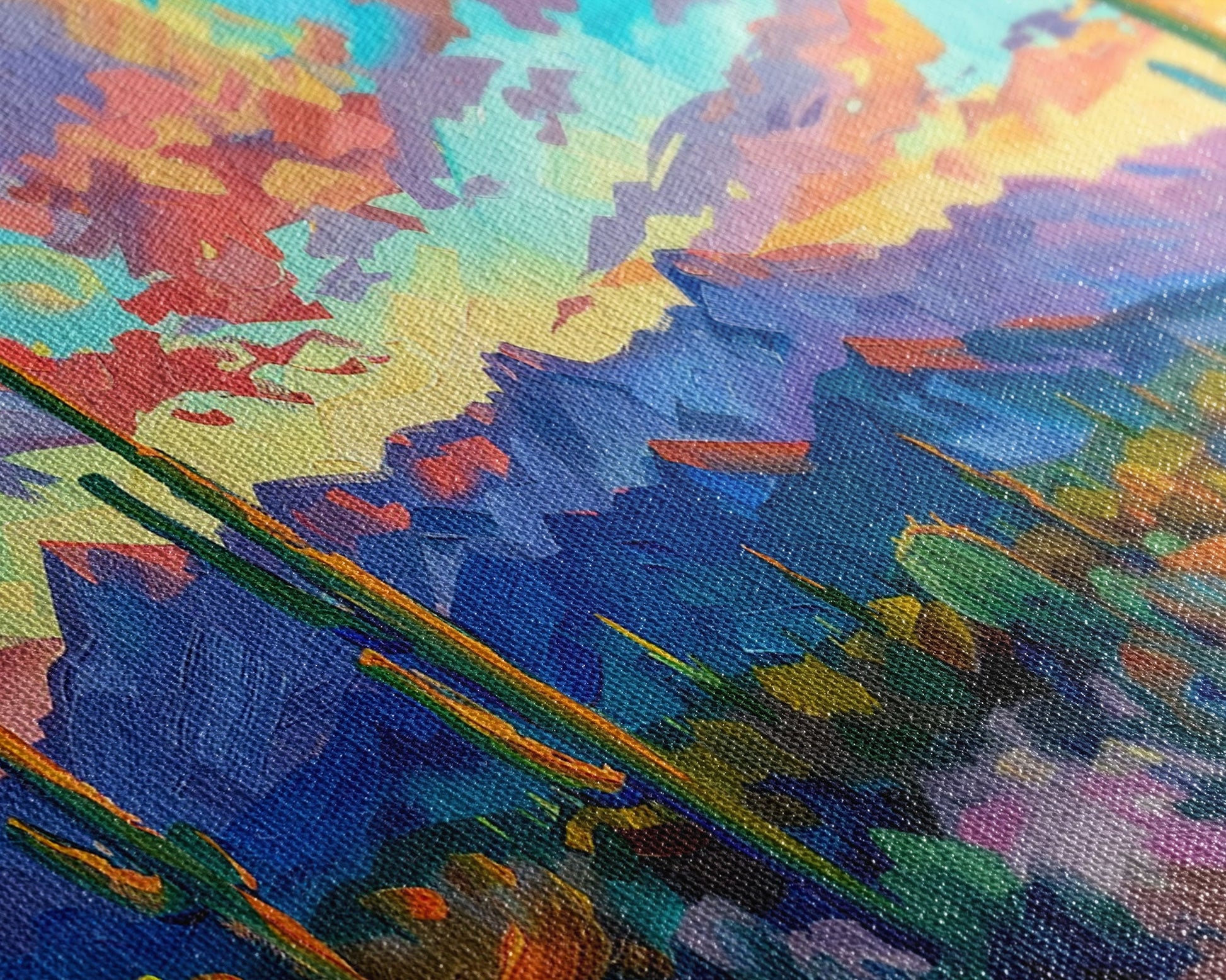 Most of our canvases are made in the USA, with the exception of canvases ordered with the light oak unstained frames, and any large canvases (24x48, 30x60, 16x48 and 20x60) ordered WITH a frame. These are temporarily made in and shipped from Europe, while we try to find a more consistent supplier in the USA.