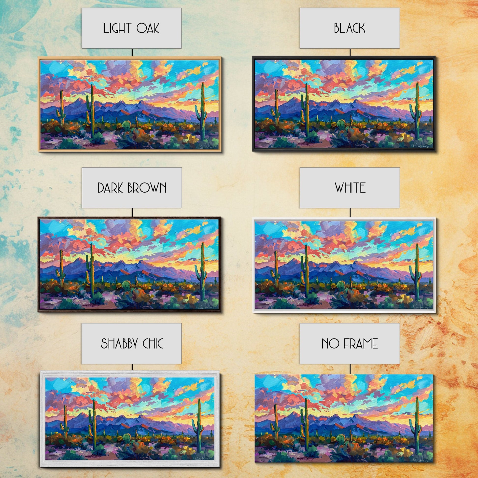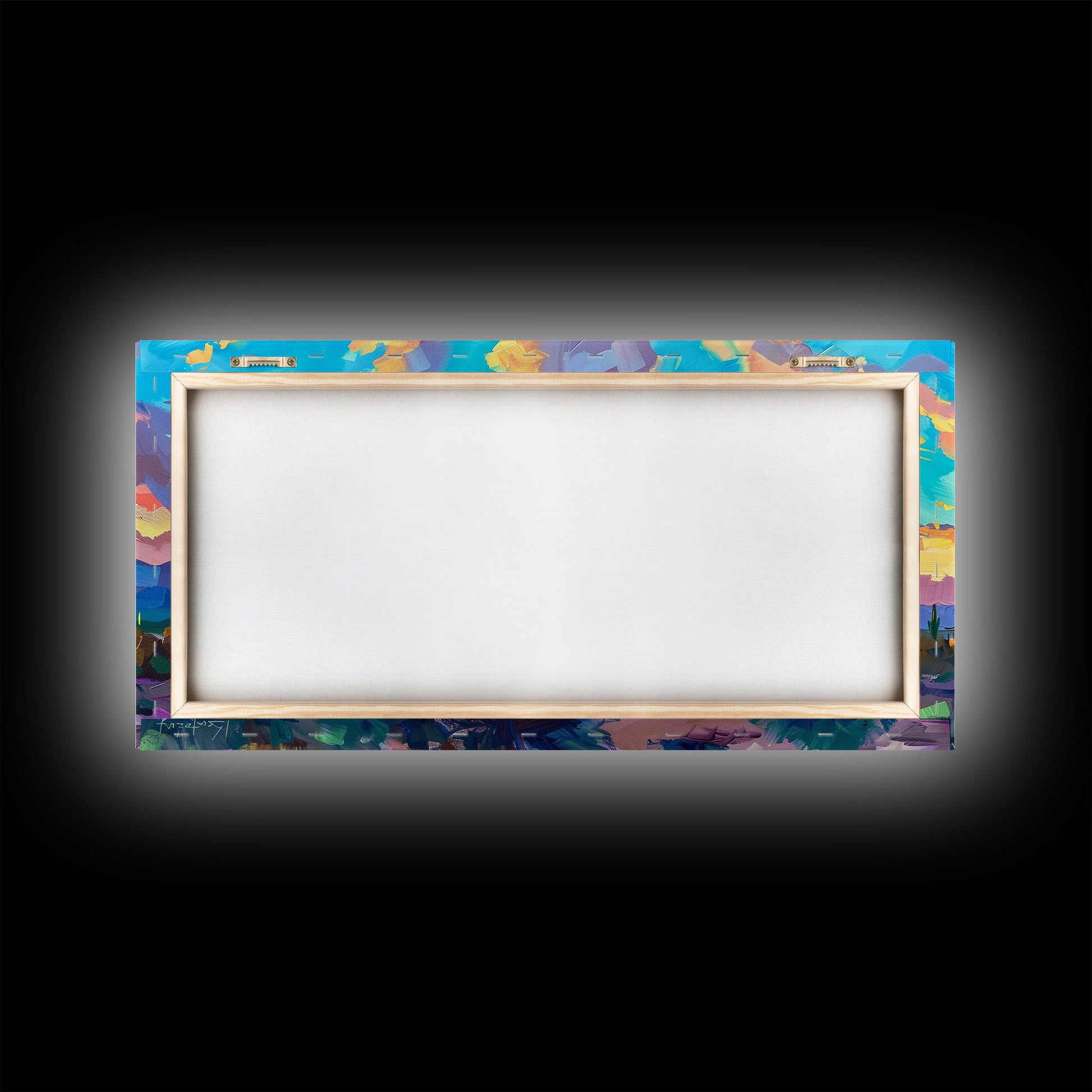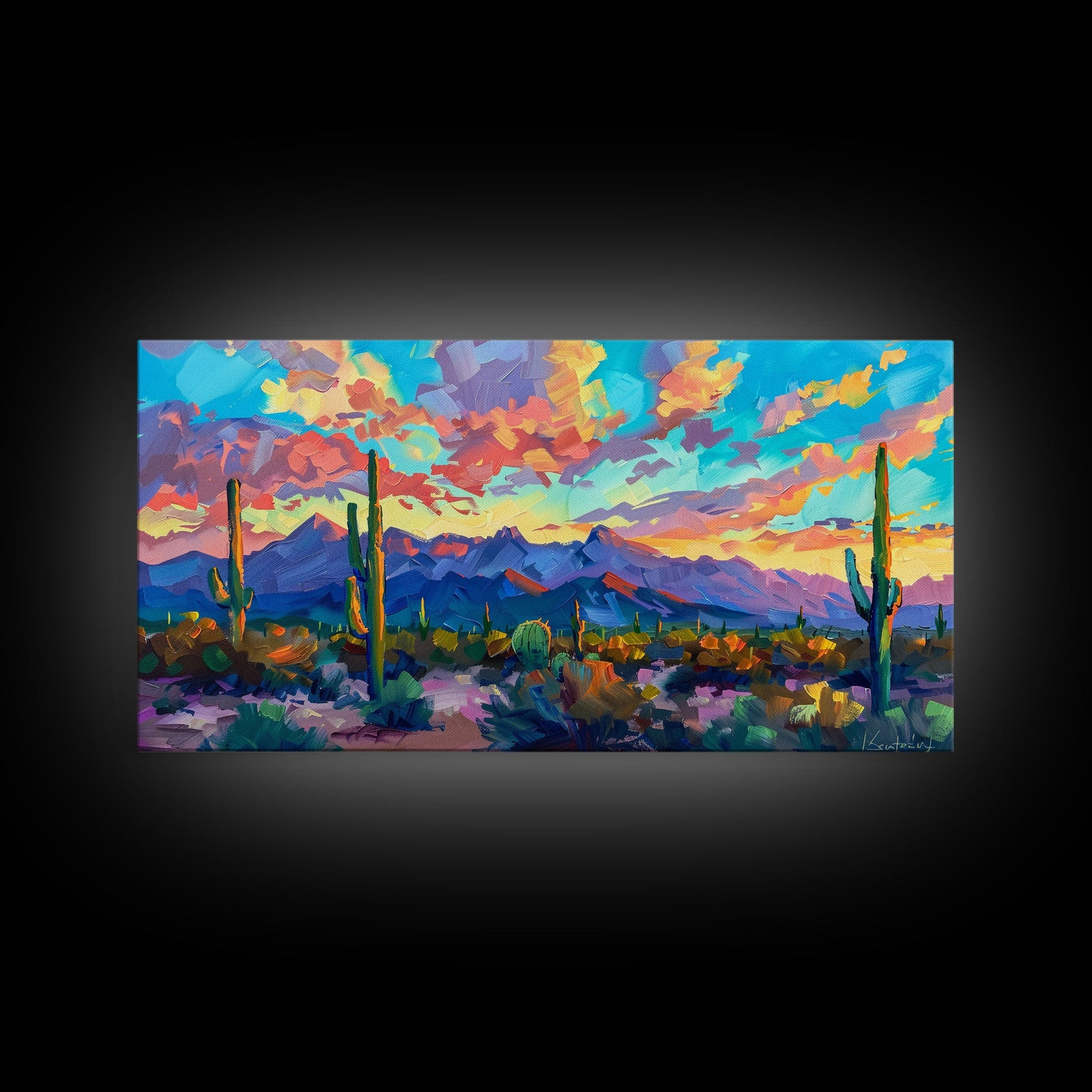 Expansive Desert Landscape at Sunset, Colorful Southwestern Art, Framed Canvas Print, Boho Living Room Wall Decor, Desert Scene