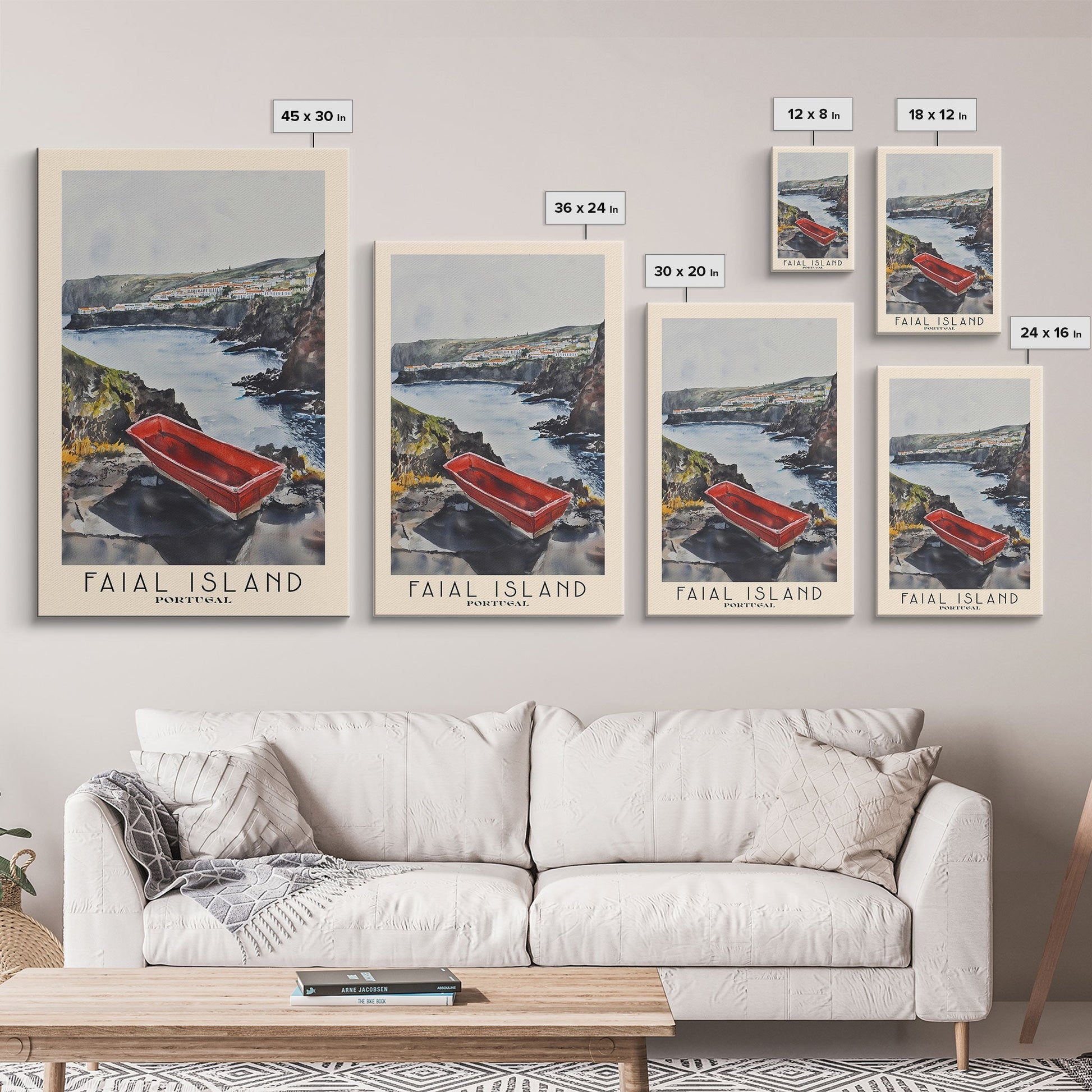 Faial Island, Portugal Watercolor Beach Print, Vacation Gift, Portugal Wall Art, Framed Canvas Print, Framed Beach Painting