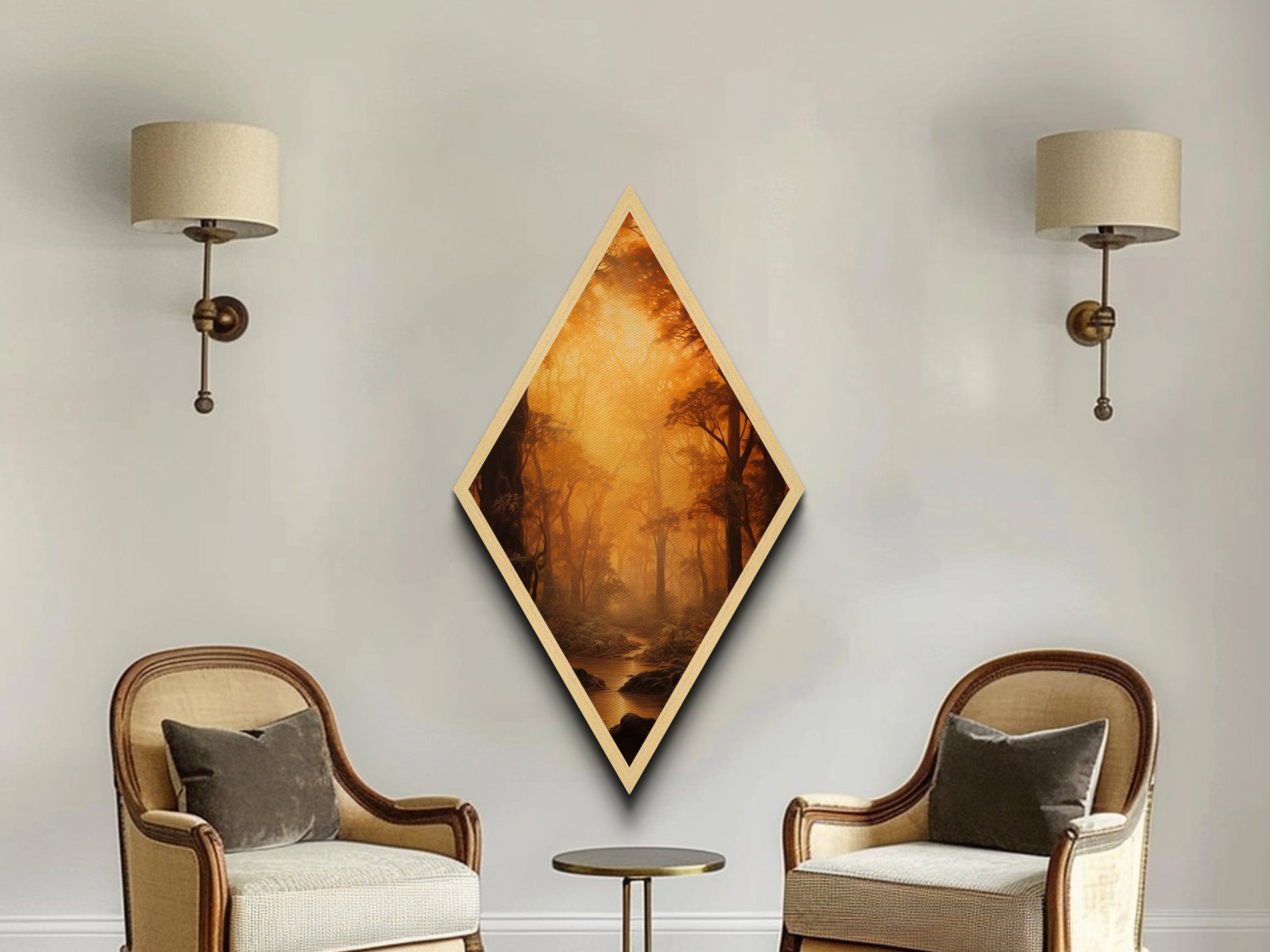 Fall In The Forest, Canvas Textured Print, Diamond Shaped Landscape Painting, Retro Home Decor, Nature Painting