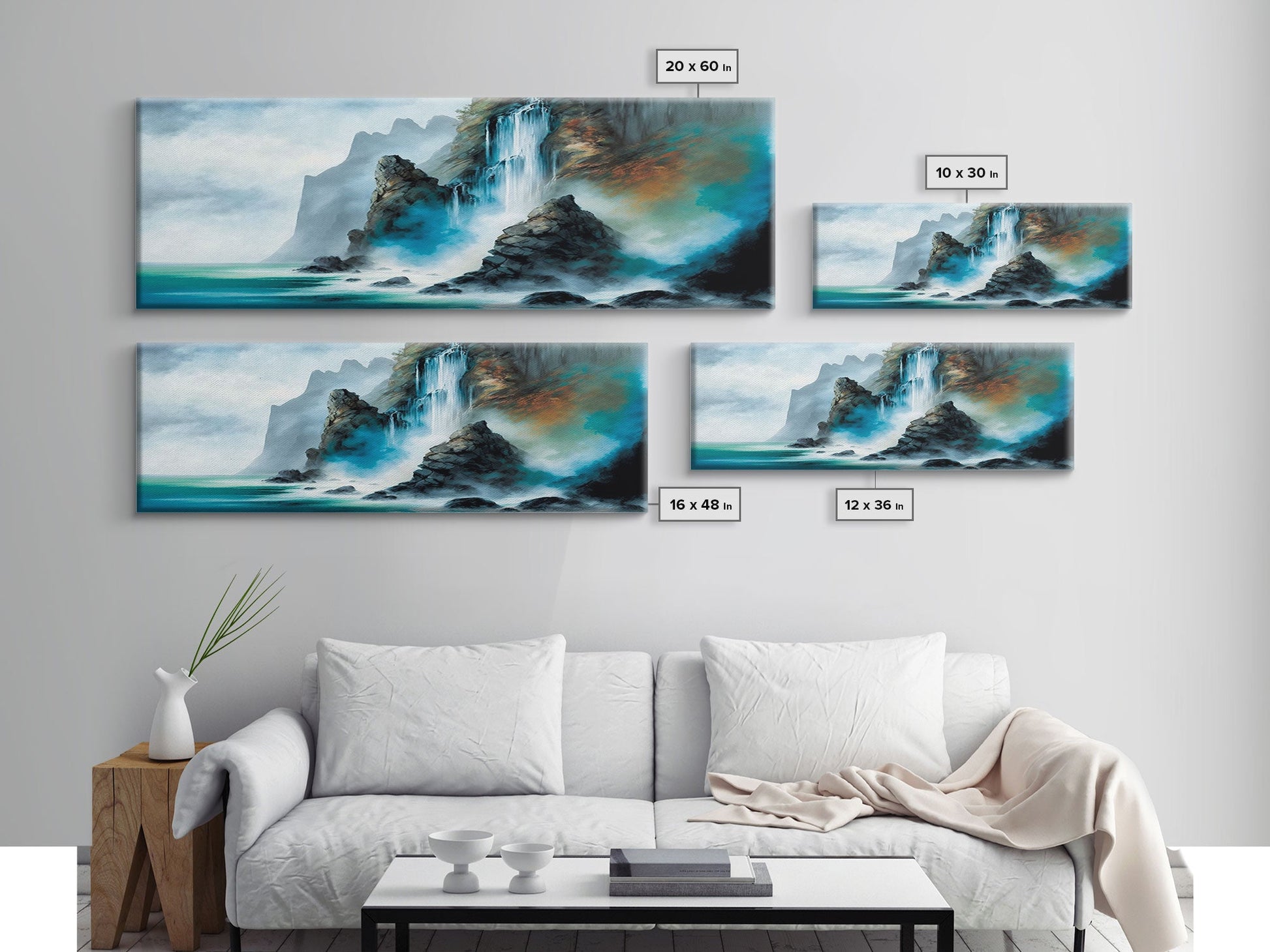 Fantasy Waterfall Canvas Print - Panoramic Landscape Painting - Perfect for Living Room and Bedroom Decor