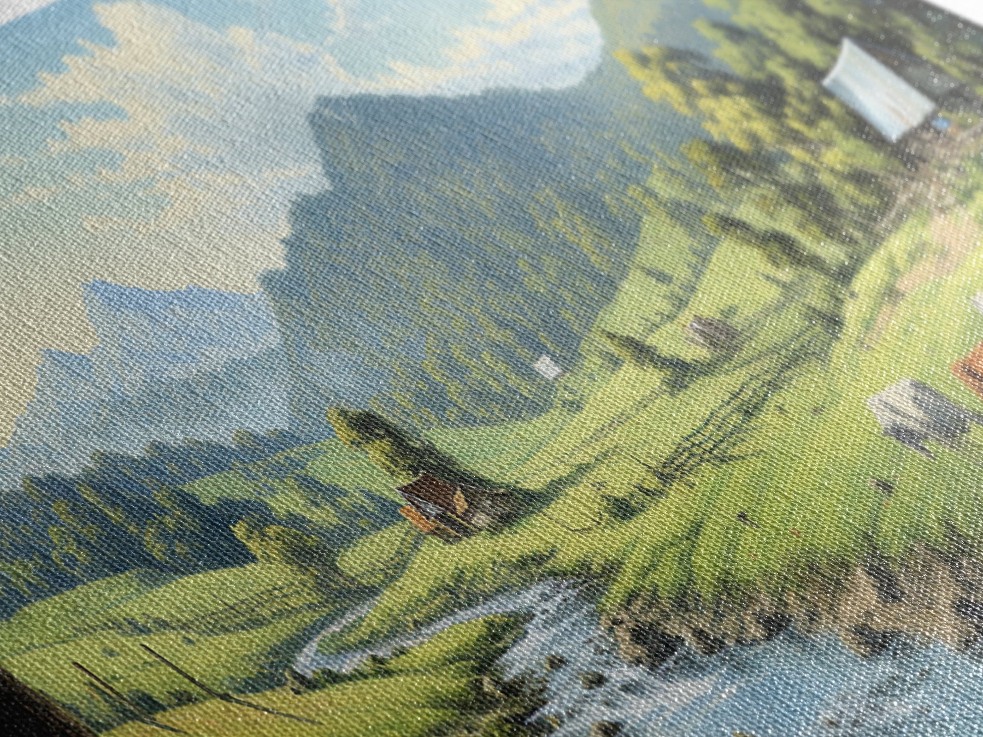Most of our canvases are made in the USA, with the exception of canvases ordered with the light oak unstained frames, and any large canvases (24x48, 30x60, 16x48 and 20x60) ordered WITH a frame. These are temporarily made in and shipped from Europe, while we try to find a more consistent supplier in the USA.