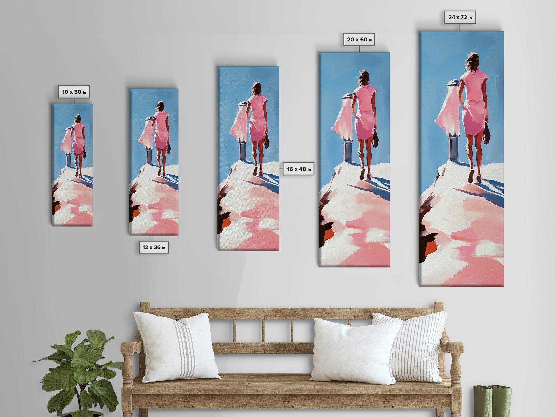 Fashion Model Walking, Feminine Wall Art, Chic Bedroom Decor, Soft Pastel Aesthetic, Minimalist Fashion Illustration, Canvas Print