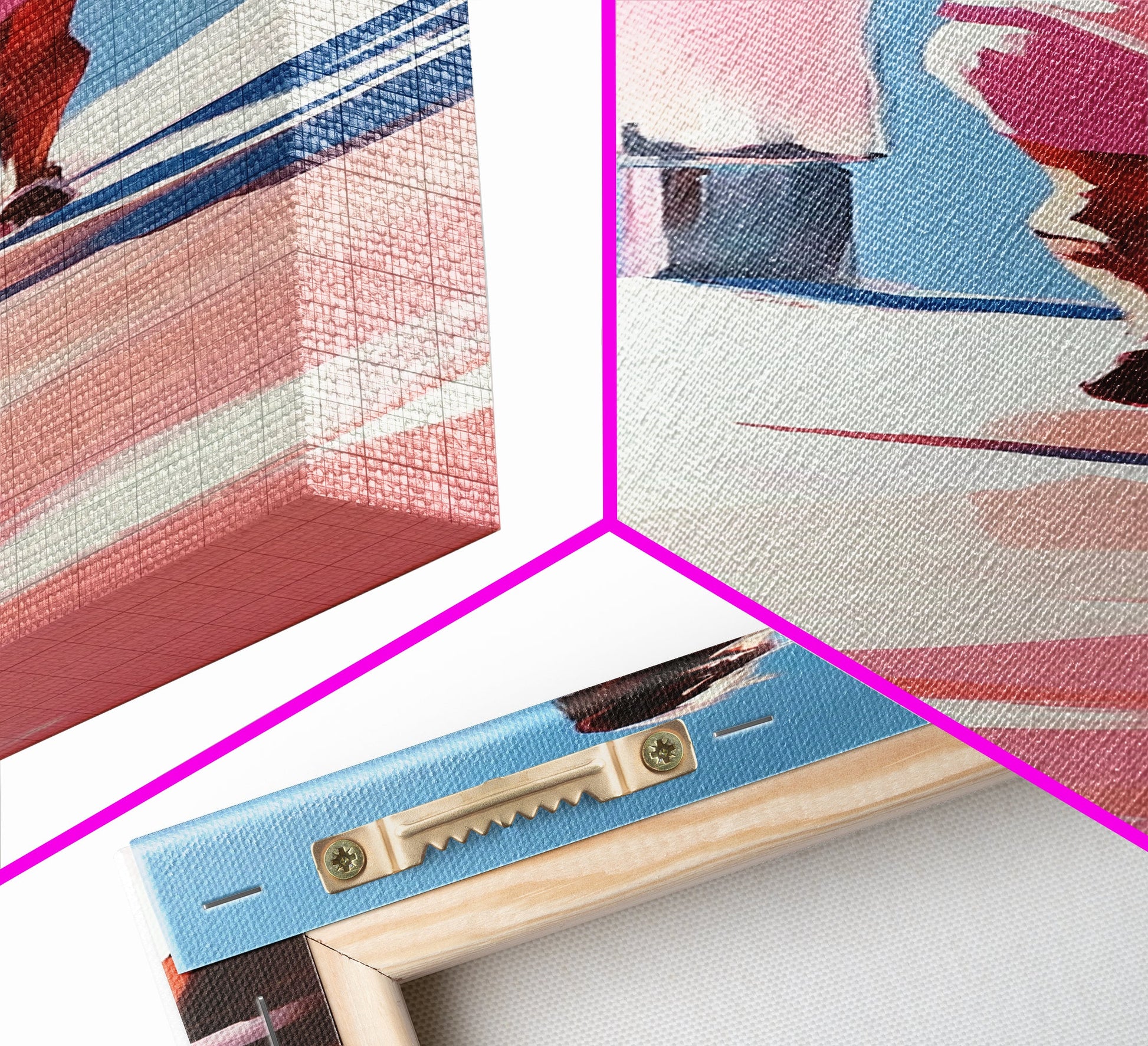 Hello and thank you for taking the time to view our modern high quality giclée artwork! We offer both posters and stretched canvas prints. Our posters are printed on Ultra Matte 60 lb / 230 GSM high quality photo paper, with a thickness of 10 mil. Our canvases are printed on museum grade 350 GSM canvas material with ECO friendly archival grade ink, then hand stretched and stapled over premium, FSC certified and shrink resistant frames. Designed and built to last a lifetime.