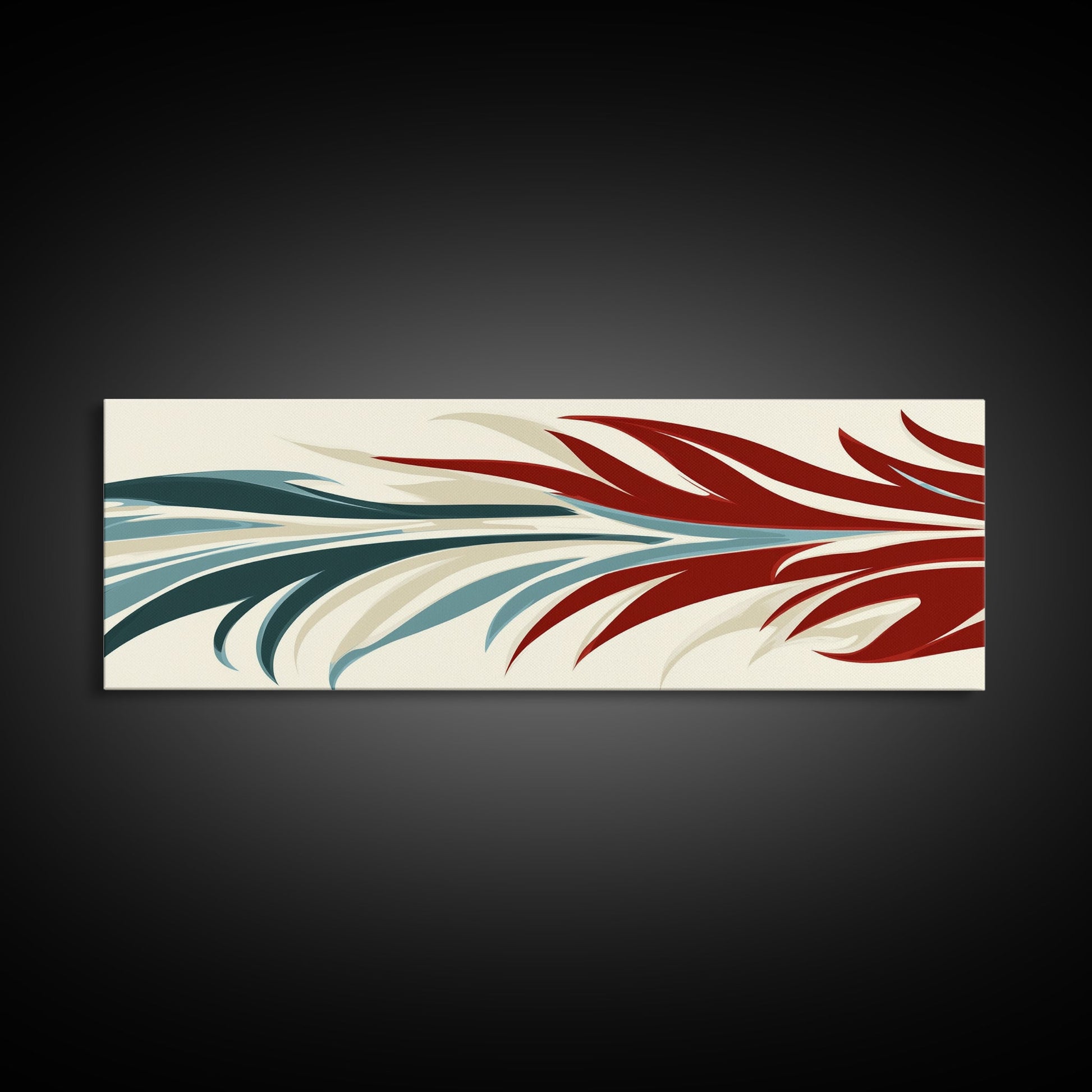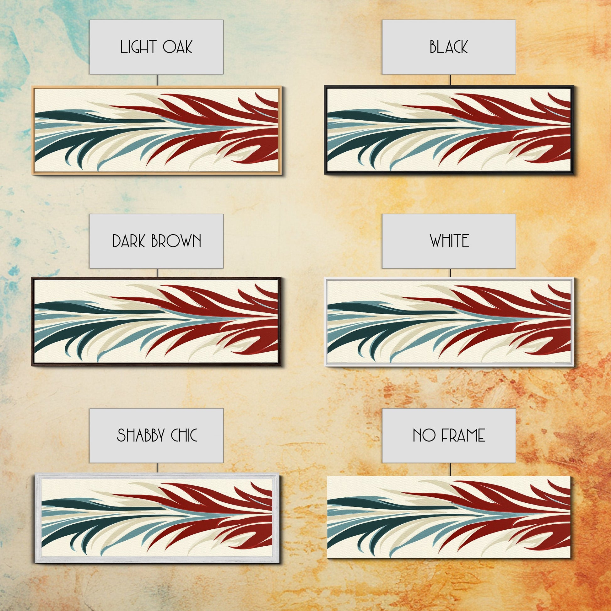 Feathers - Framed Art Deco Canvas Print - Wood Framed Art - Extra Wide Panoramic Art - Oversized Art For Large Space