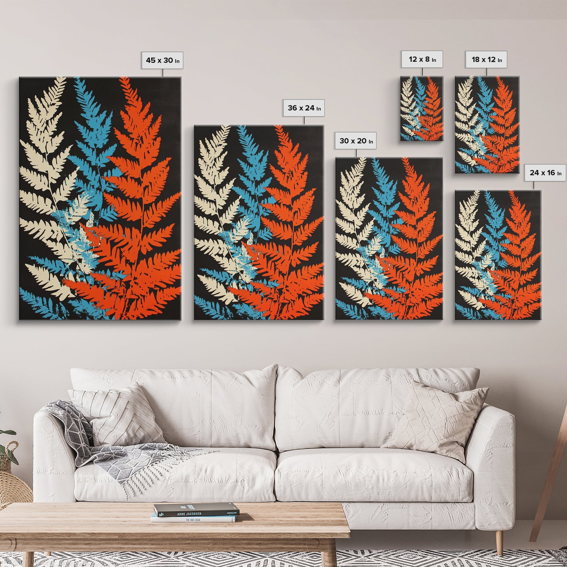 Fern Leaves Abstract Art Print, Retro MCM Style Home Decor, Mid Cenury Modern Abstract Wall Art, Fern Leaves Painting