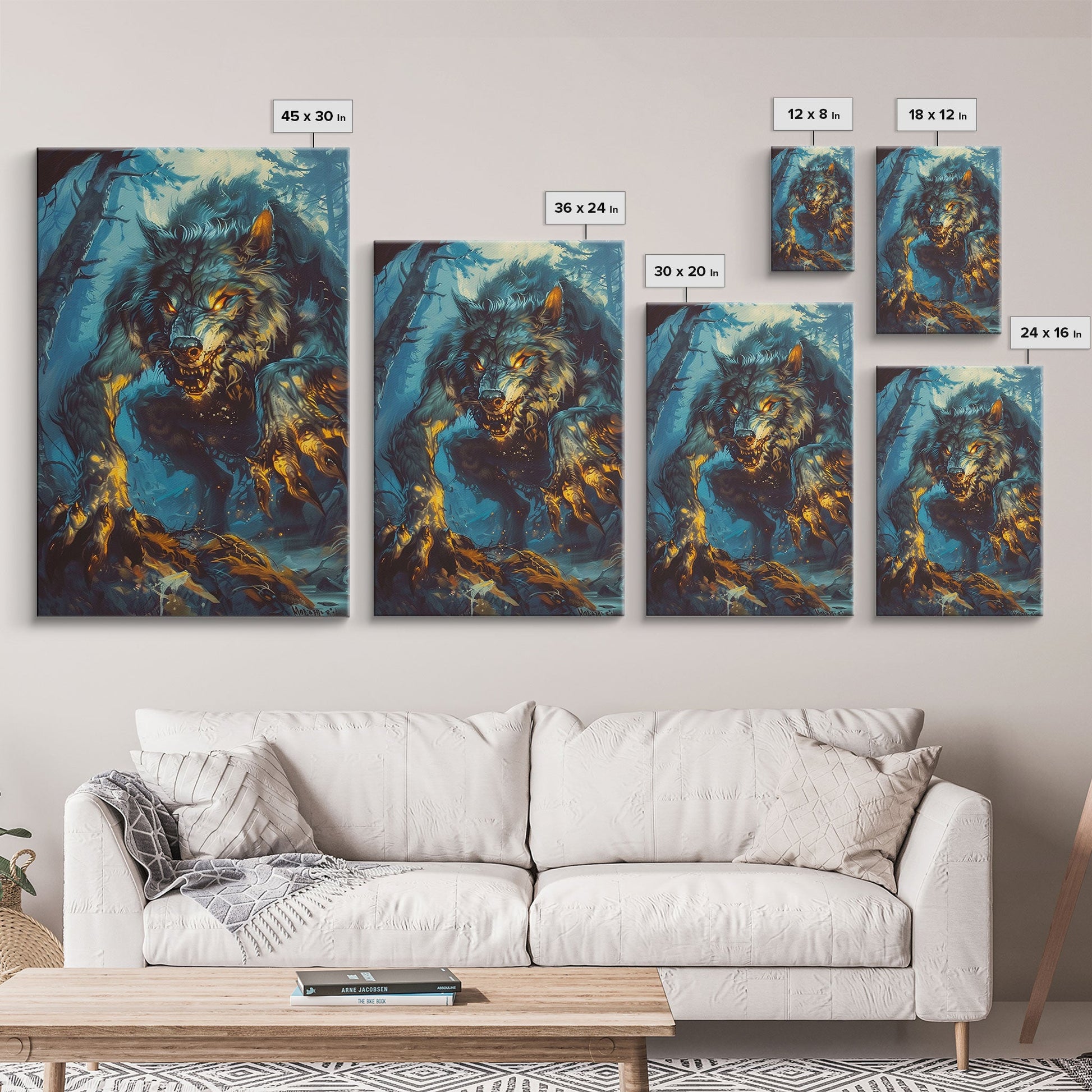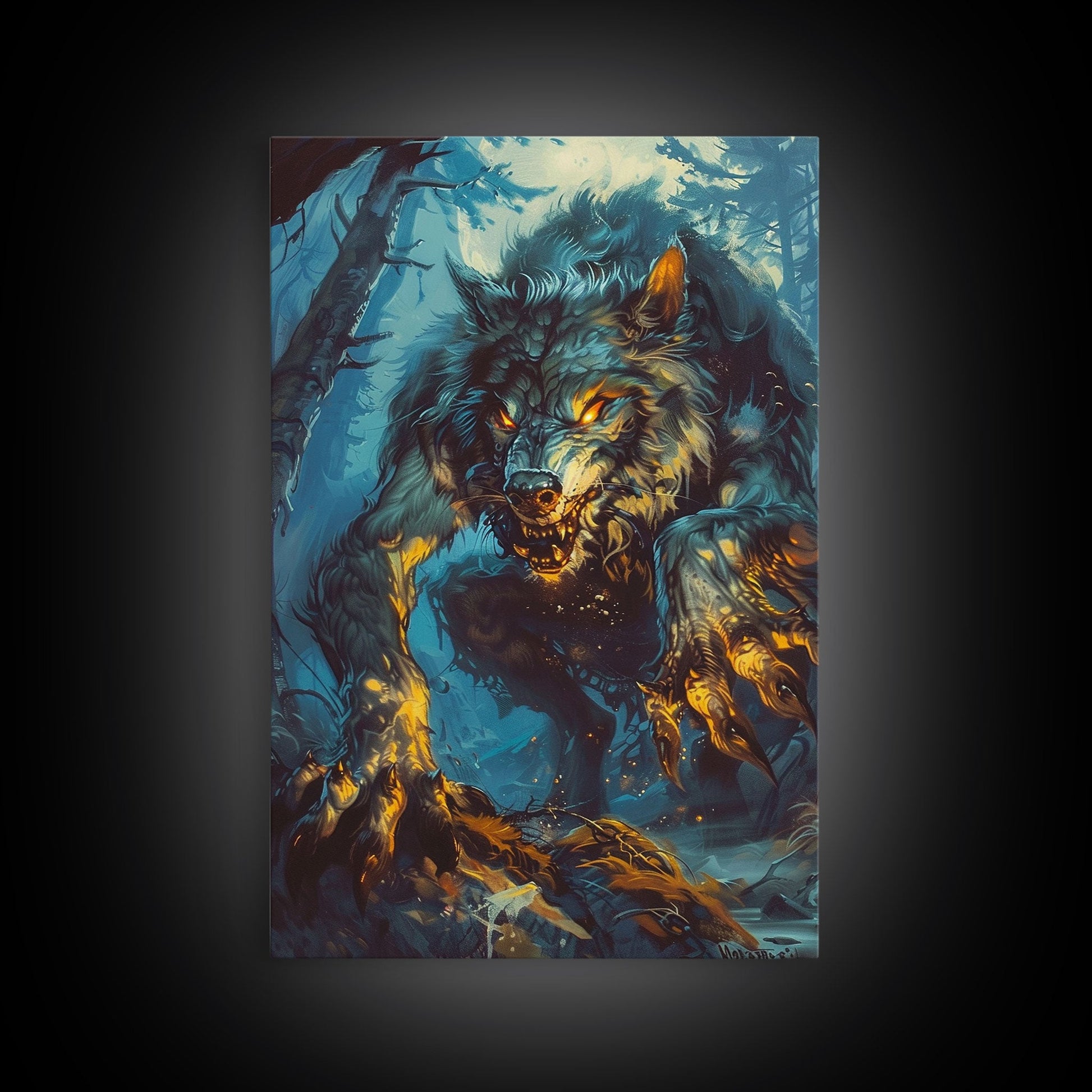 Ferocious Werewolf in the Forest - Halloween Wall Decor - Scary Art Print - Werewolf Painting for Halloween - Spooky Home Decor