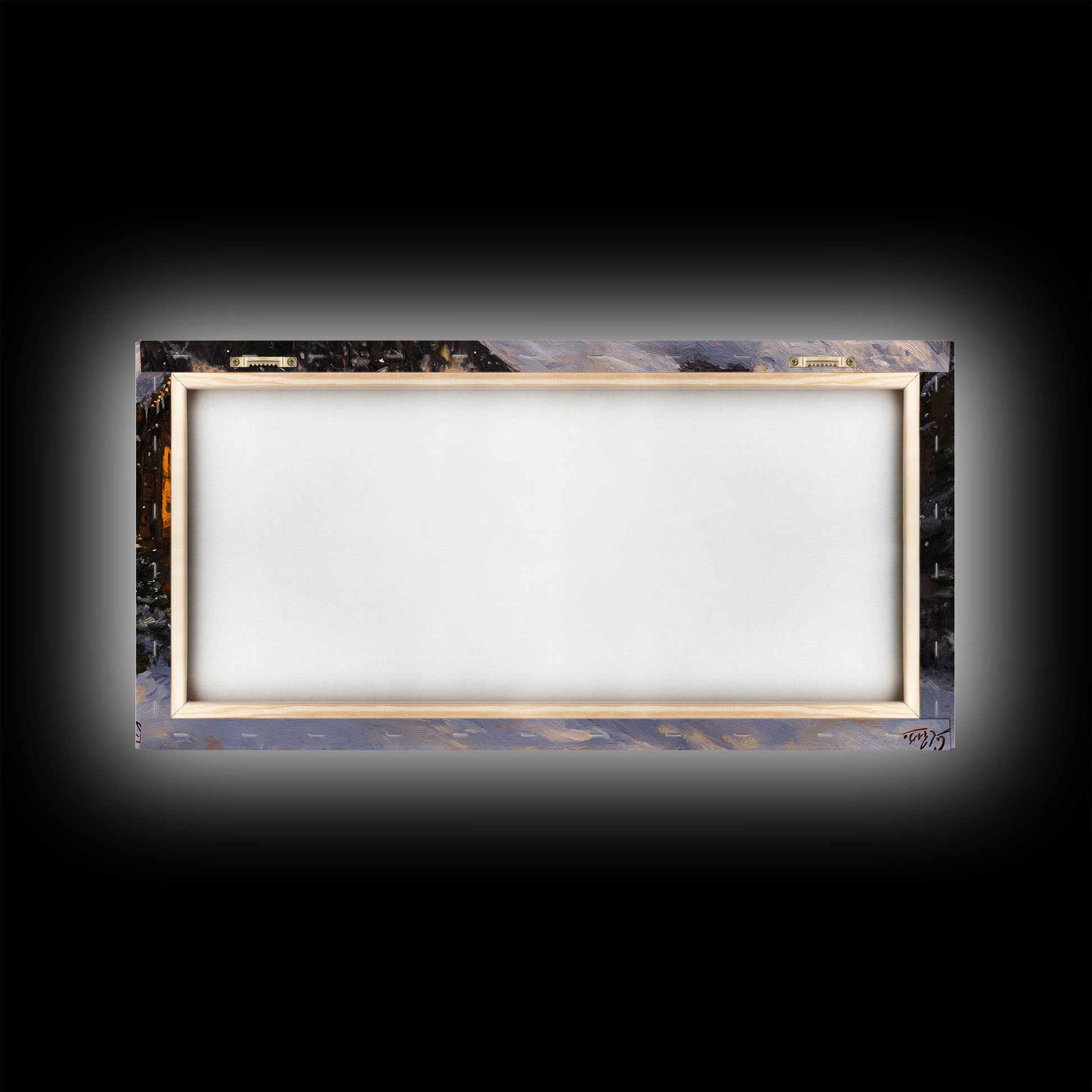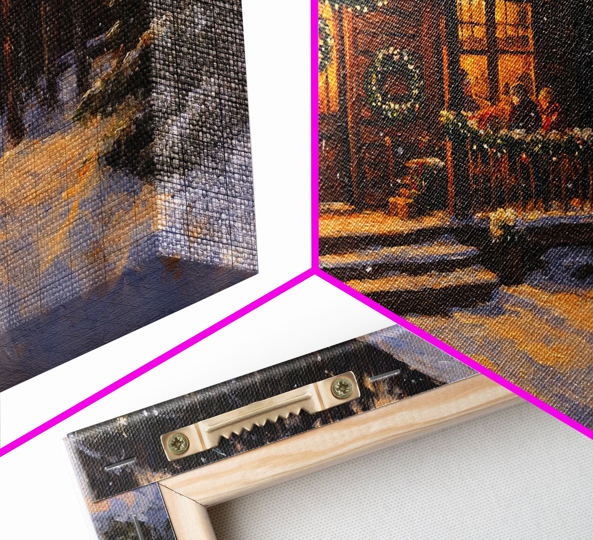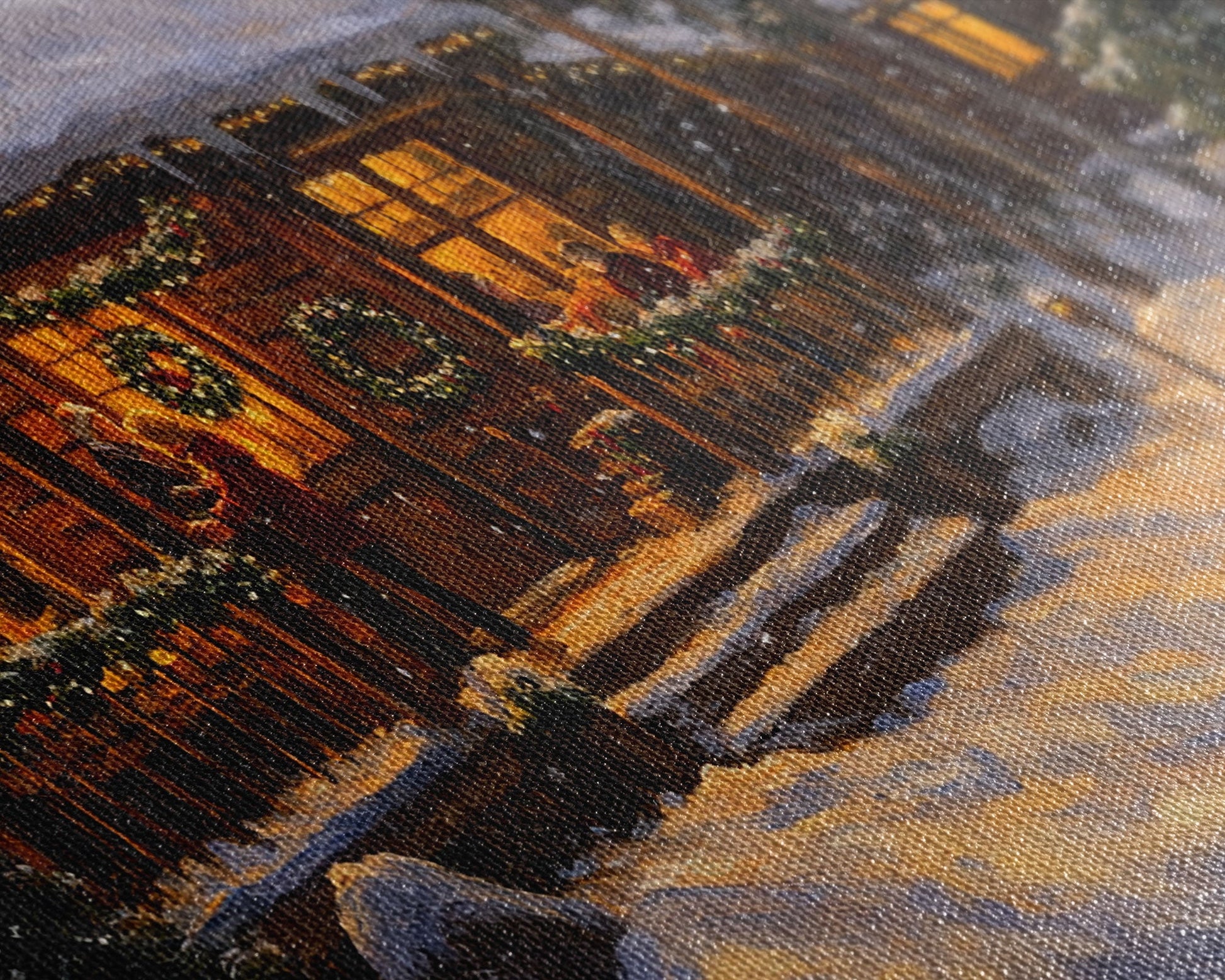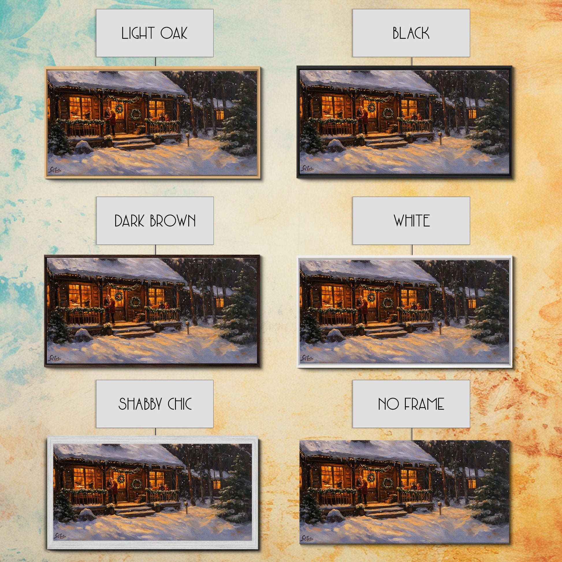 Festive Log Cabin Winter Scene Framed Canvas Print Christmas Wall Art, Rustic Holiday Art, Cozy Christmas Scene, Seasonal Wall Decor Gift