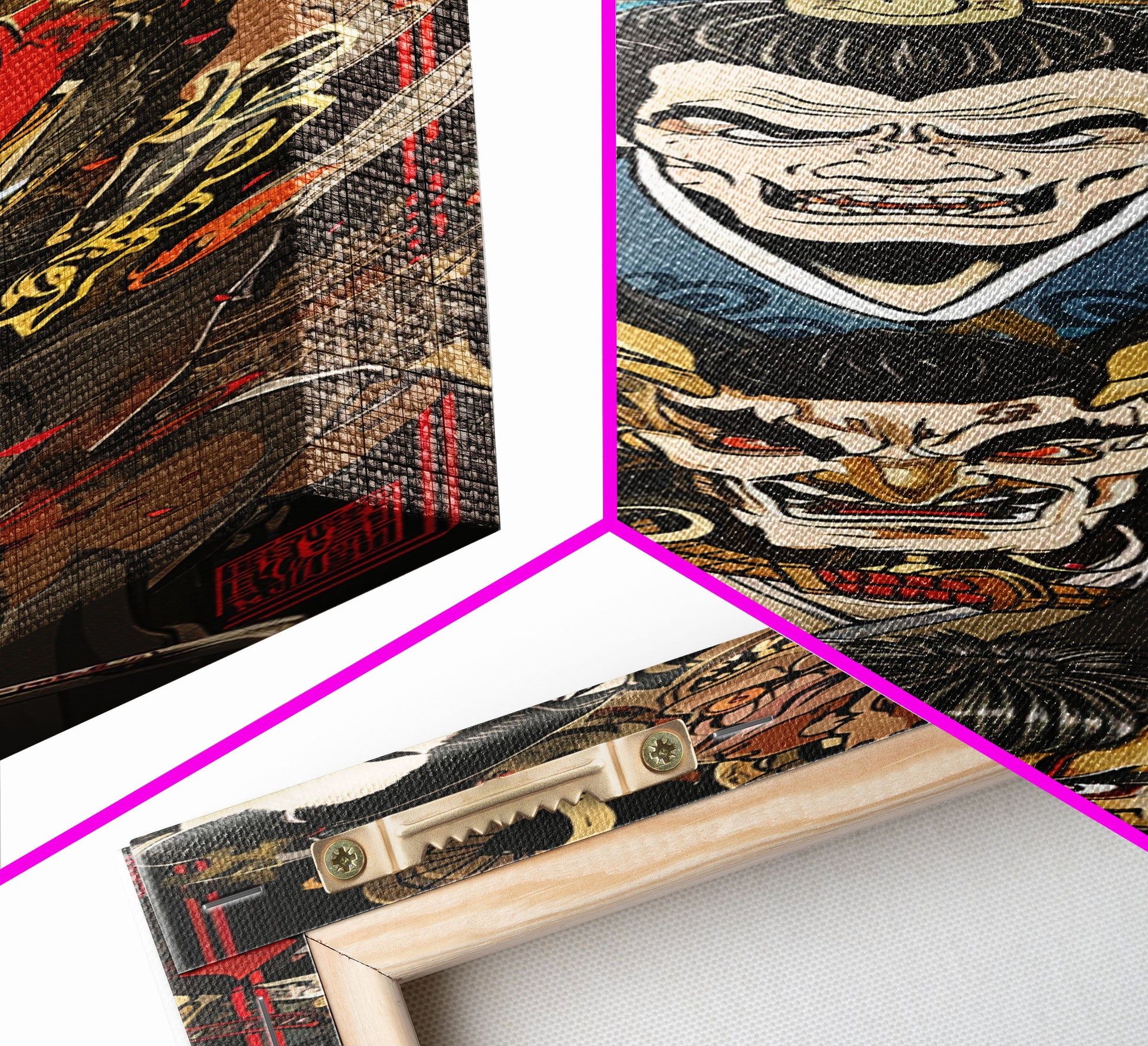 Fierce Samurai Warriors With Oni Mask Tall Art Ukiyo-e Art Wood Block Print Framed Canvas Print