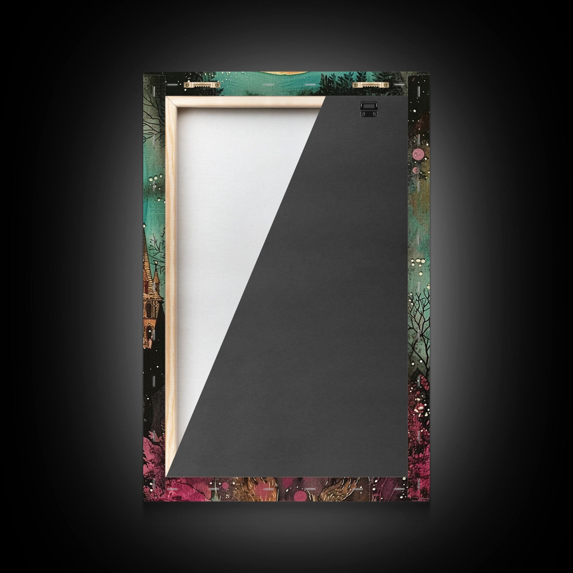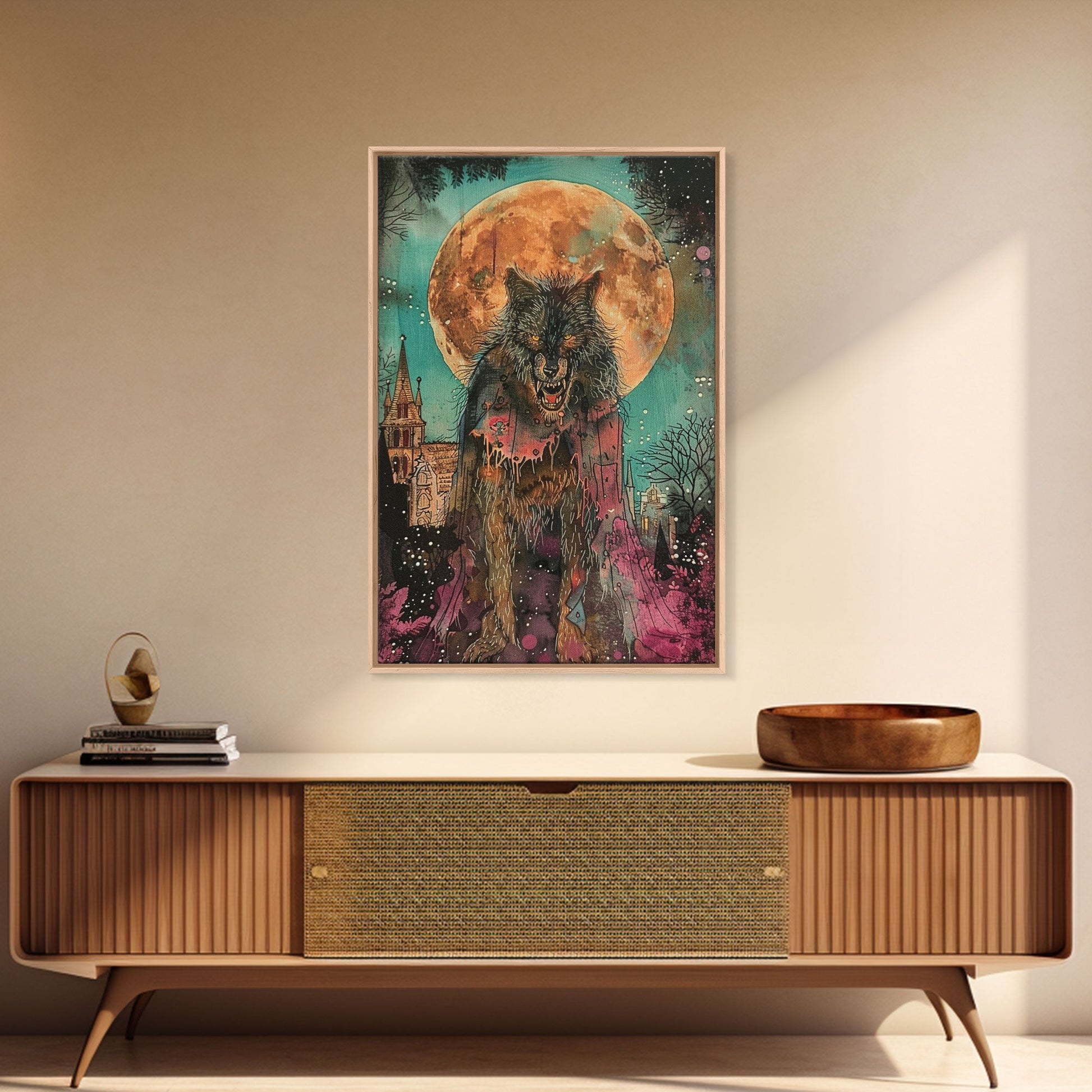 Fierce Werewolf with Blood Moon Framed Canvas Print | Halloween Monster Art | Spooky Werewolf Decor for Home | Intense Full Moon Artwork