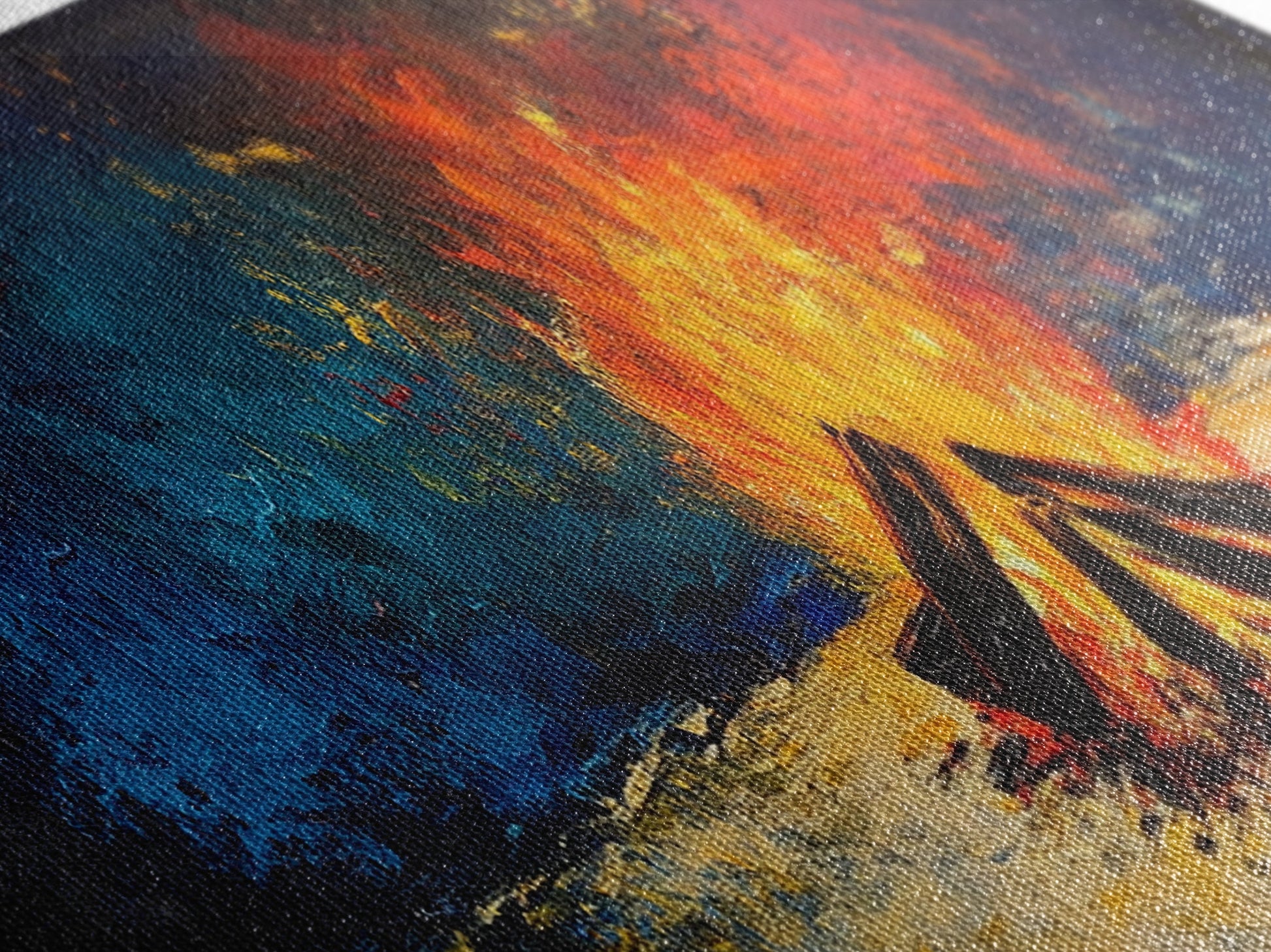 Fiery Campfire Night Canvas Print Rustic Outdoor Wall Art Cozy Bonfire Painting Autumn Cabin Decor Warm Wilderness Gift