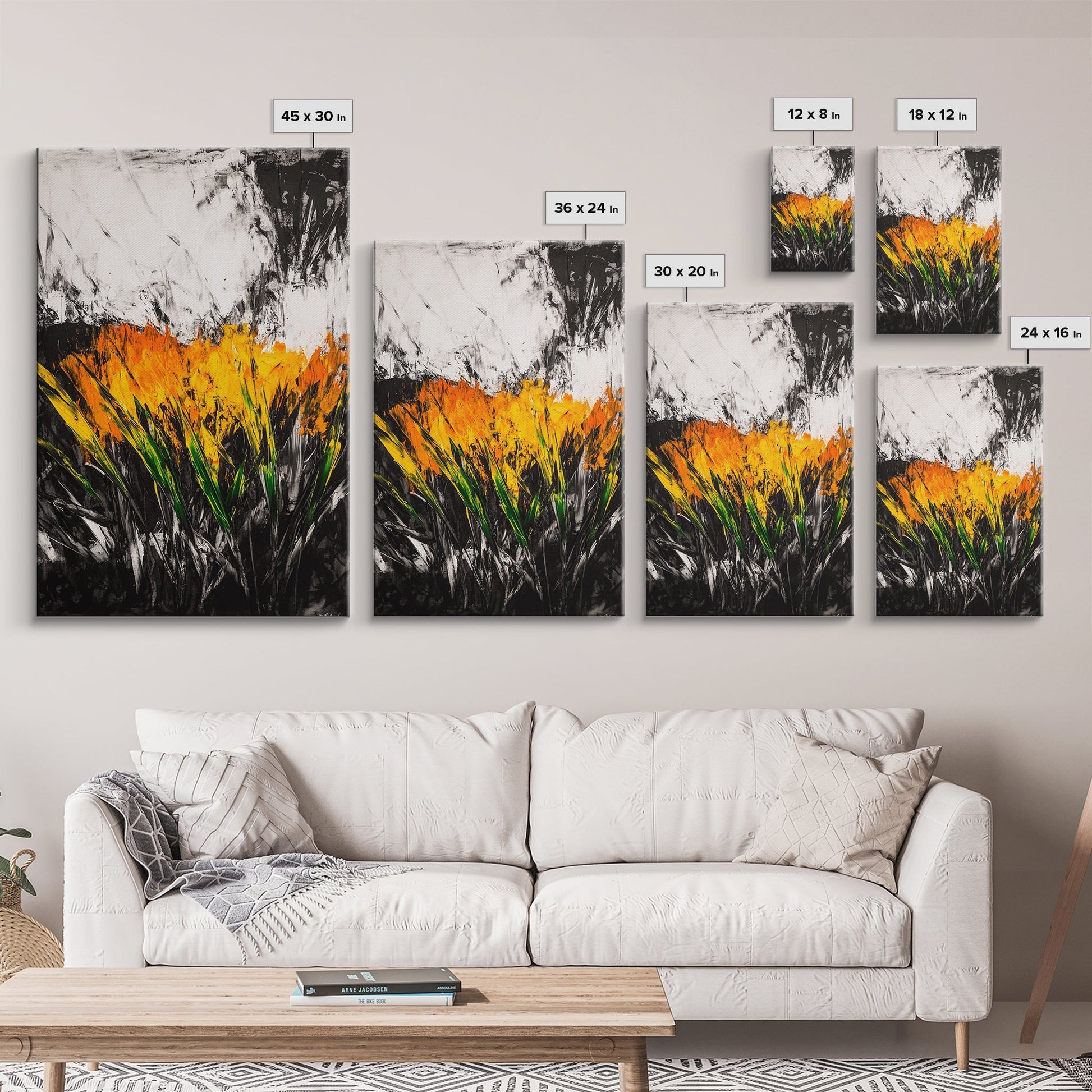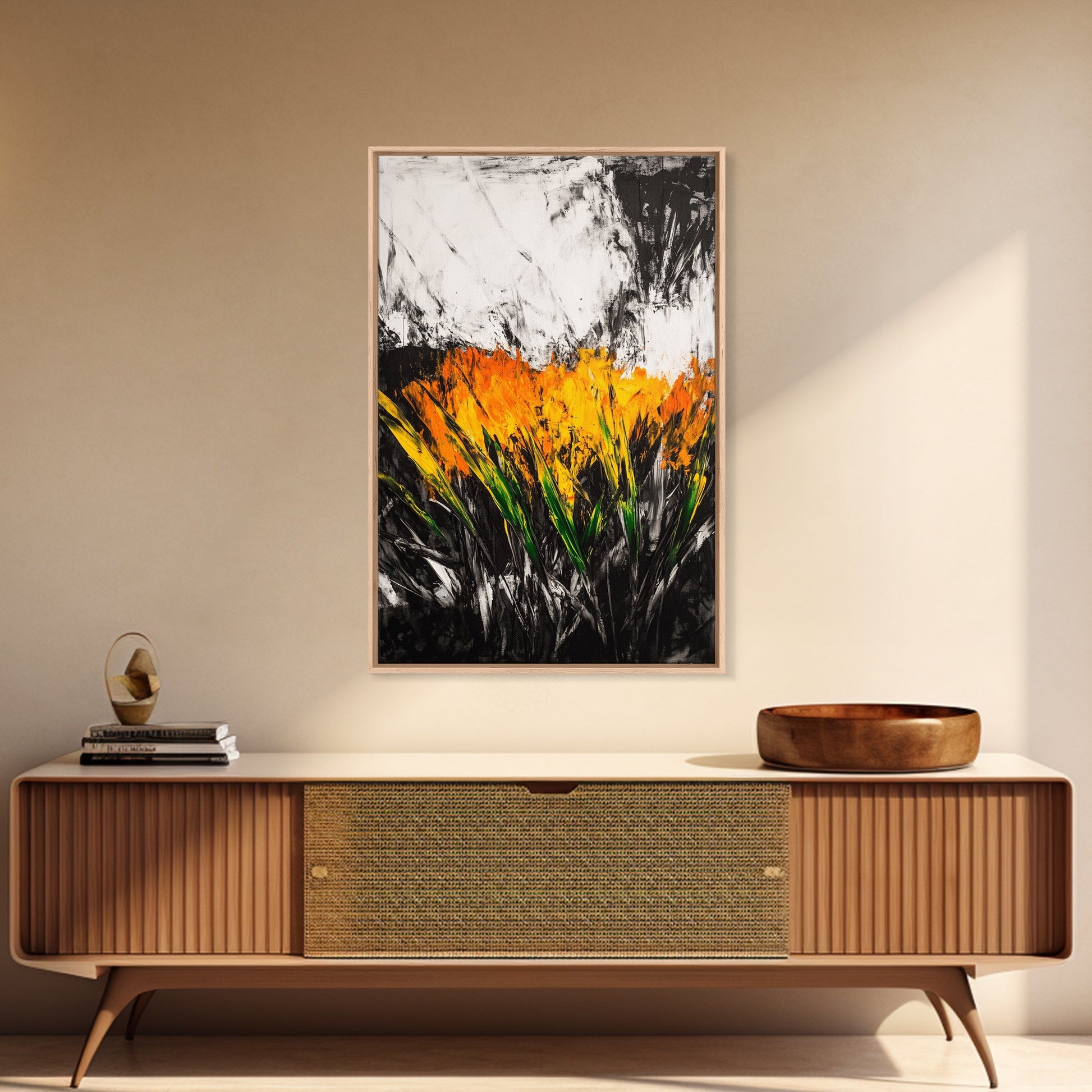 Fiery Wildflowers, Black White Abstract, Nature Art, Floral Painting, Contemporary Living Room Decor, Statement Piece, Canvas Print
