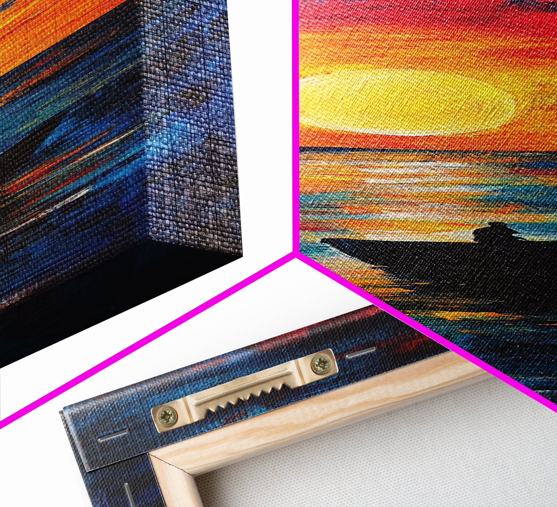 Fisherman Silhouette, Ocean Sunset, Moody Art, Canvas Print, Nautical Wall Art, Boho Art, Rustic Decor, Above Couch Art