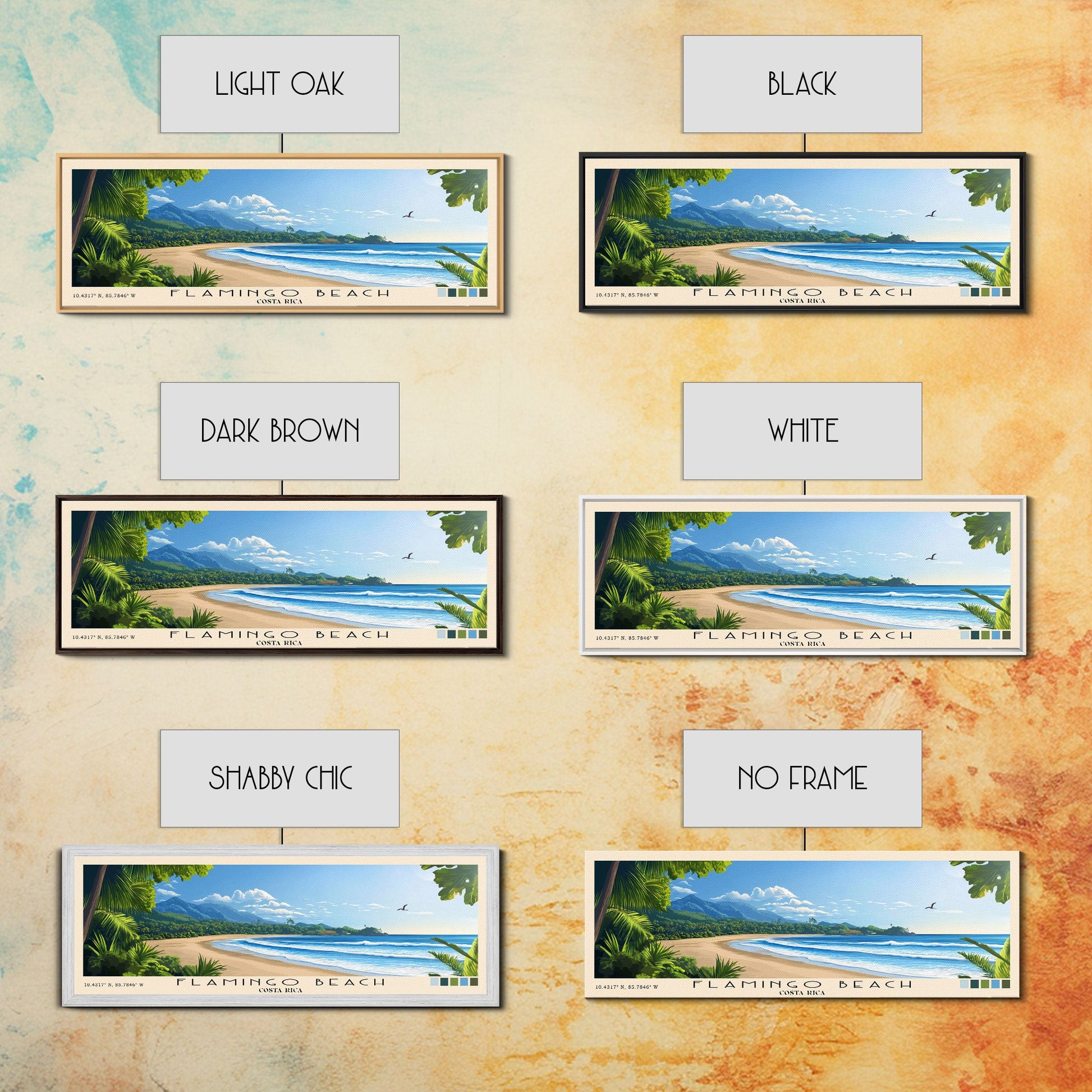 Flamingo Beach, Costa Rica Panoramic Beach Print, Vacation Gift, Costa Rica Wall Art, Framed Canvas Print, Framed Beach Painting