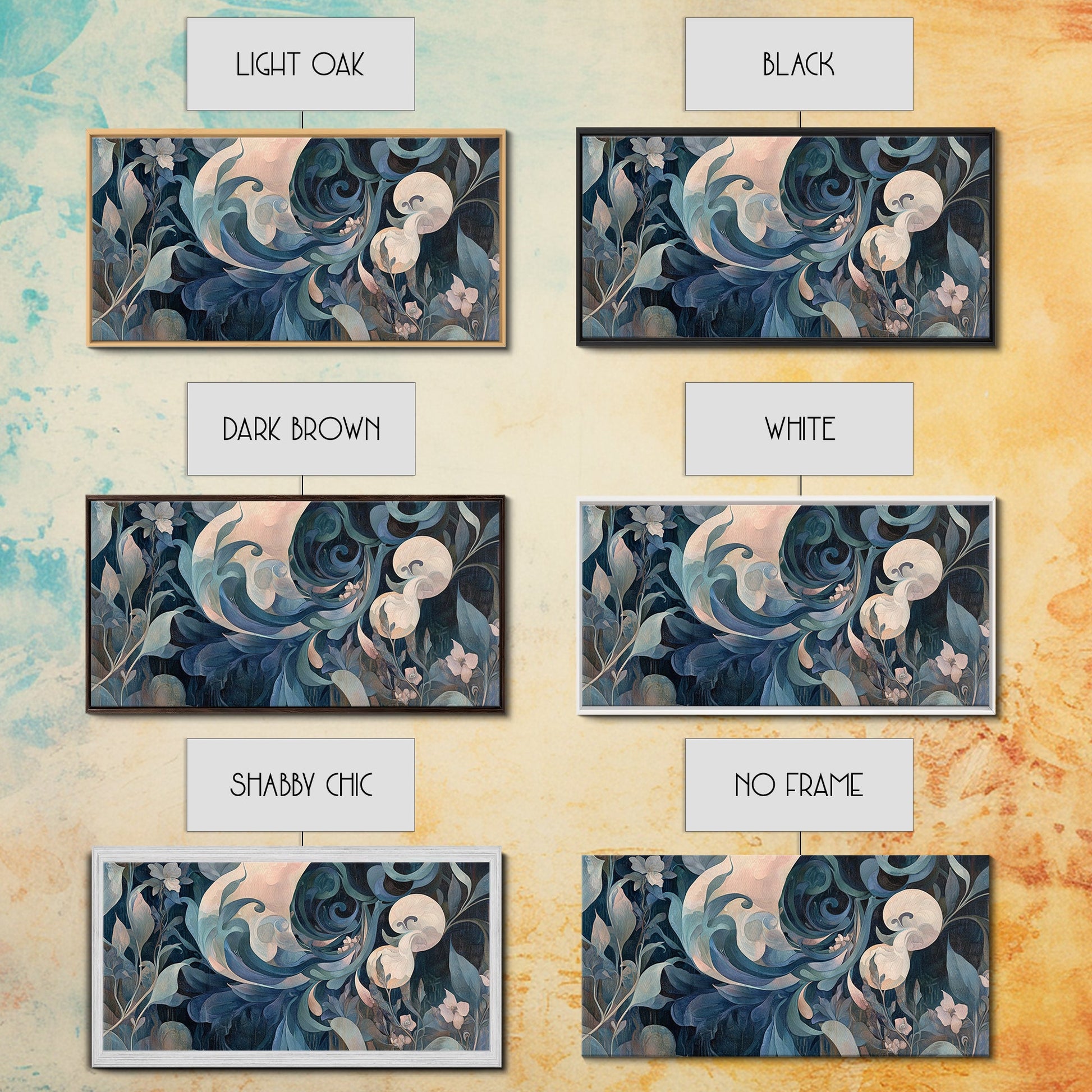 *Optional frames add a total of 1.5 inches to each dimension, for example a 10x20 canvas with a frame will be 11.5 by 21.5 inches total. All framed canvas are 1.5" total depth.