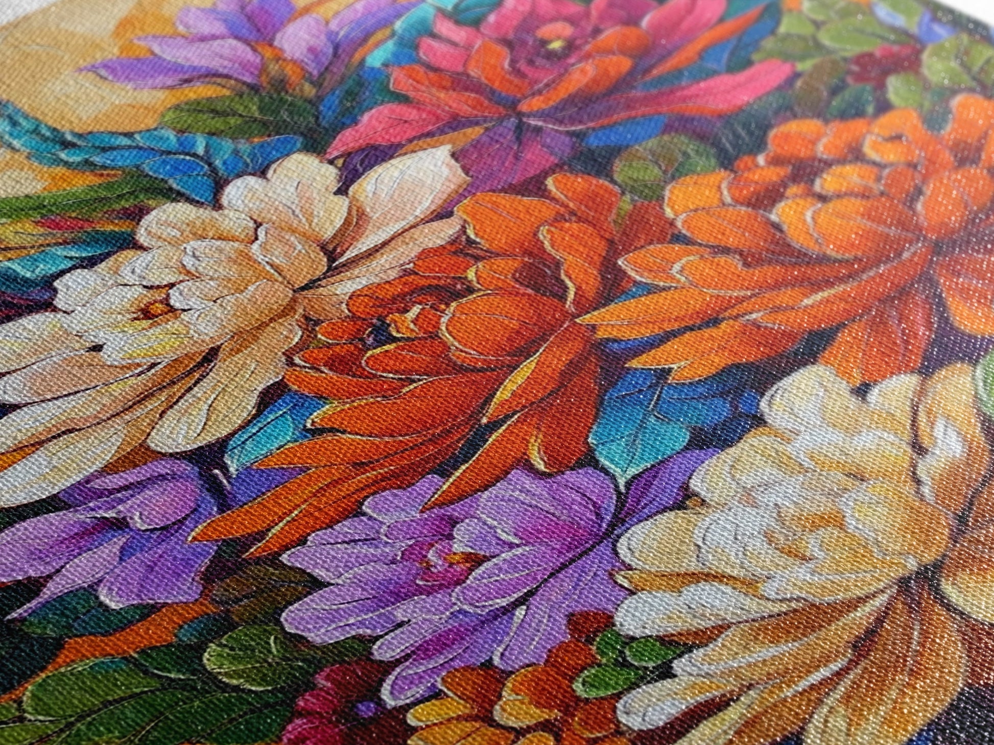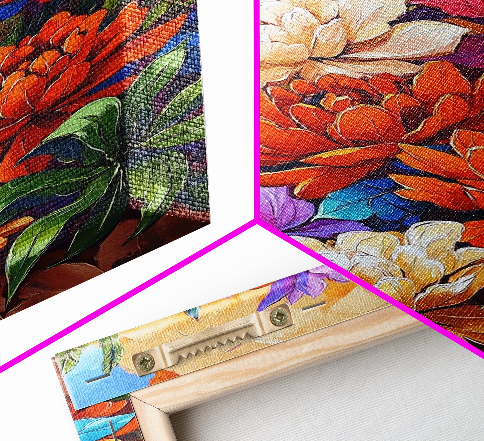 Floral Boho, Bright, Fall, Canvas Print vibrant flower bouquet wall art, fall floral wall decor, dining room print, bohemian art gift