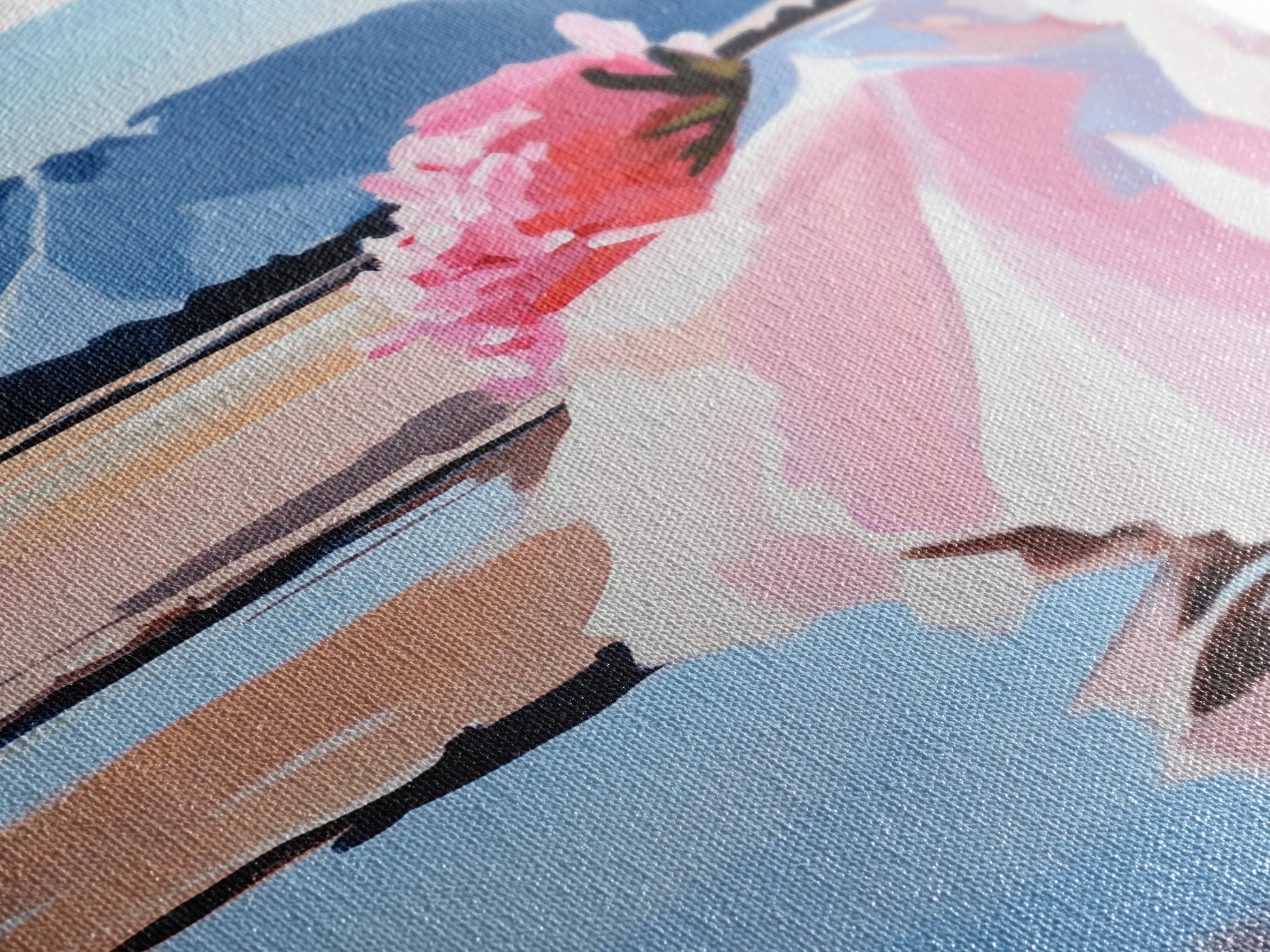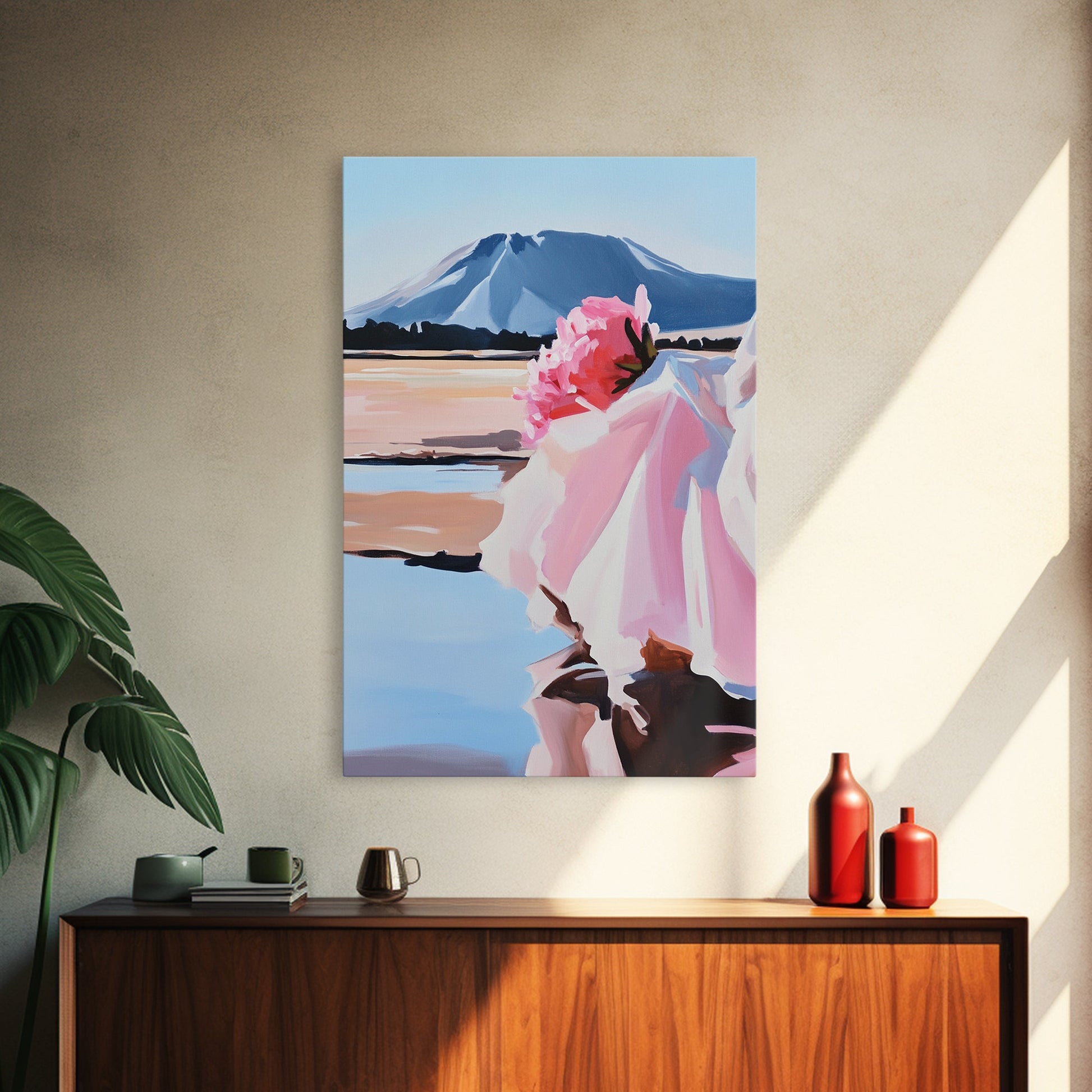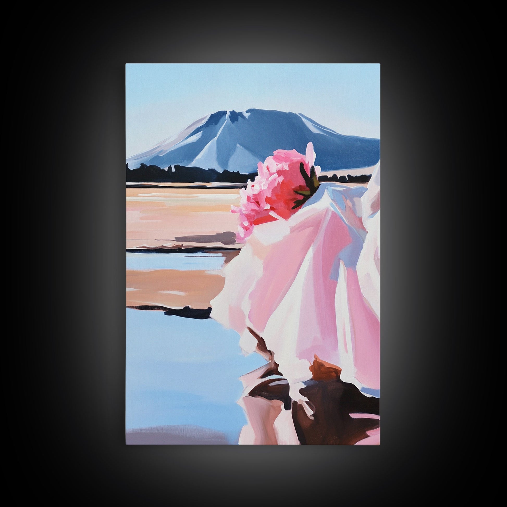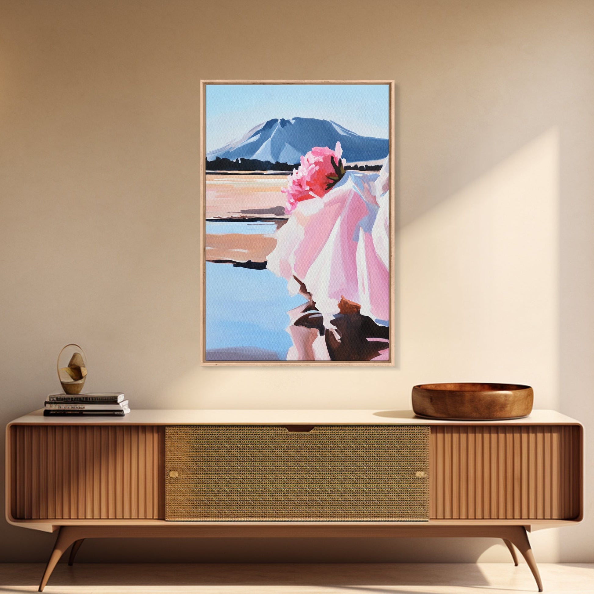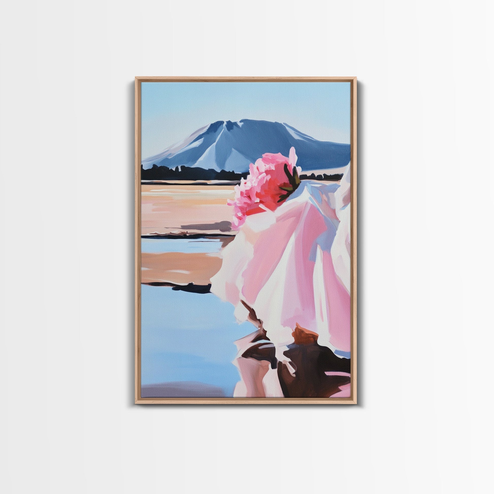 Floral, Pink Bouquet, Nature Art, Framed Canvas Print, Feminine Wall Decor, Boho Home Art, Blue Painting, Living Room Wall Art