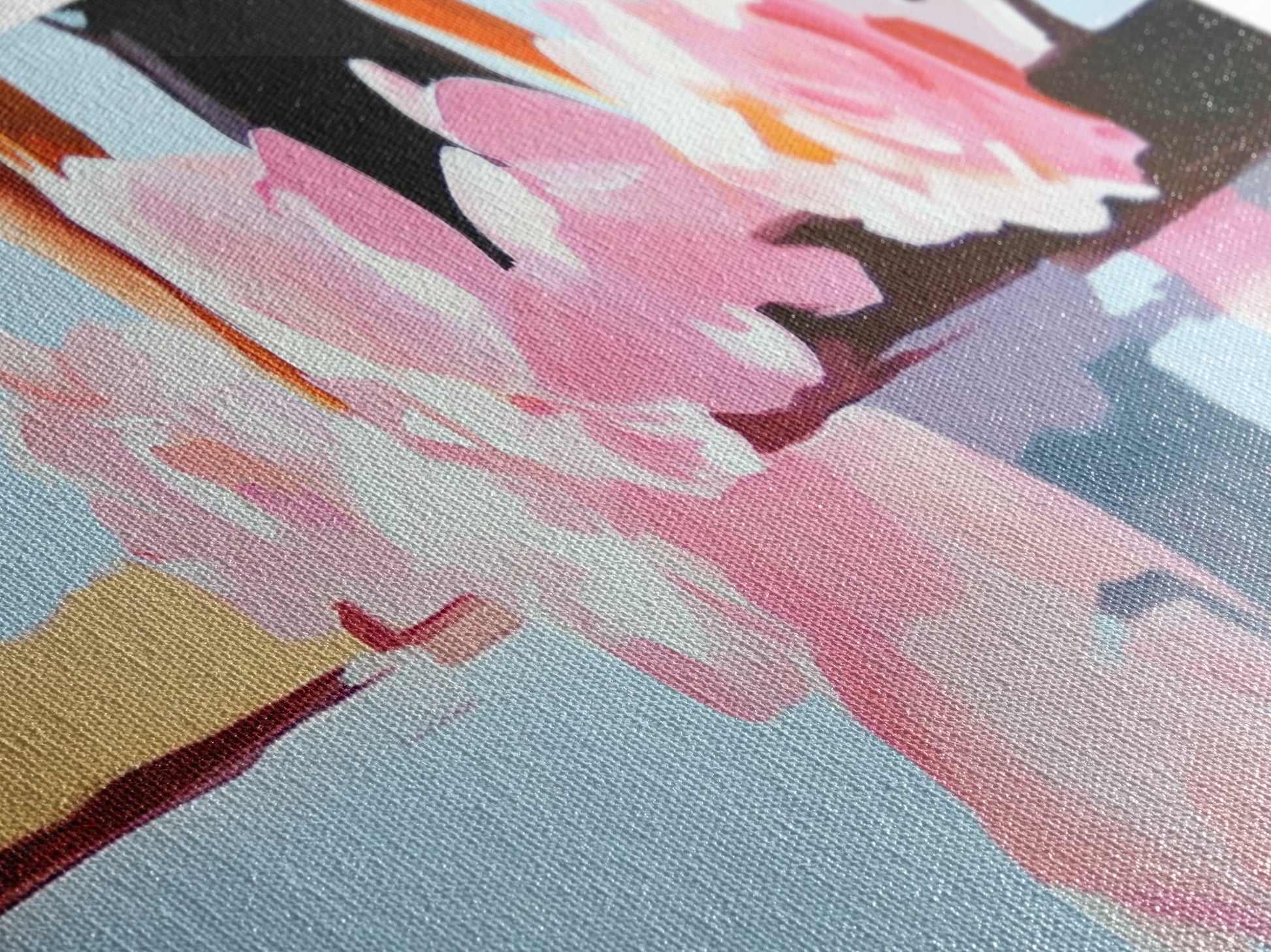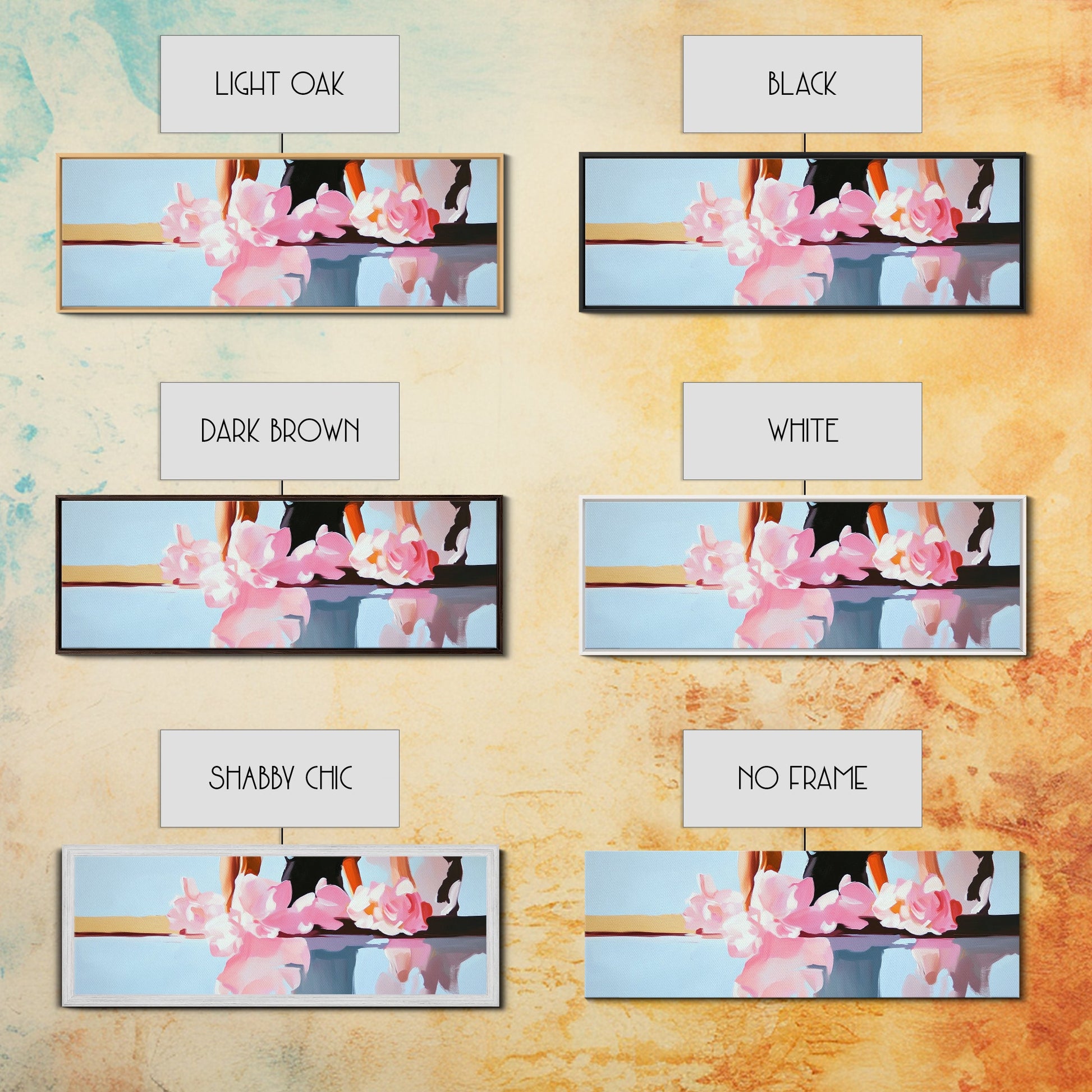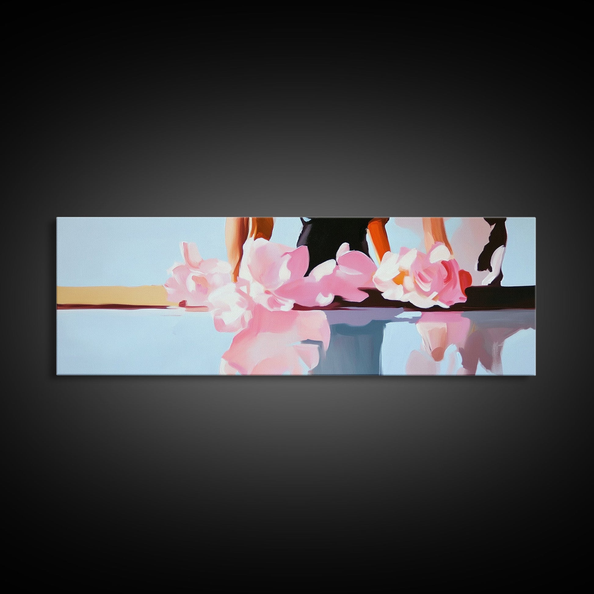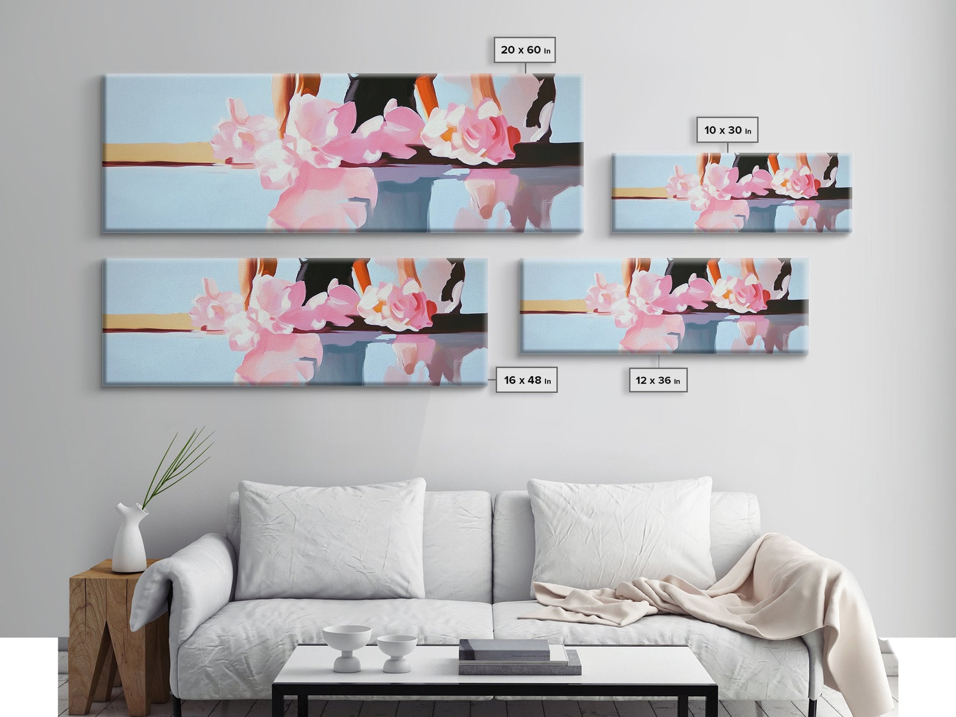Floral Reflections, Pink Blossoms, Water Mirror, Framed Canvas Print, Feminine Wall Art, Elegant Bedroom Decor, Pastel Aesthetic